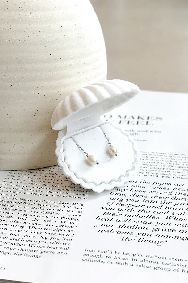 Simple Pearl Fine Wire Hoops - Cream/Silver