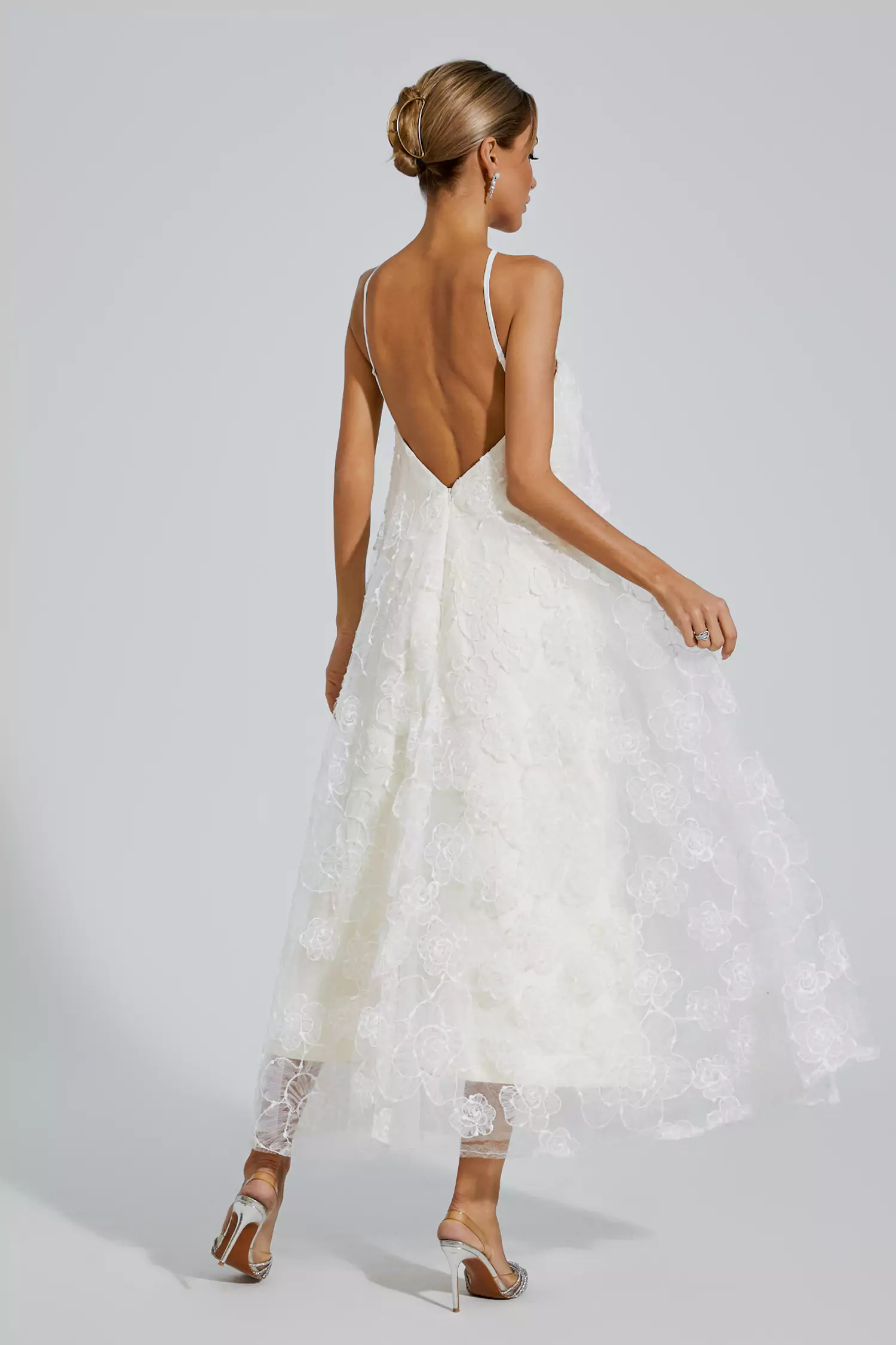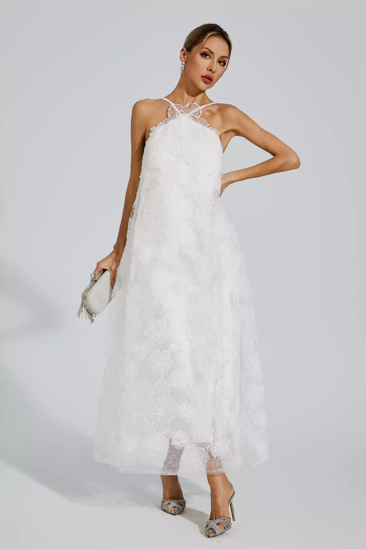 Mairi Embroidery Hollow Fabric Delicate Flower Trim Side Lace-up Maxi Dress