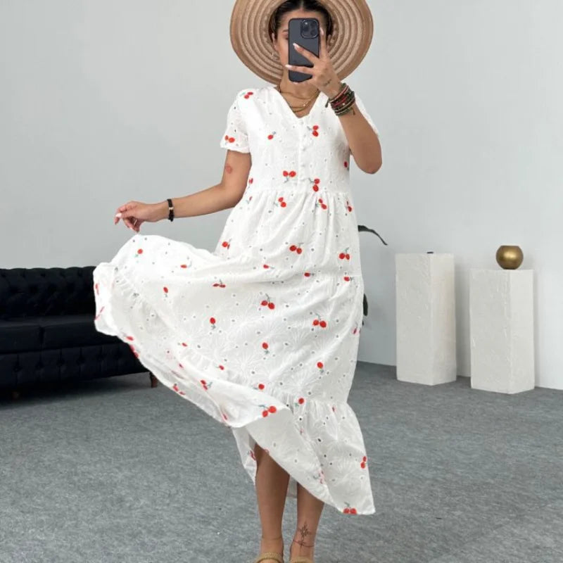 Embroidery Maxi Dresses for Women Summer Elegant Puff Sleeve Slim White Dress Party Club 2023 Fashion ALine Casual Dress