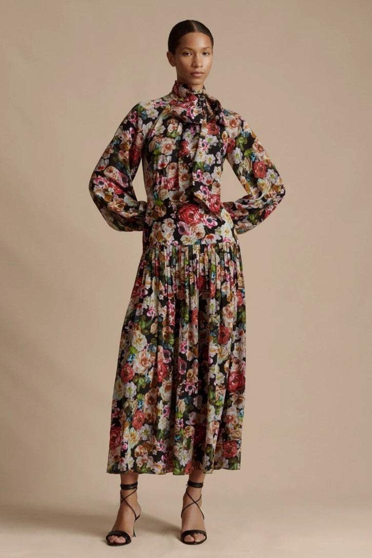 Floral Stand Collar Midi Dress