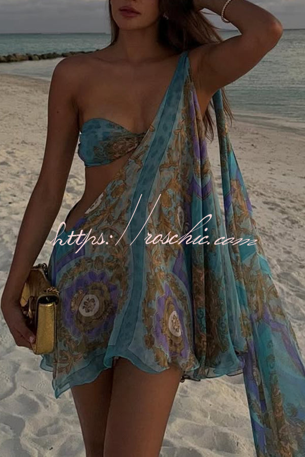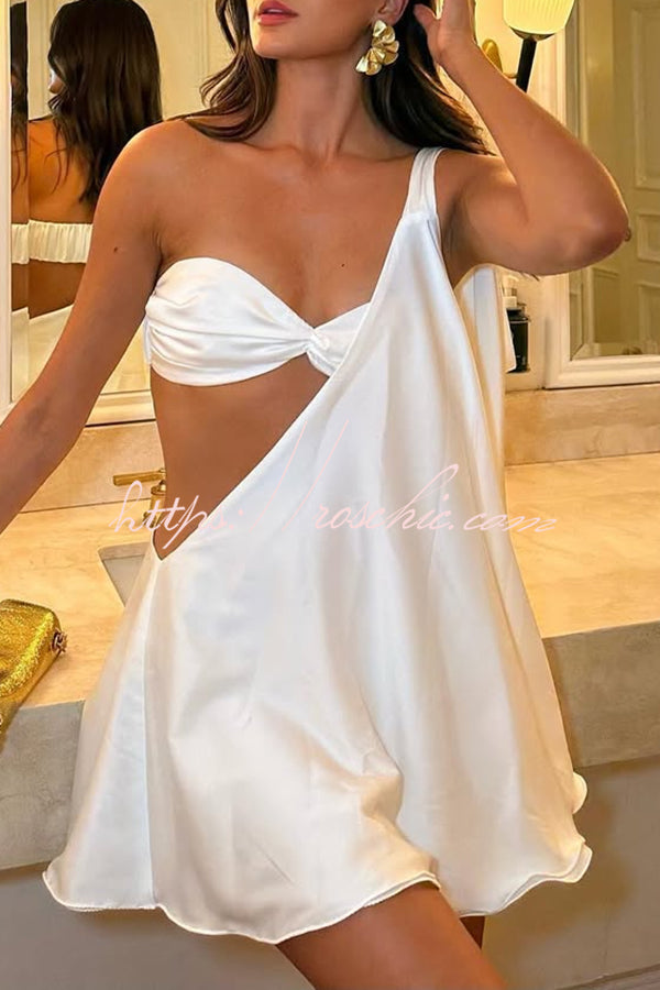 Antari Pleated Tube Top One Shoulder Tie-up Vacation Mini Dress
