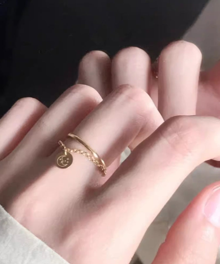 Art Gold Sterling Silver Overgild Chain Tassel Rings GH1033