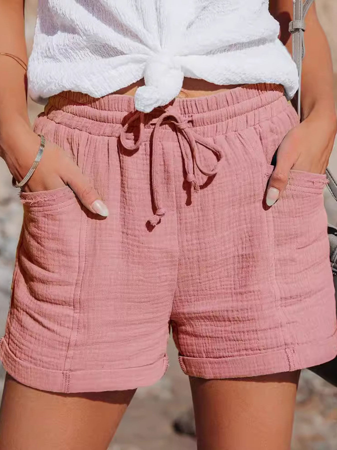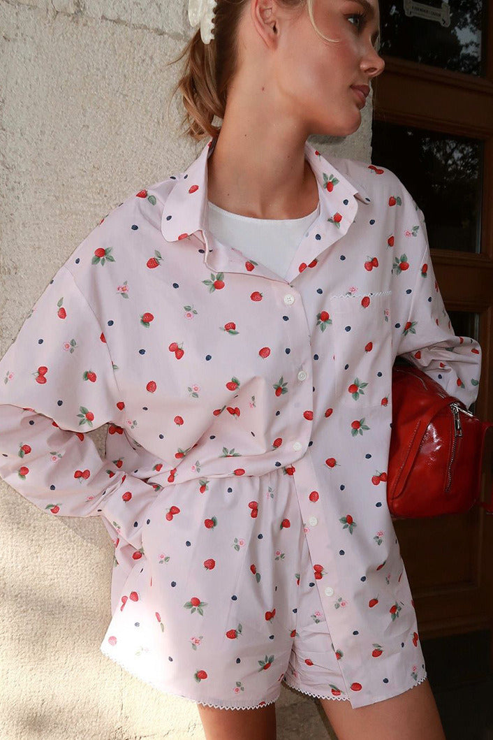 Pink Shirt Lace Trim Shorts Two Piece Set