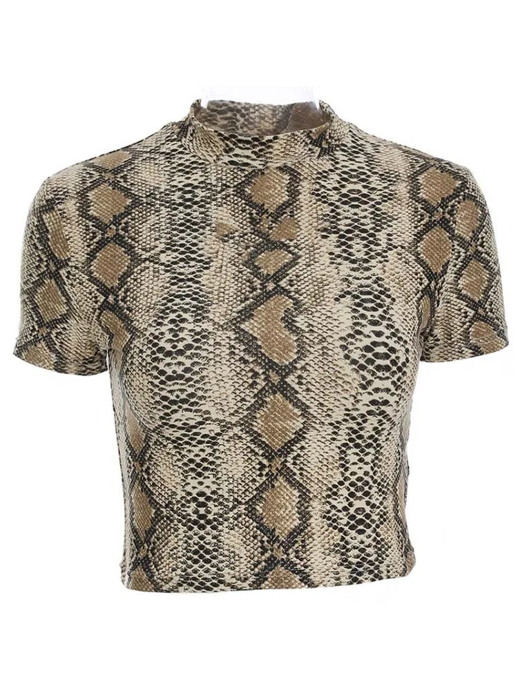 2025 Sexy Crop Top Women Snake Print Tank Top Slim Primer High Collar Vest Harajuku Crop Tank Top T Shirt Femme Girls Camis Tops