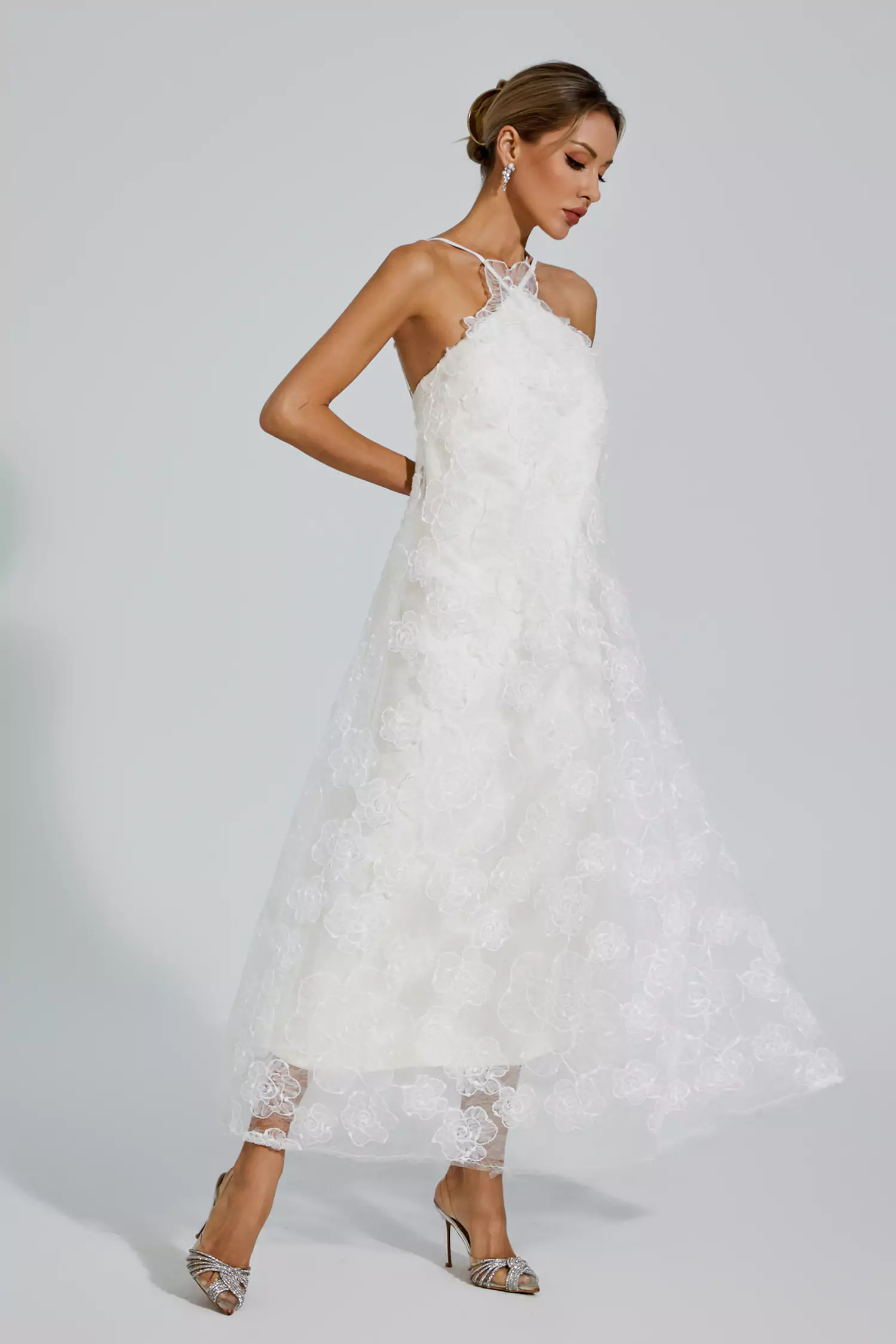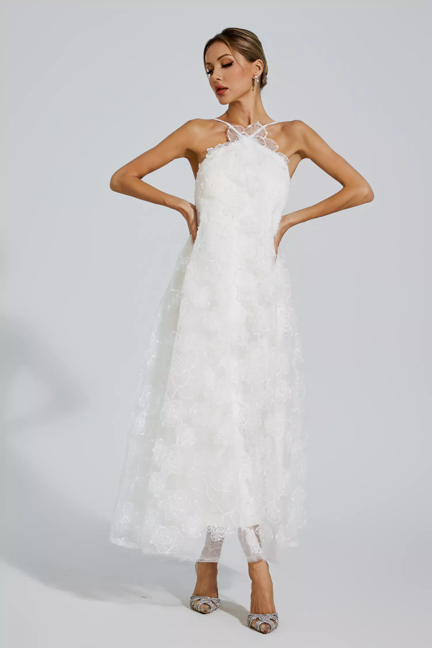 Elevate your style with the sophistication of our Barbara White Lace Flower Maxi Dress. Perfect for engagement parties or seaside getaways, this elegant gown features intricate lace detailing and a ground-floor length. Crafted with quality and care, it embodies timeless beauty and effortless charm.