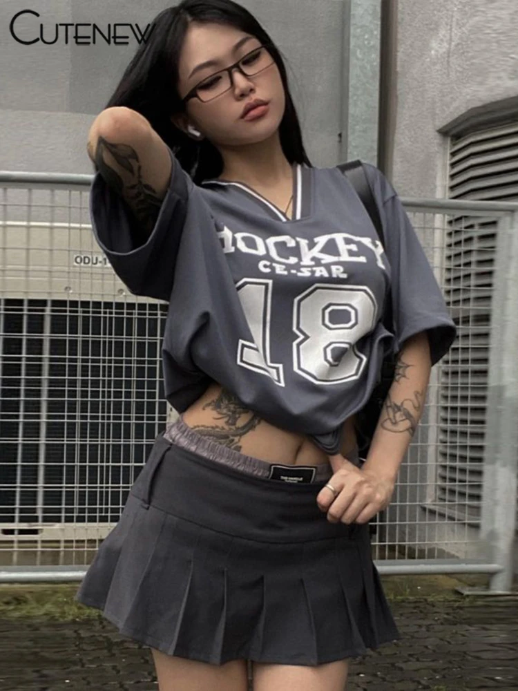 Basic Wild Women T-shirts Summer Casual Summer New Short Sleeve V-neck Loose Tees Printed Basic Female Street Sporty Top