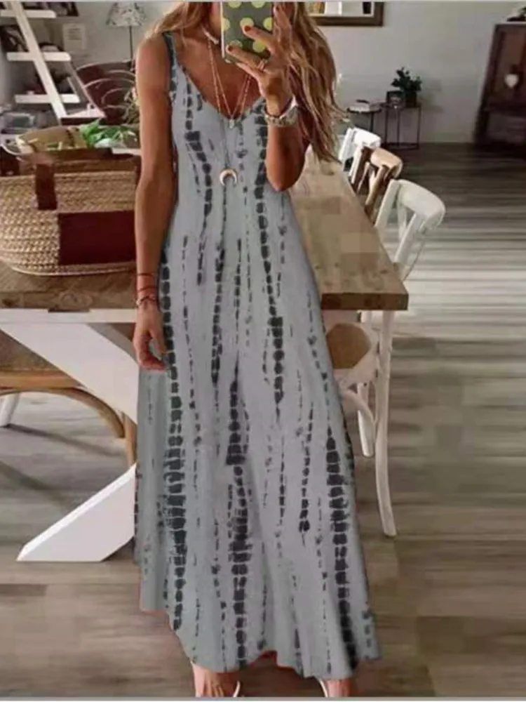 Casual Printed Maxi Spaghetti Strap Dresses For Women V-neck Backless A-line Long Dress Fashion Bohemian Style Beach Vestidos