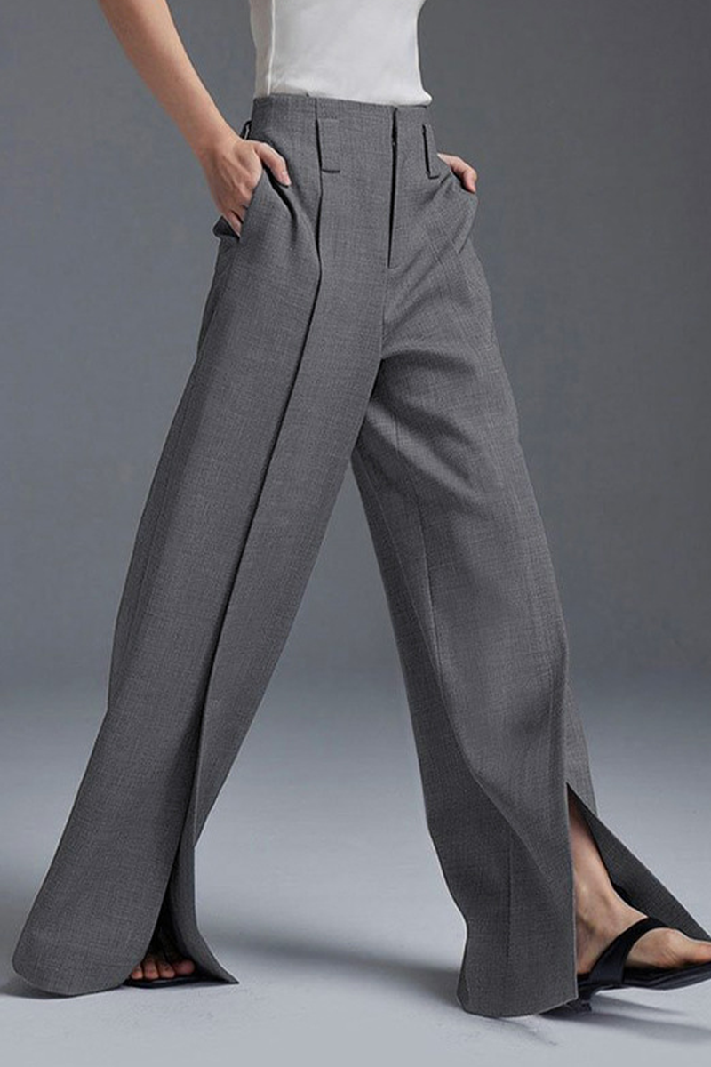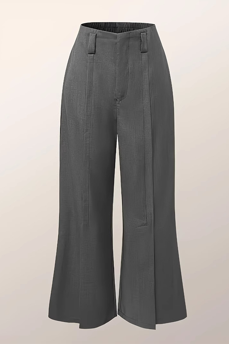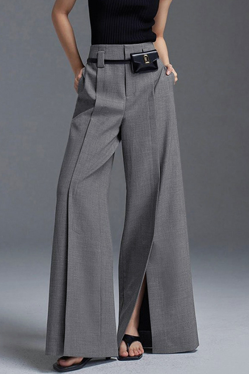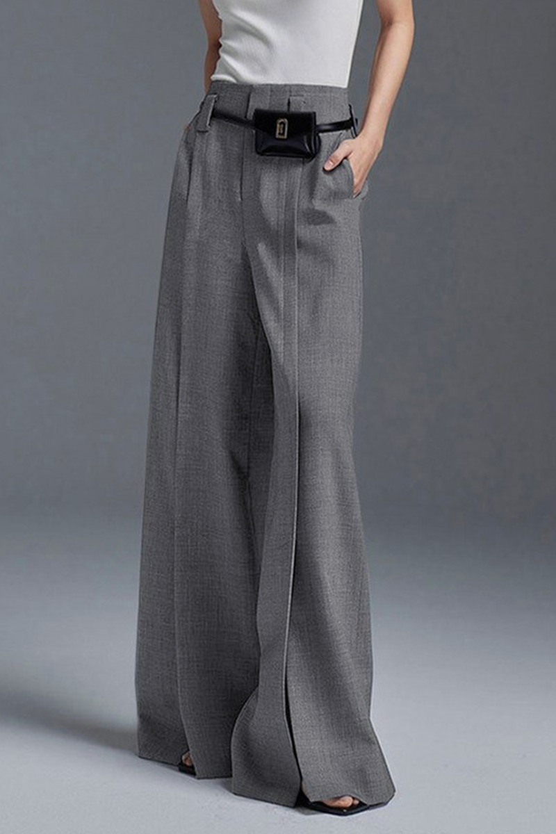Casual Pocket Slit Ruched Loose High Waist Wide Leg Bottoms(No waist belt)