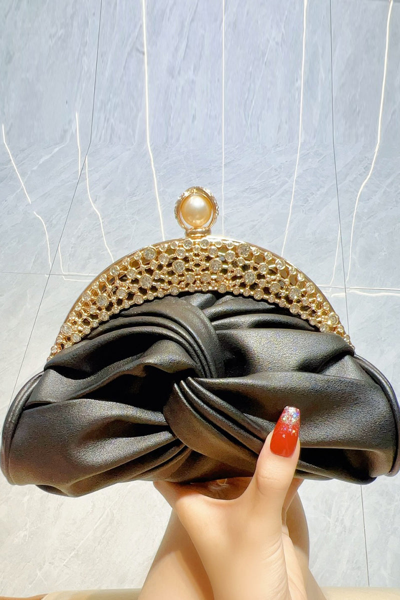 Celebrities Solid Color Ruched Rhinestone Decor Bags(5 Colors)