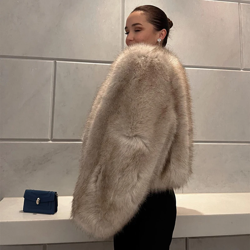 Chic Street Blogger Fashion Girls Winter Trendy Faux Raccoon Fox Fur Coat Jacket Women Thick Warm Cropped Fluffy Overcoats