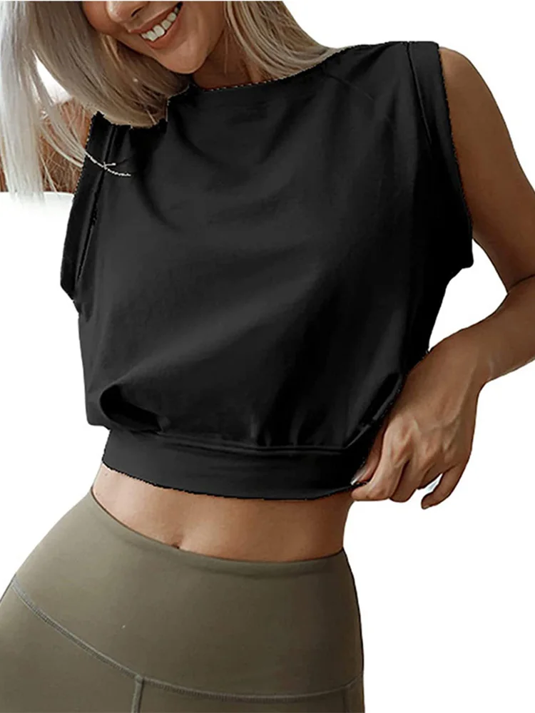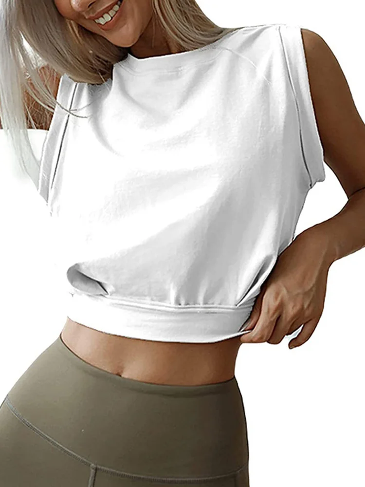 Crop Top Cotton Shirts for Women Cute Sleeveless Yoga Tops Running Gym Workout Shirts Casual Fitness Loose Female T-Shirt