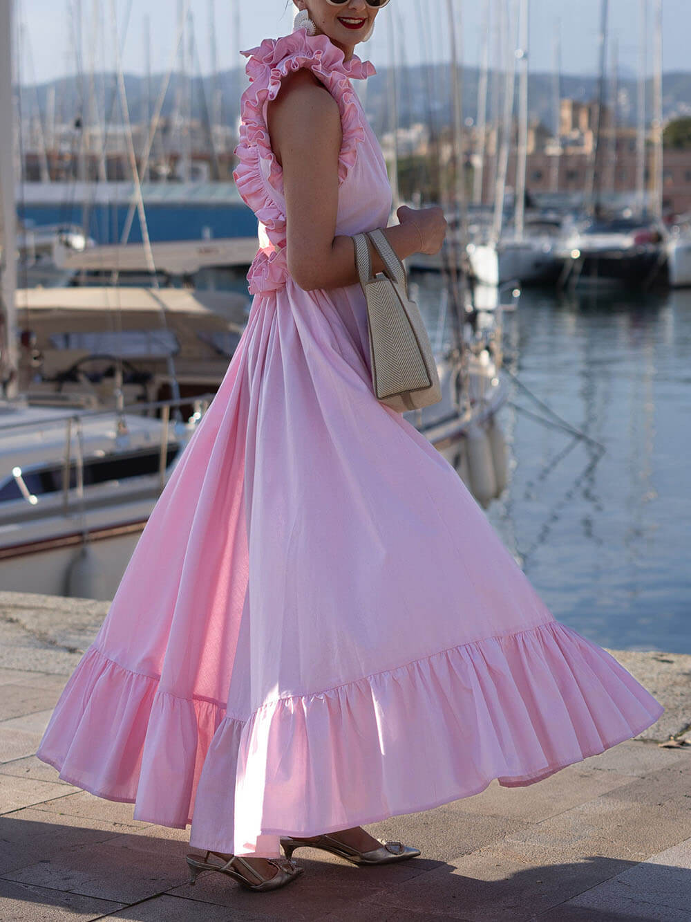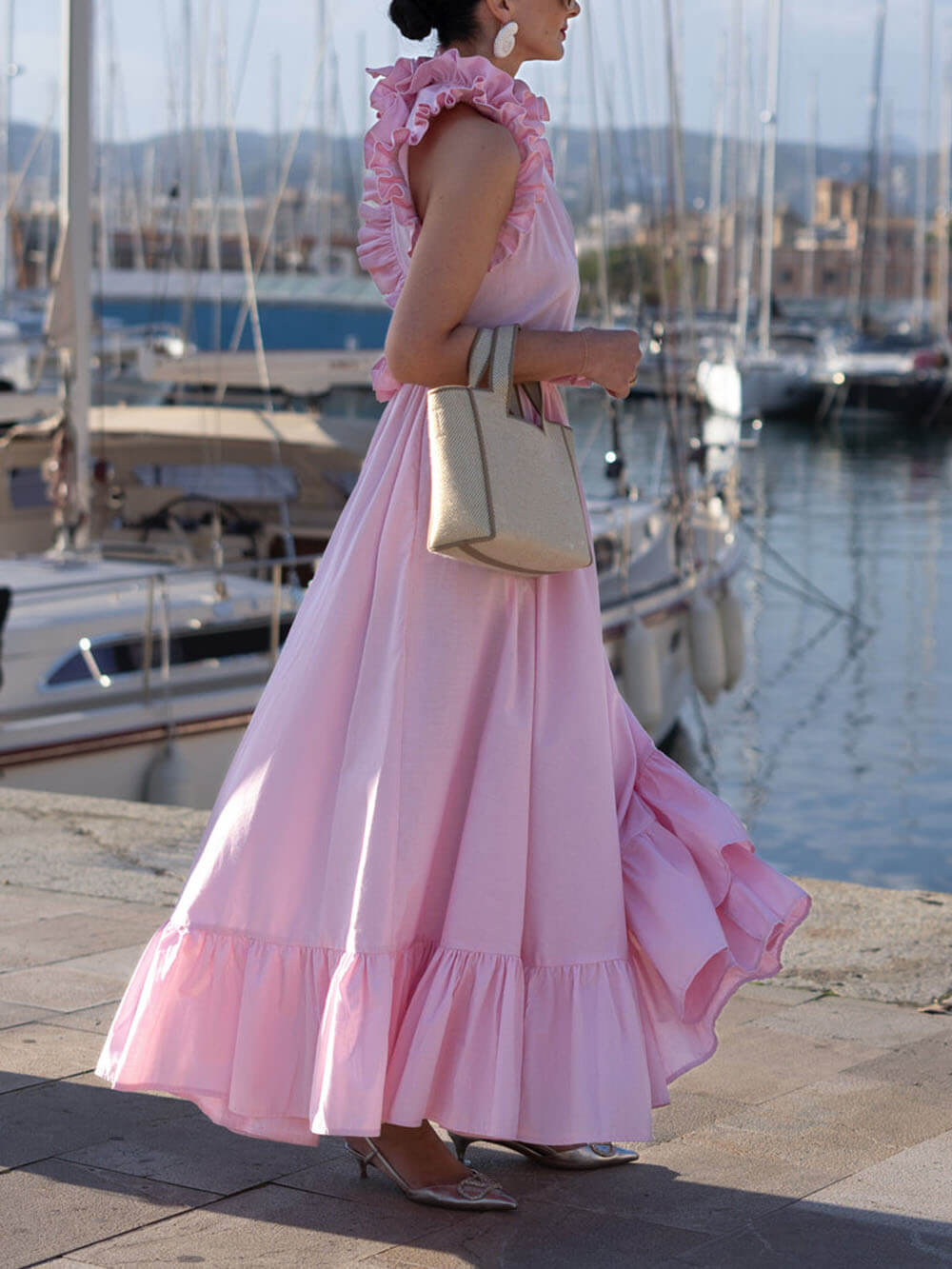 Stay stylish and comfortable in our exquisite ruffled Martinique pink dress.