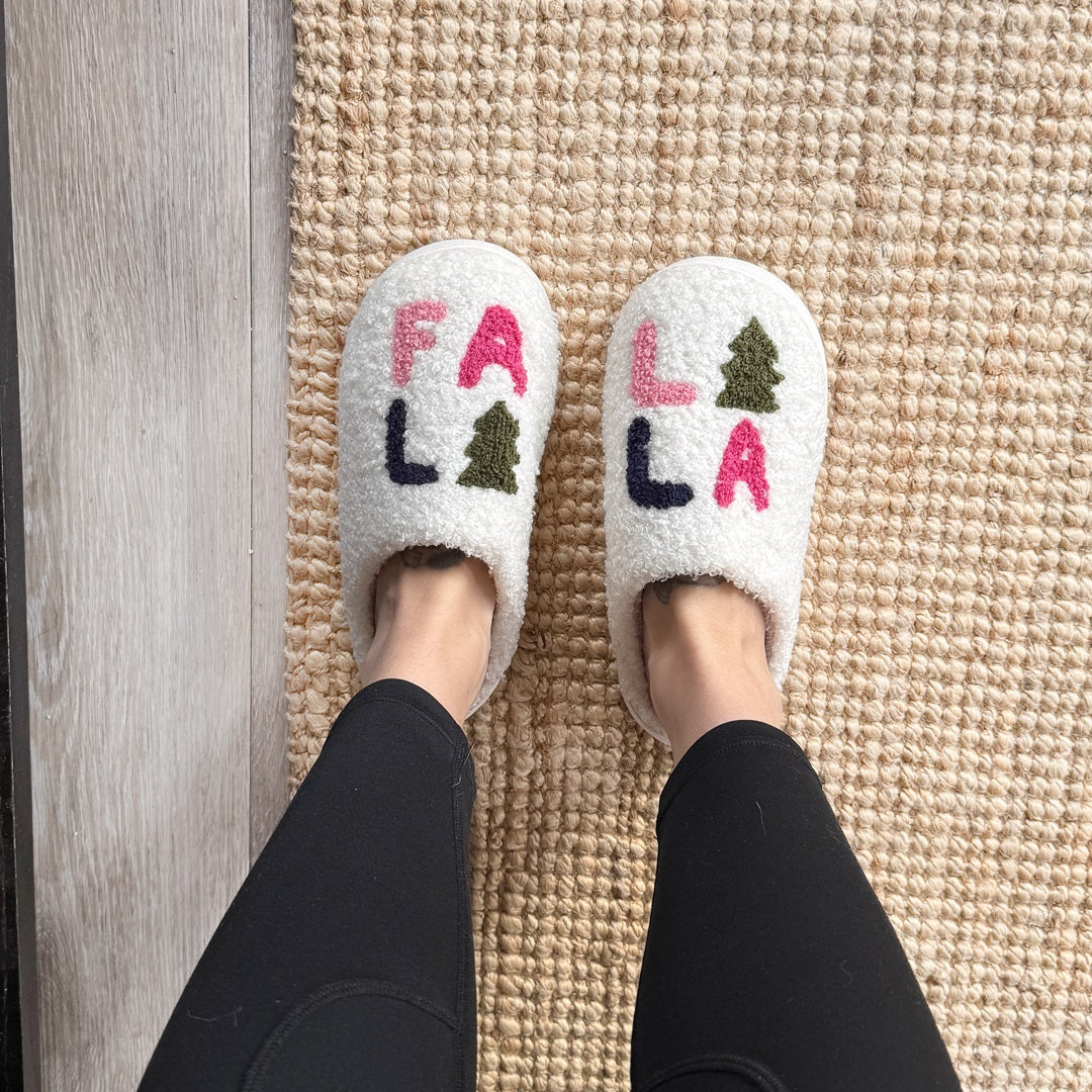 Bring the spirit of Christmas to your toes with the fun "Fa La La La" design. The playful, festive pattern makes these slippers a cheerful addition to your holiday wardrobe.