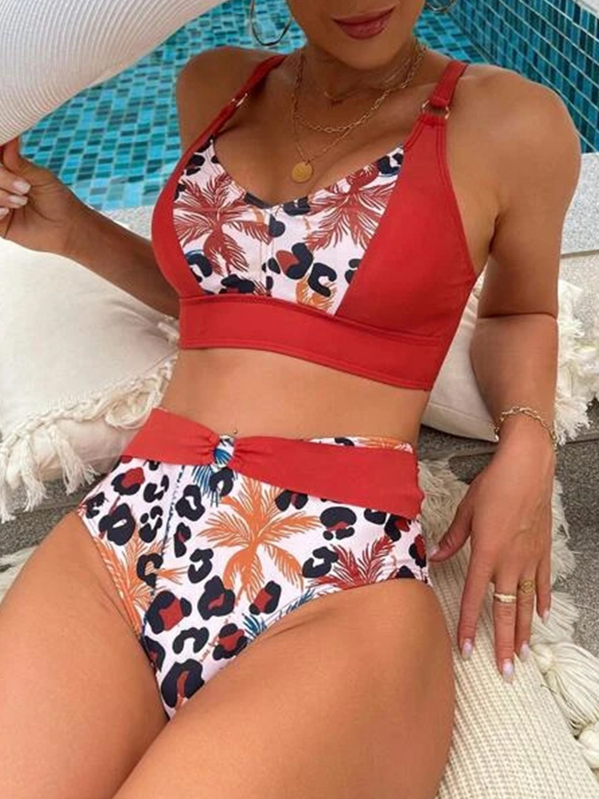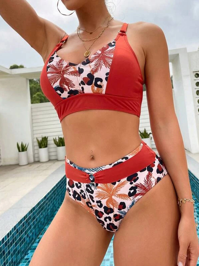 Flower Printed Paneled Two Pieces Bikini Set