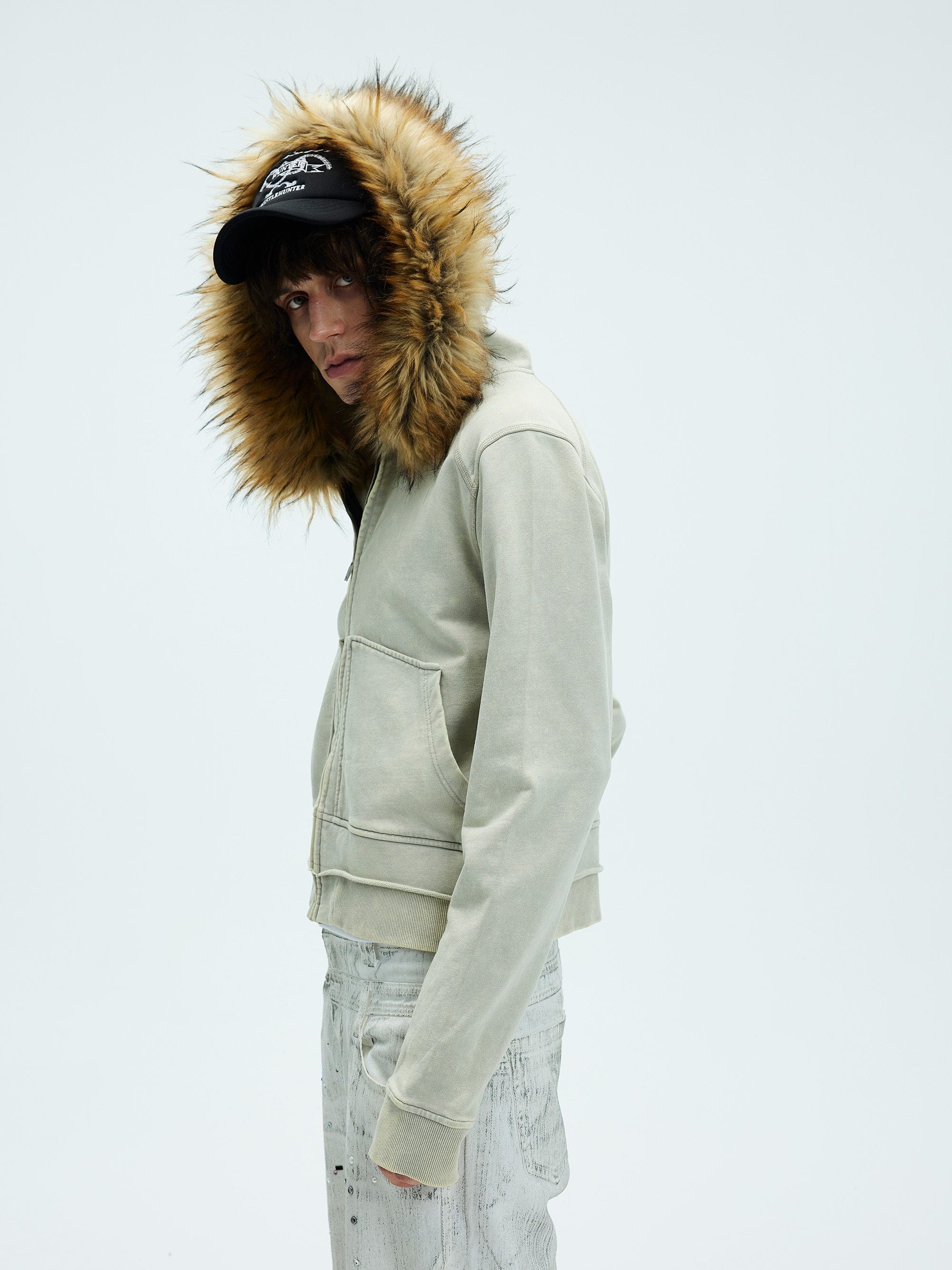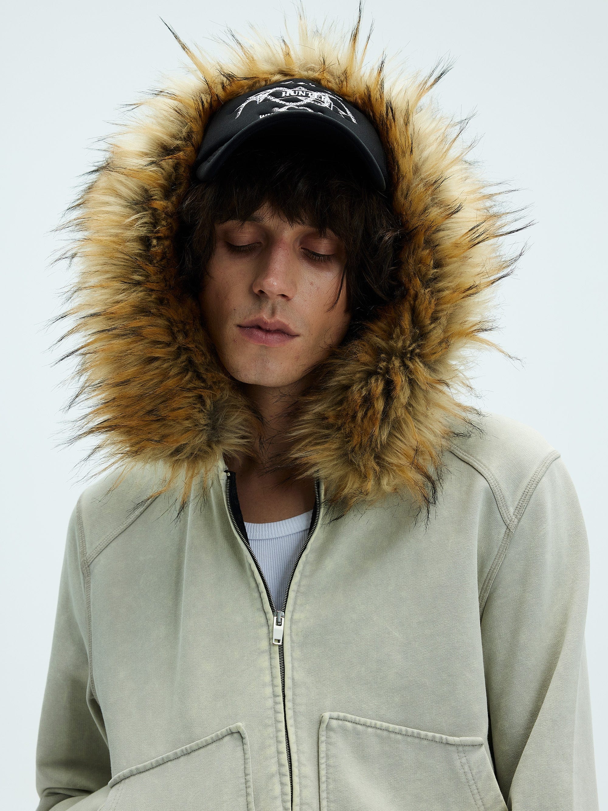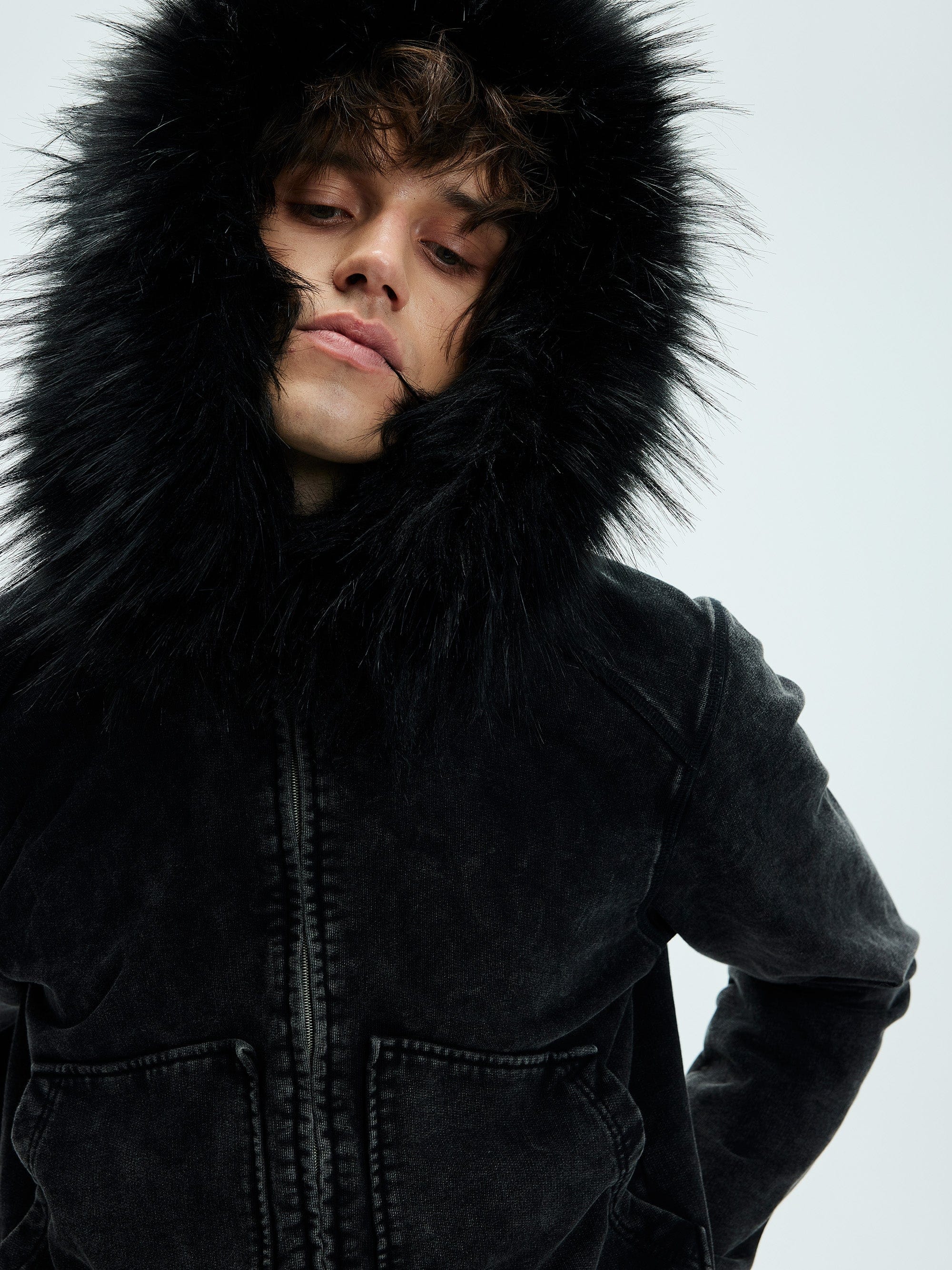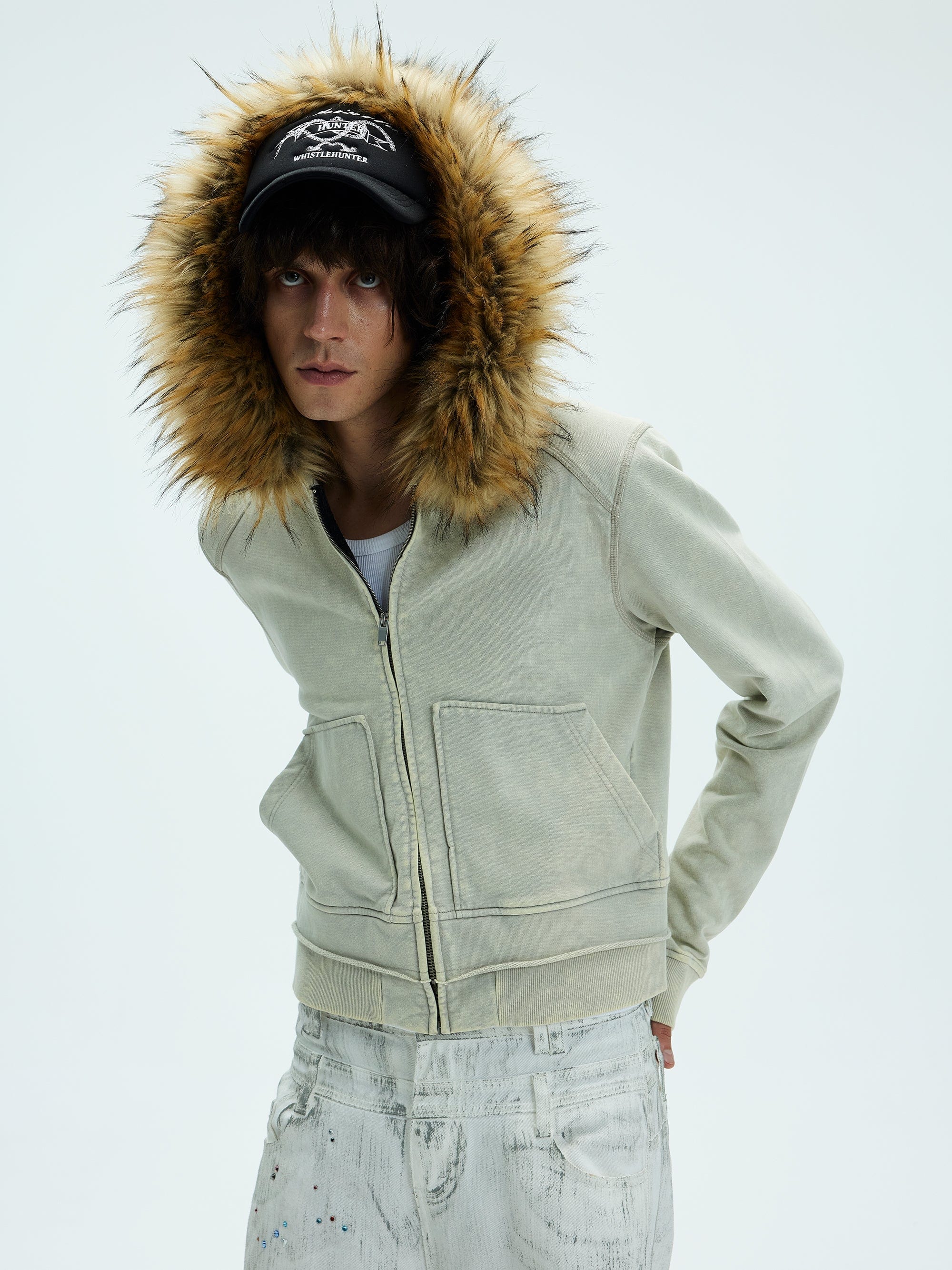 This Fur Hood Washed Jacket offers a stylish and practical addition to your wardrobe. With its cozy fur hood, this jacket provides warmth and comfort, making it perfect for chilly weather. The washed design adds a trendy touch to any outfit. Stay warm and fashionable in this must-have jacket.