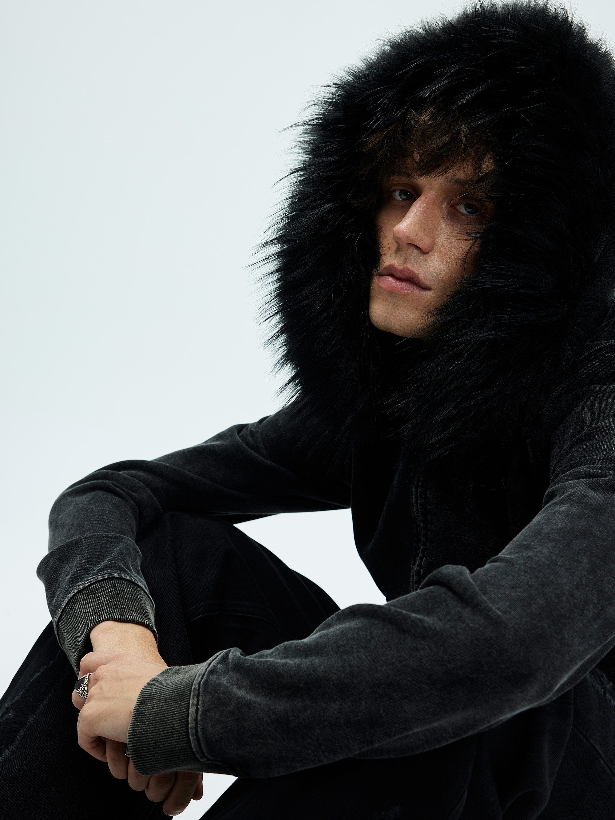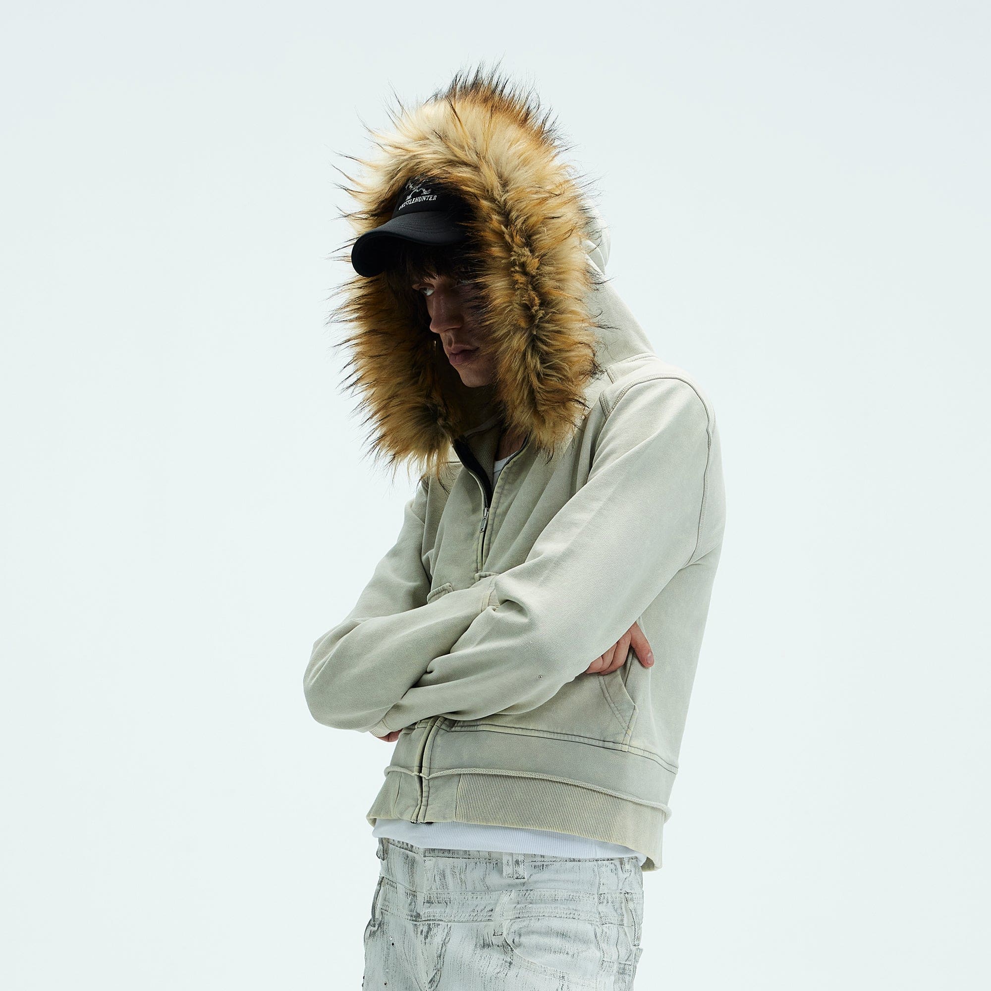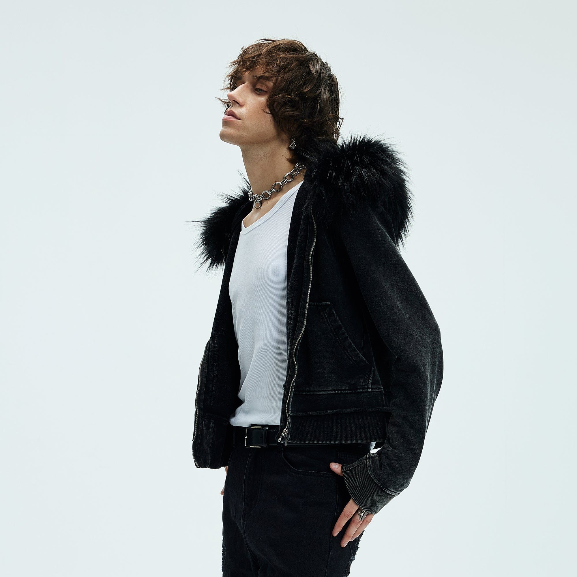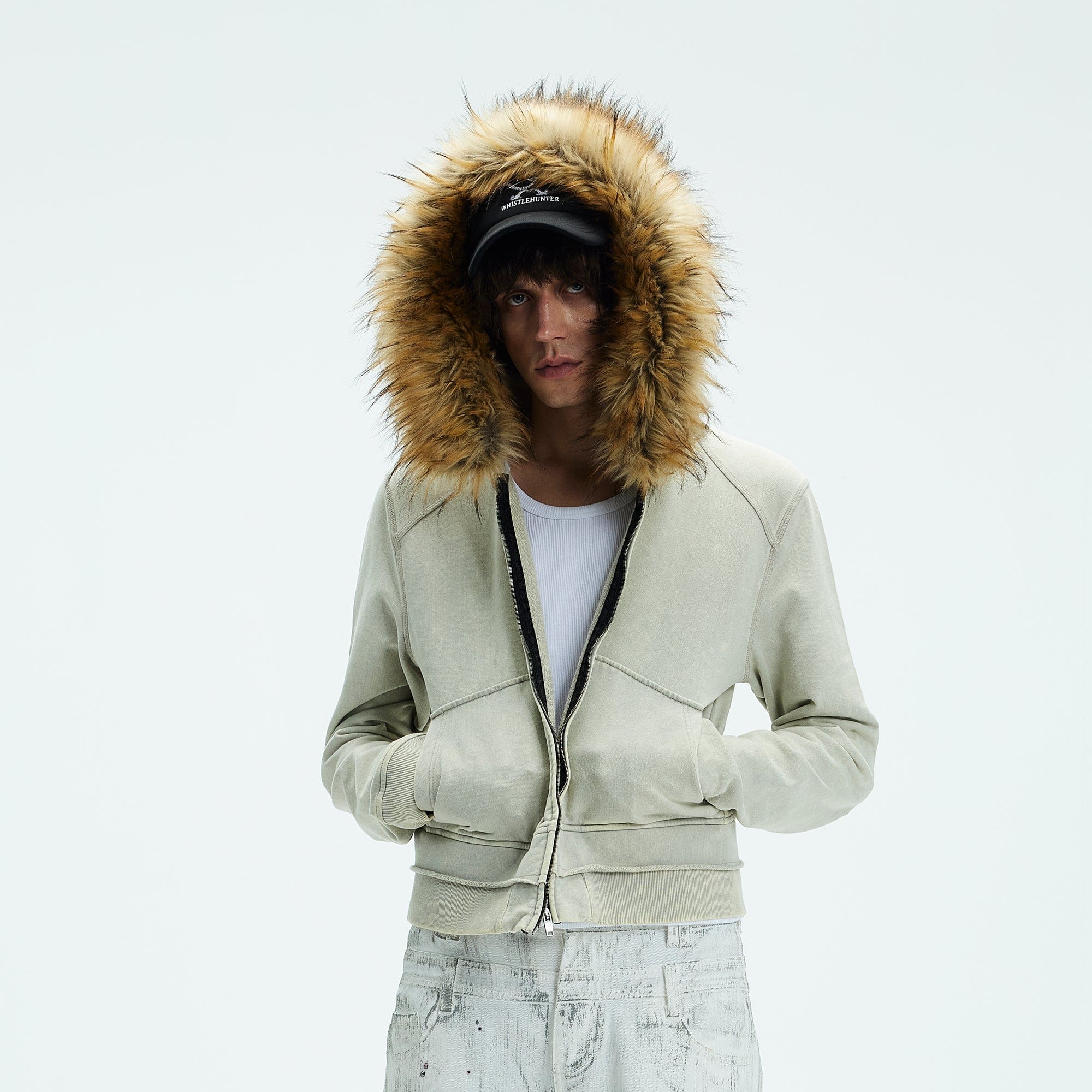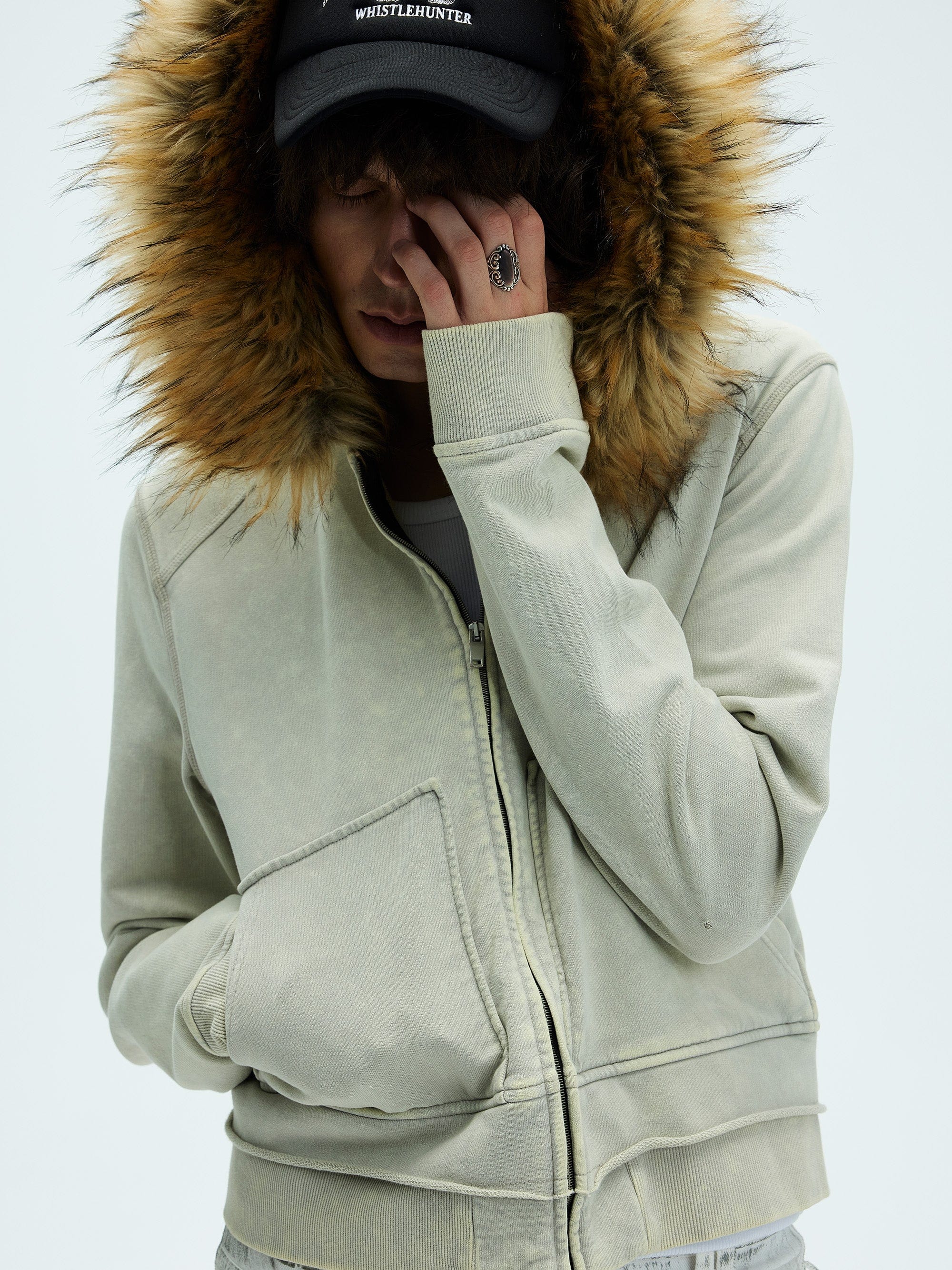 This Fur Hood Washed Jacket offers a stylish and practical addition to your wardrobe. With its cozy fur hood, this jacket provides warmth and comfort, making it perfect for chilly weather. The washed design adds a trendy touch to any outfit. Stay warm and fashionable in this must-have jacket.