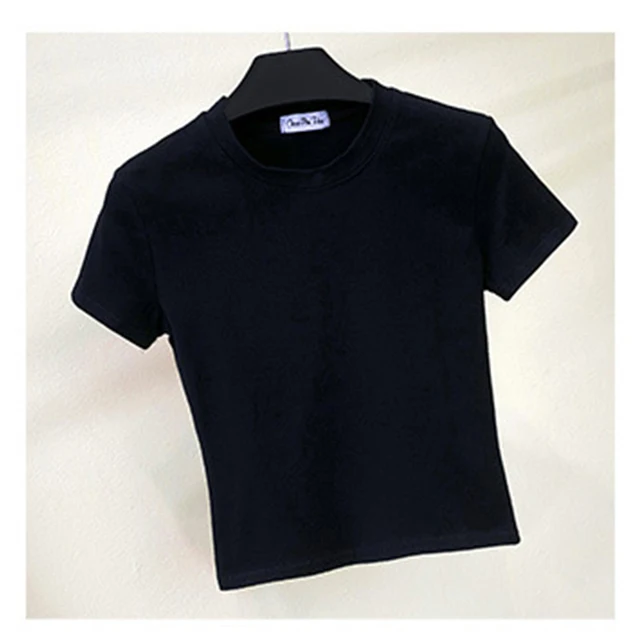 Green Crop Top T-Shirt Female Solid Cotton O-Neck Short Sleeve T-shirts for Women High Waist Slim Short Sport Femme T-Shirt
