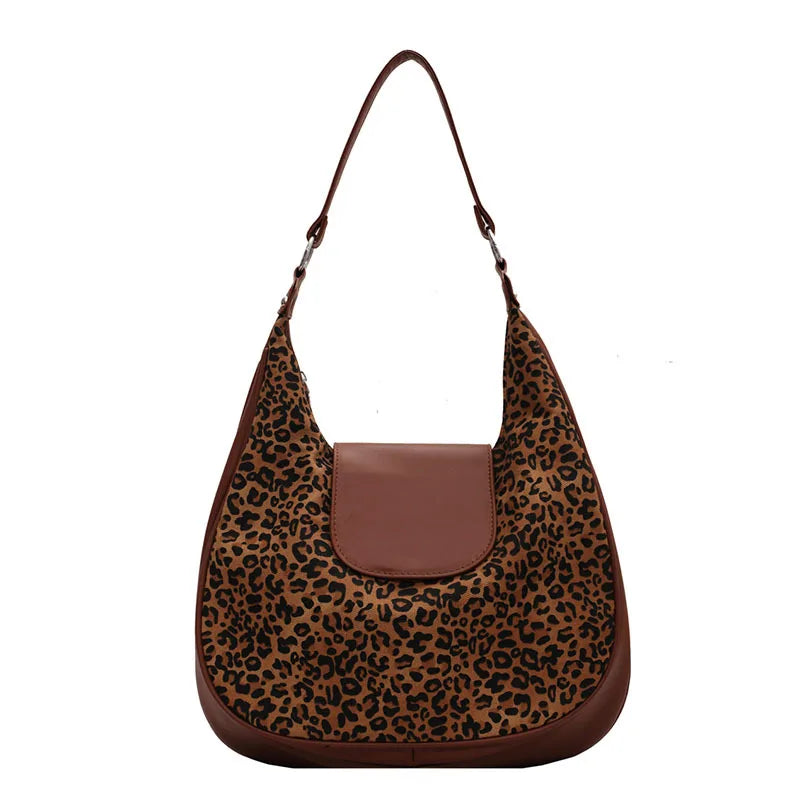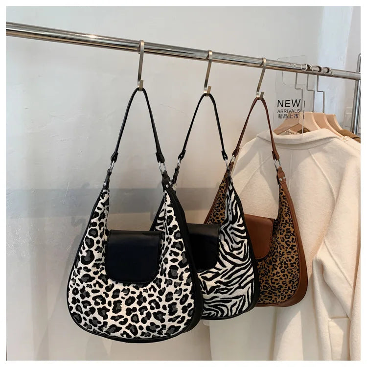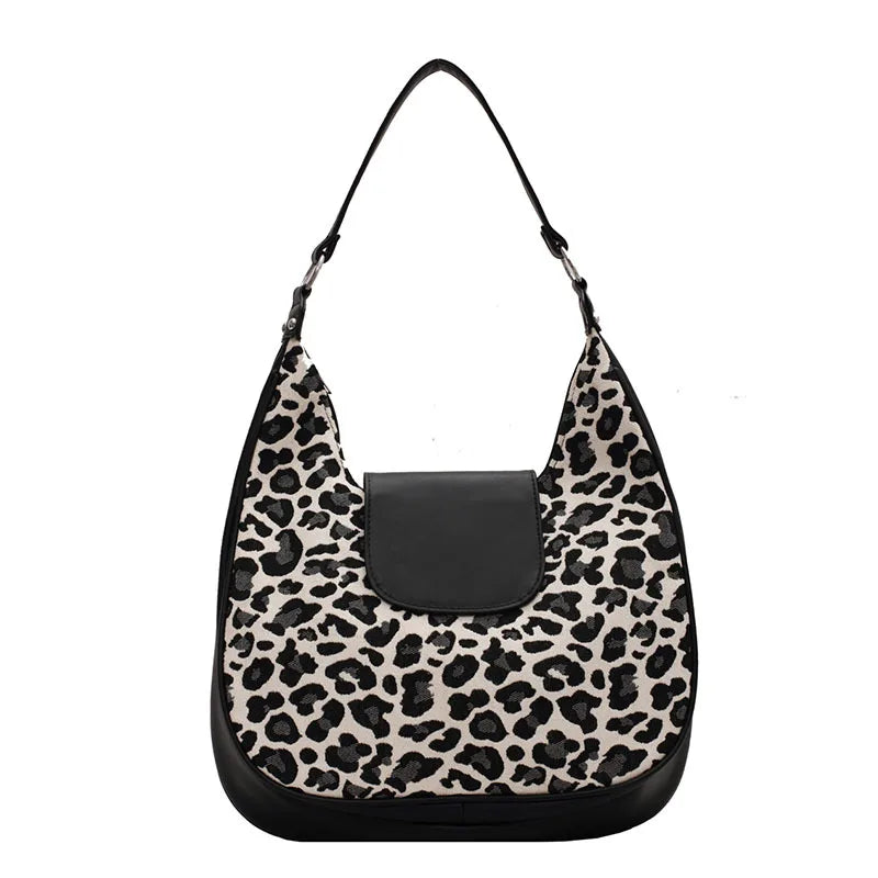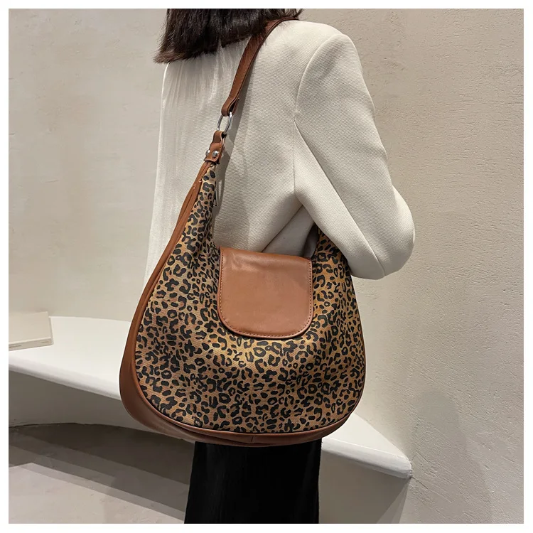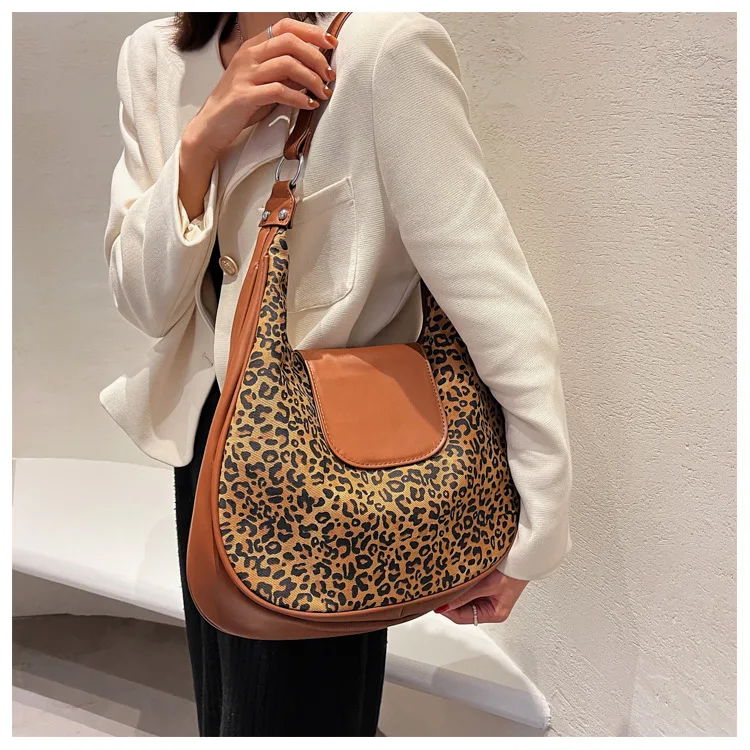 Retro Leopard Print Handbag Half Moon Shoulder Canvas Casual Women's Crossbody Bag Women's Travel Shopping Messenger Bag