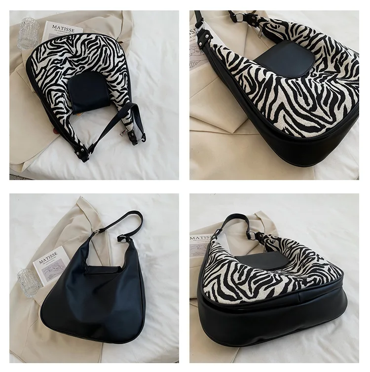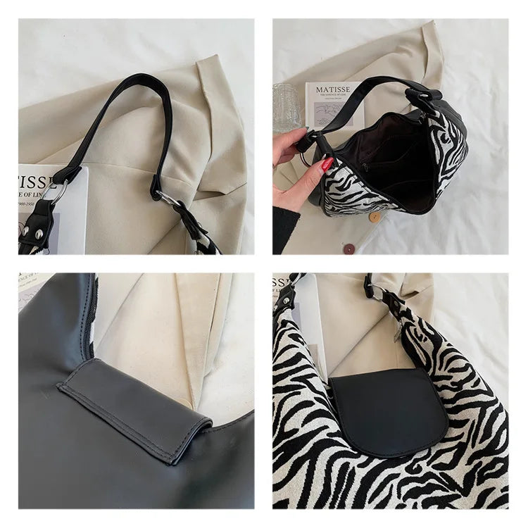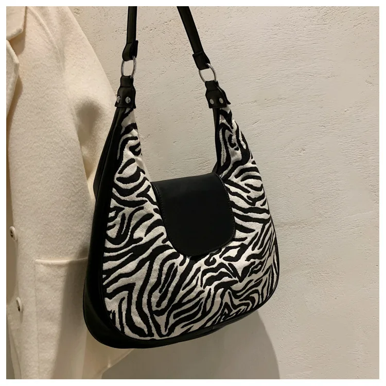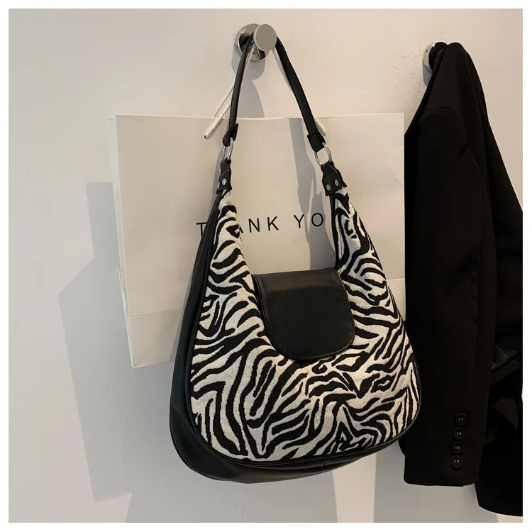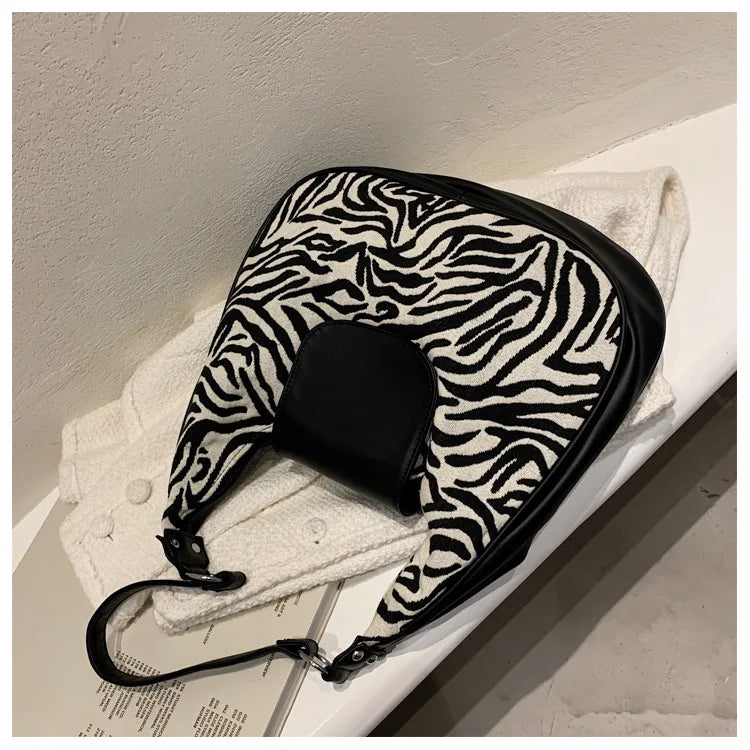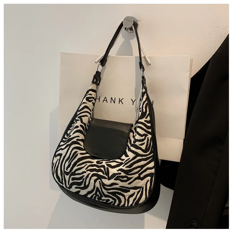 Retro Leopard Print Handbag Half Moon Shoulder Canvas Casual Women's Crossbody Bag Women's Travel Shopping Messenger Bag