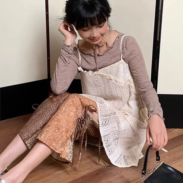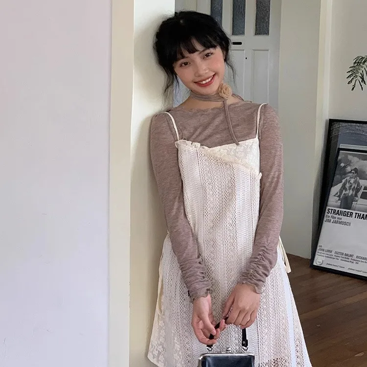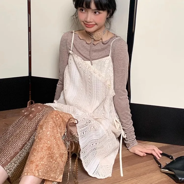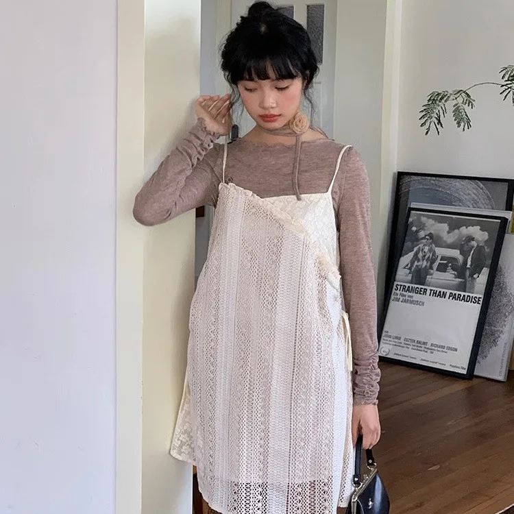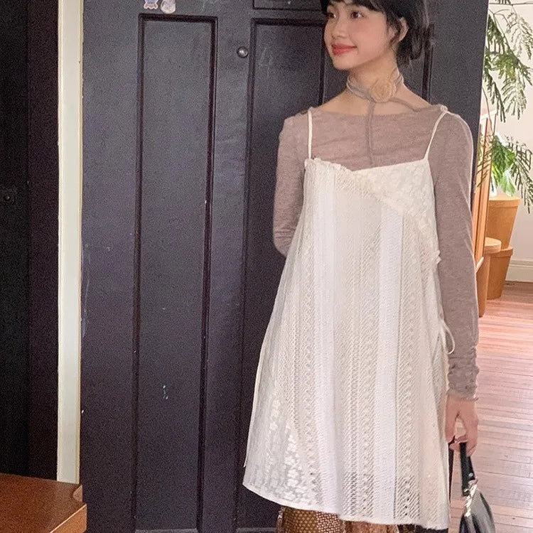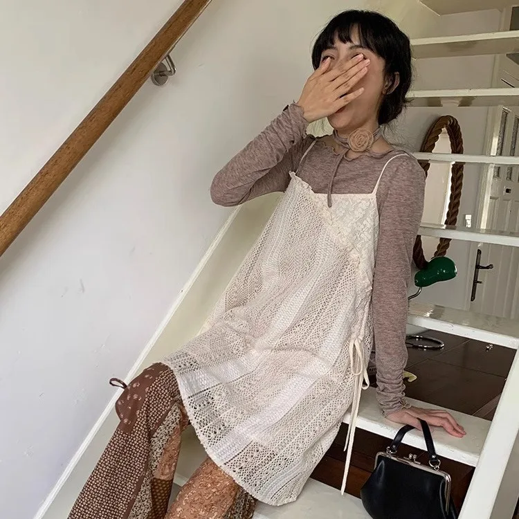 Simple Midlength Loose Vestidos Mujer 2024 Spring New Lace Hollow Out Strap Dresses Y2k EGirl Sleeveless Dress for Women