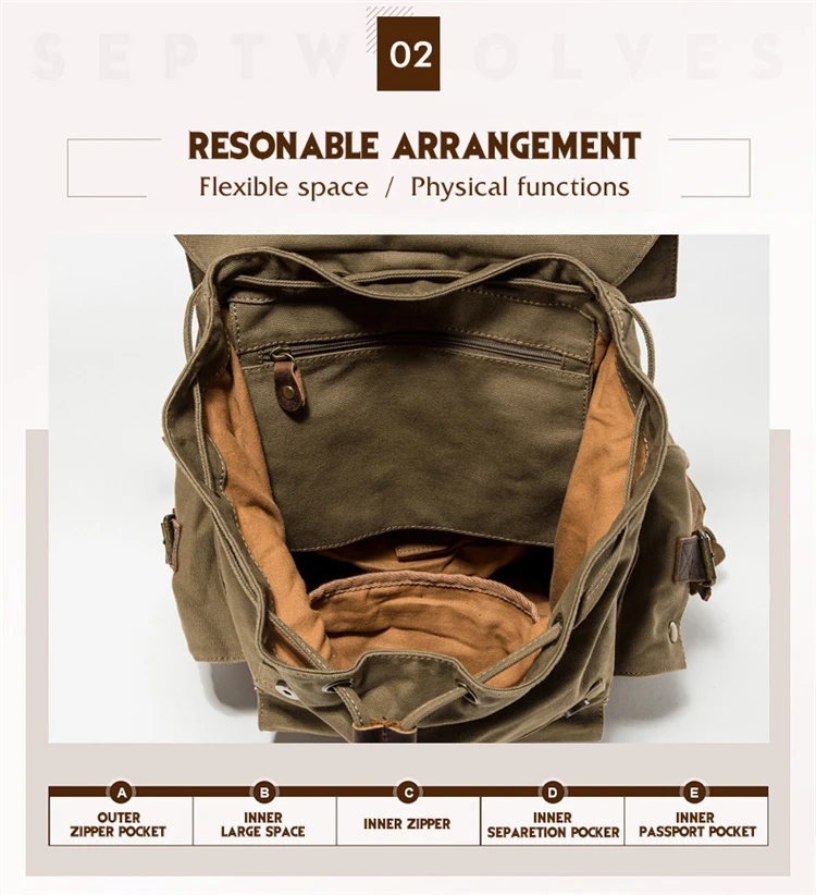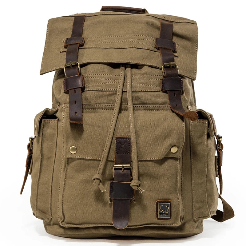 Trendy Big Rucksack Vintage Leather Canvas Travel Hiking Camping Backpacks Men Women School bag Backpack