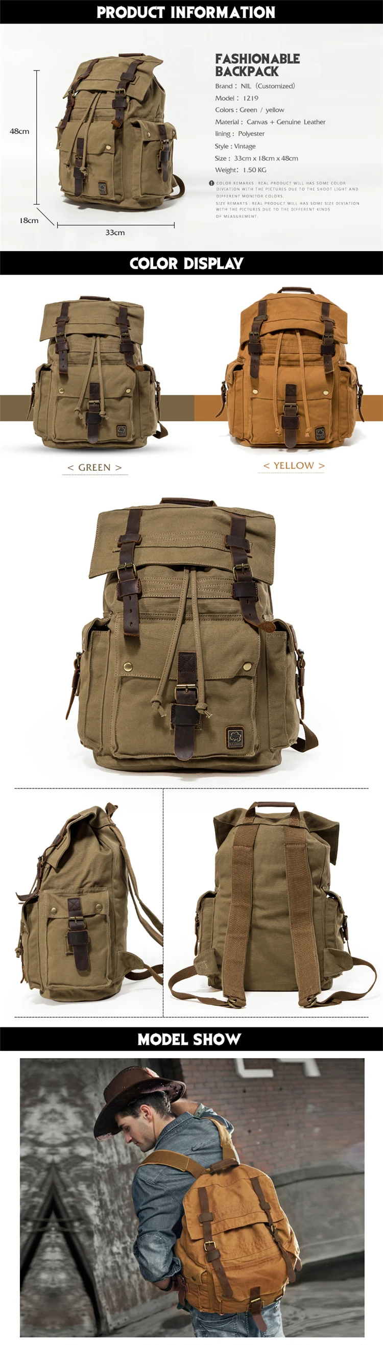 | Material: | Canvas+Genuine Leather | Weight: | 1.5kg |
