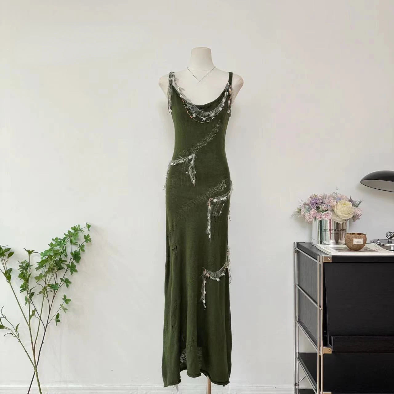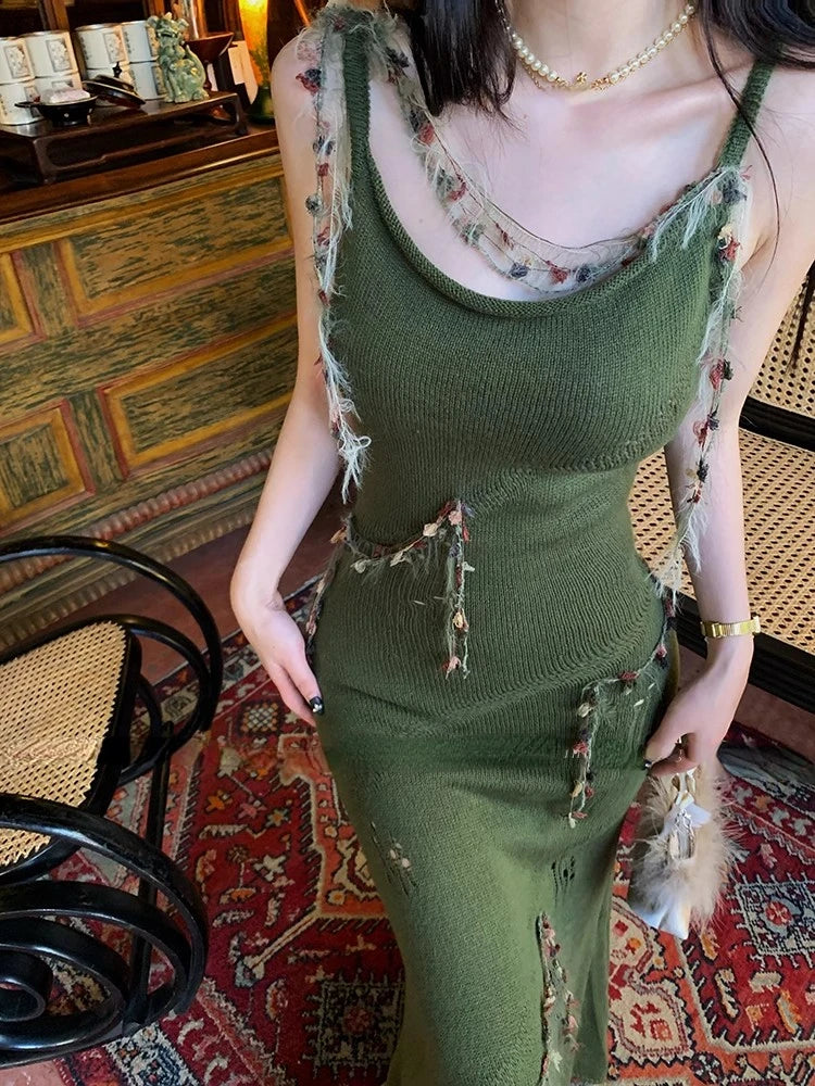 2000s Y2k Vintage Midi Dress Women Casual Elegant Bodycon Knitted Dress Even Party Korean Fashion Chic Outwear Summer Sleeveless
