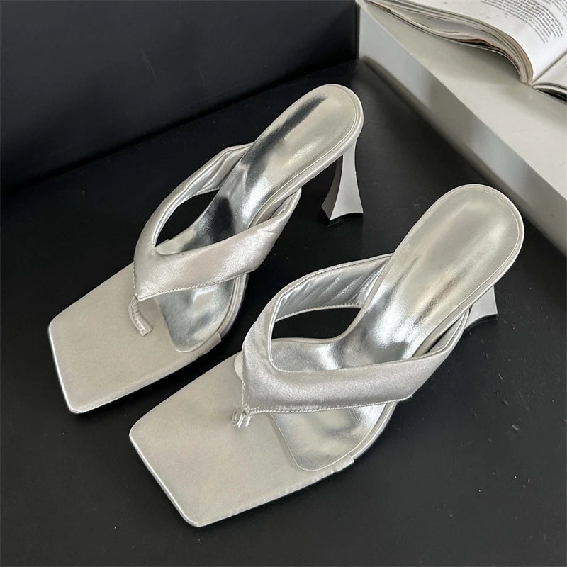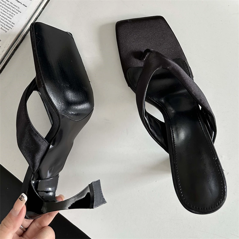 KYLETHOMASW - 2024 Summer Square Clip Toe Slippers Women High Heels Casual Slides Sandals Fashion Flip Flops Ladies Shoes