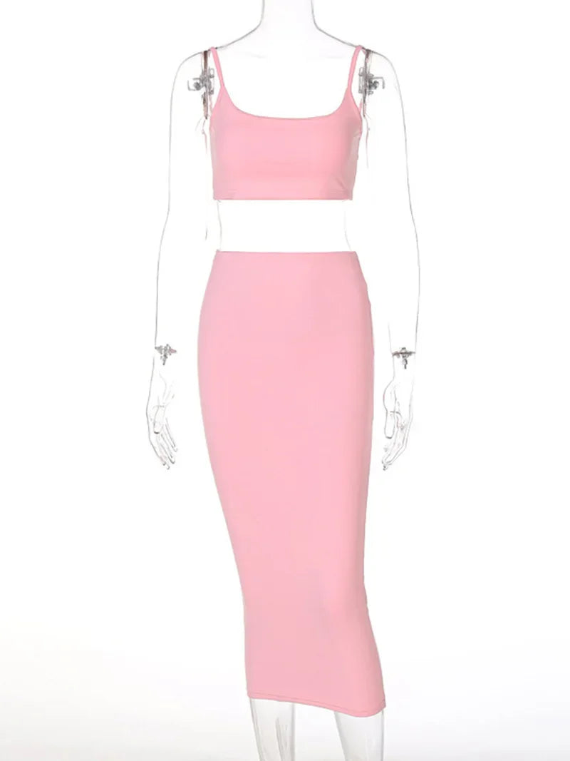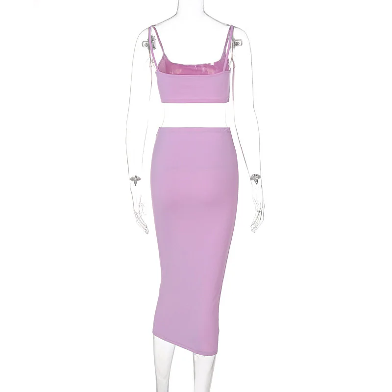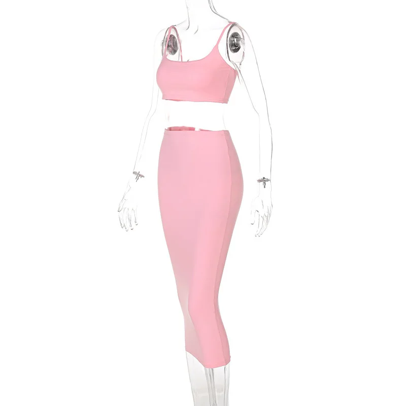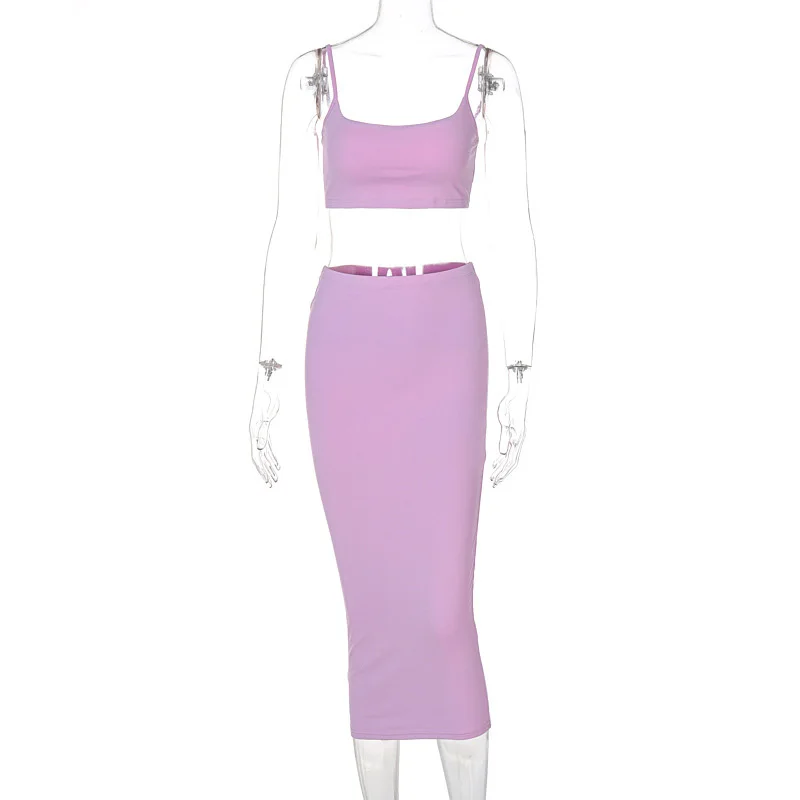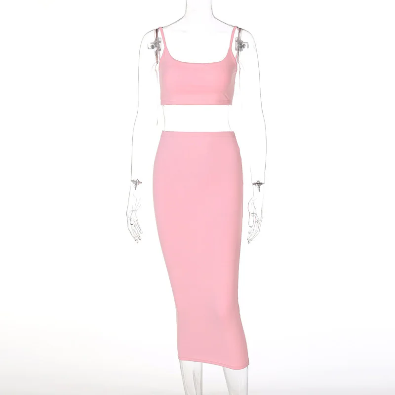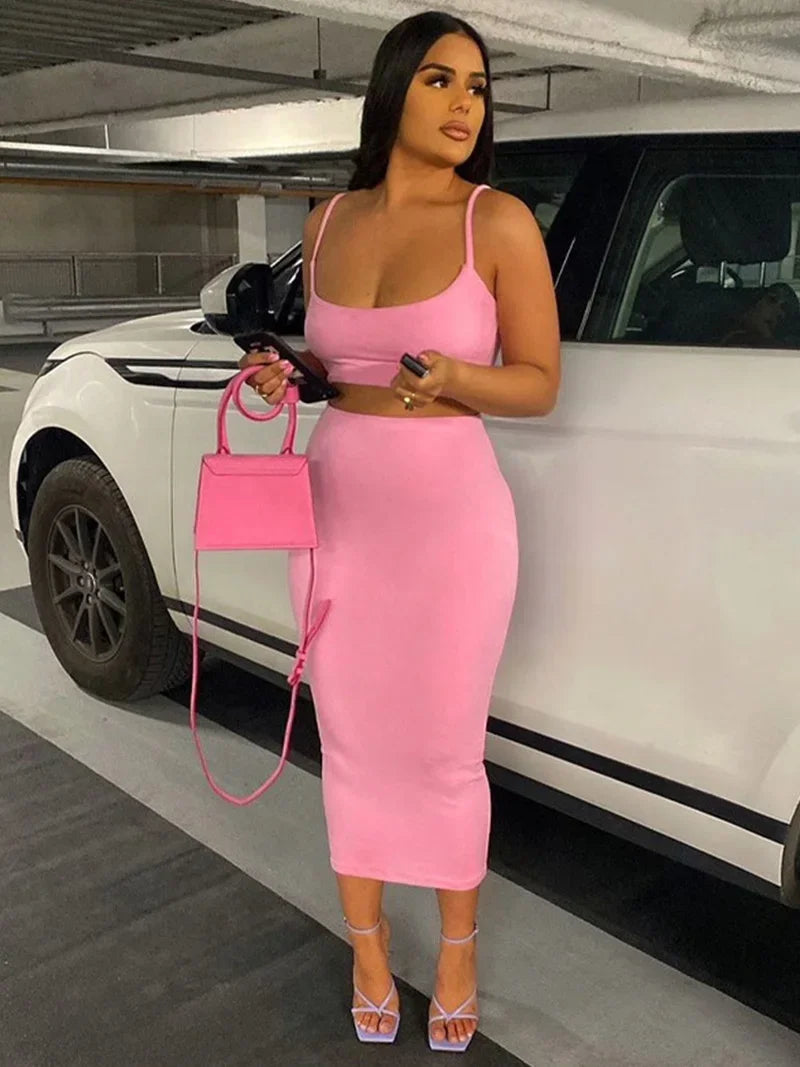 Kylethomasw 2024 Summer Women Solid Sexy Bodycon Slim Fit Midi Skirt Matching Set Outfits Crop Tops 2 Two Piece Set Female vestidos de mujer