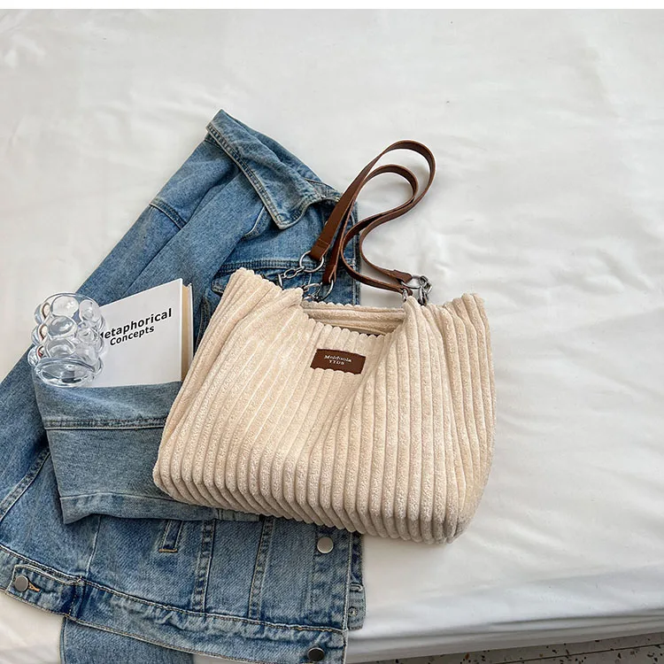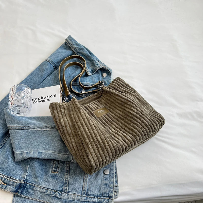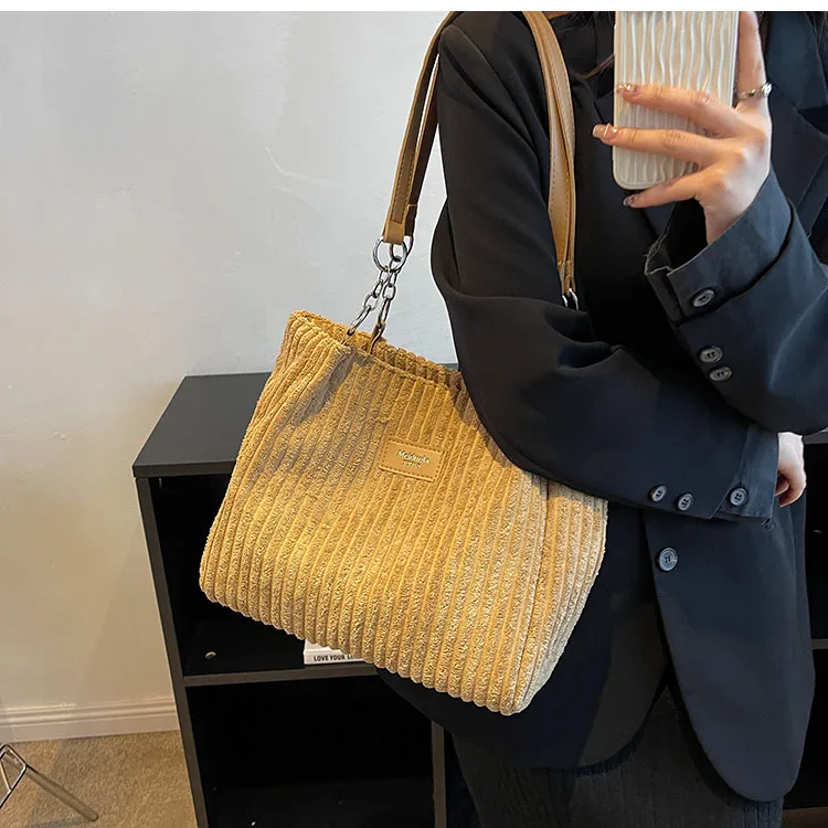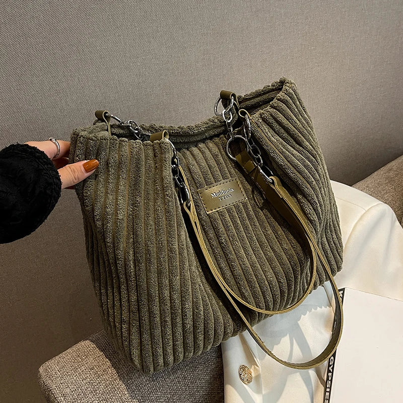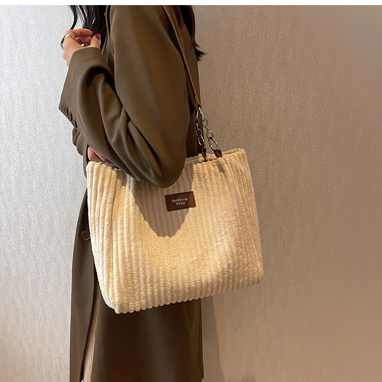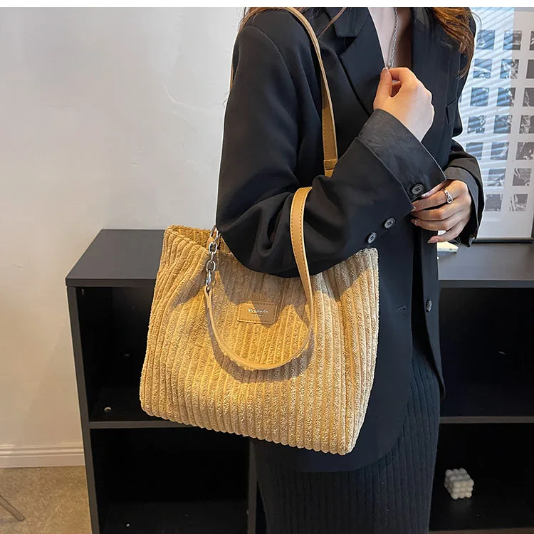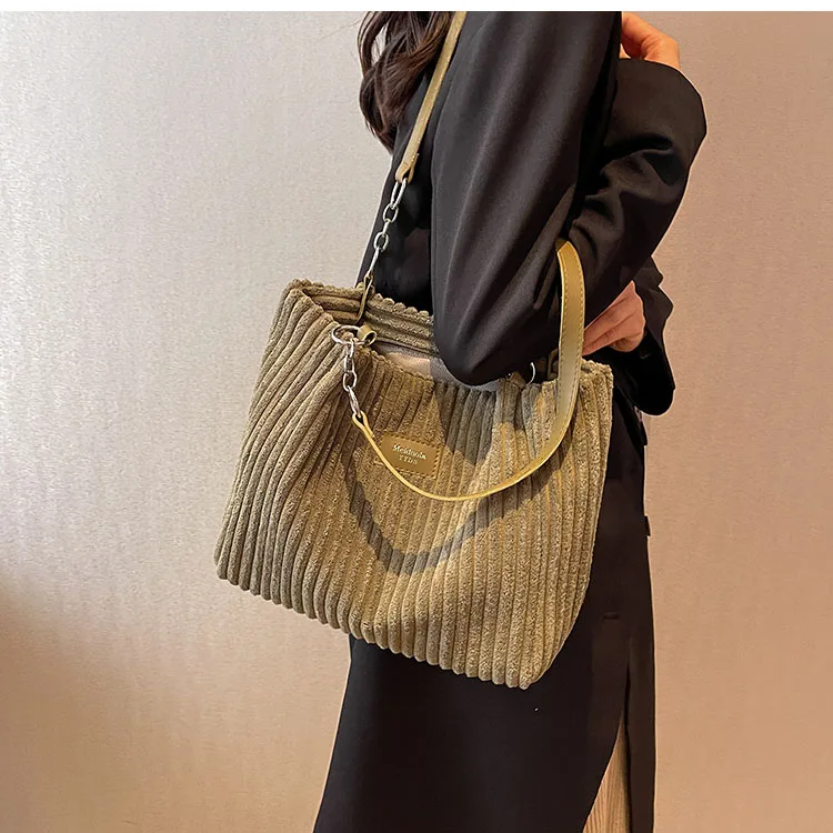Kylethomasw Big design tote bag winter softcorduroy handbags for women Fashion trend Shoulder Messenger Bags Shopper bag wallet