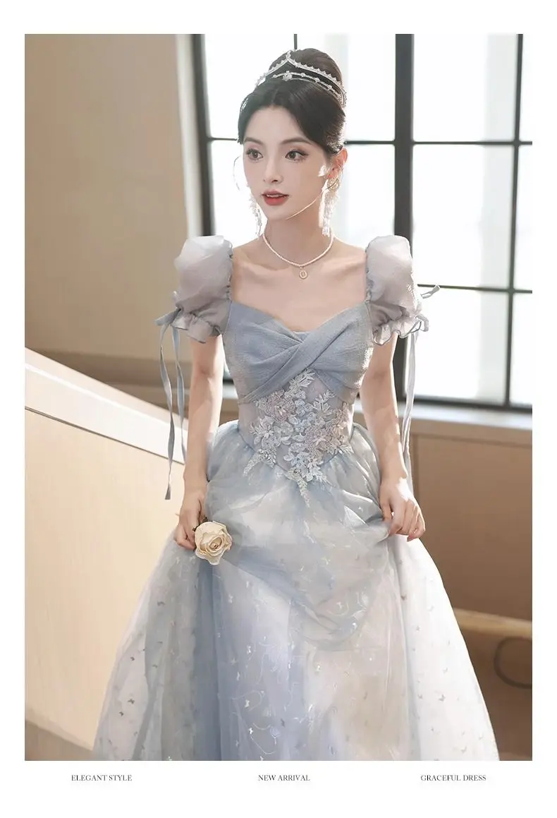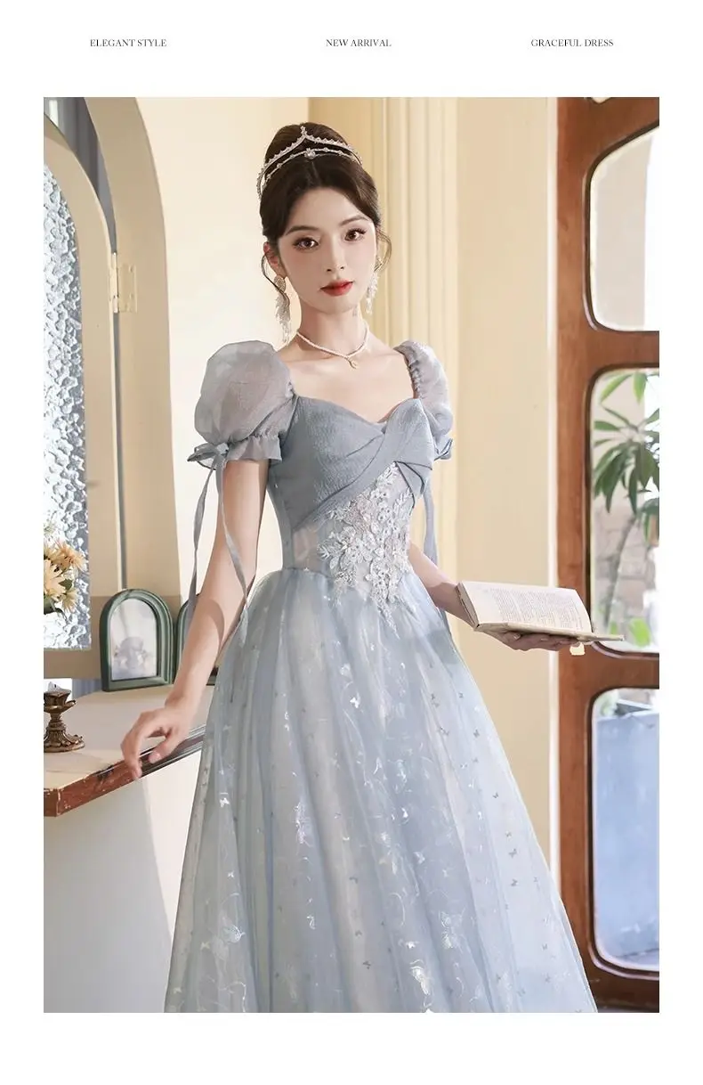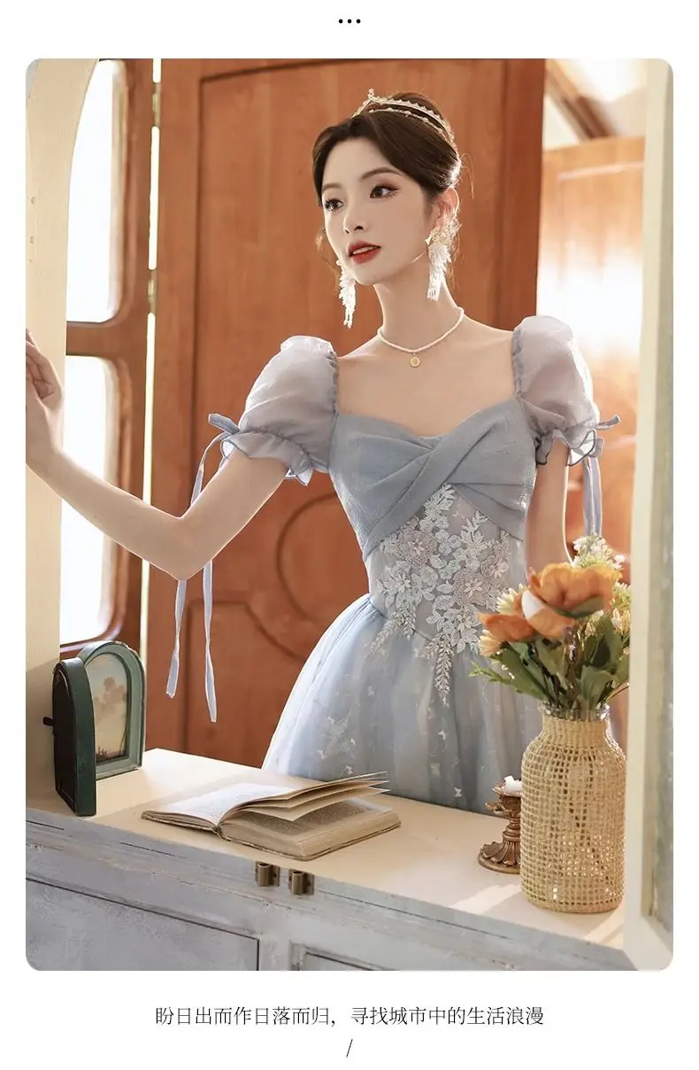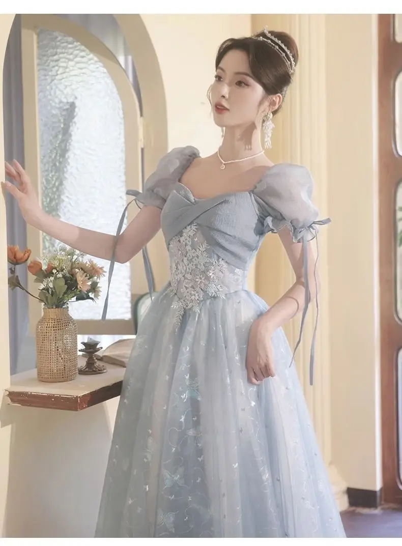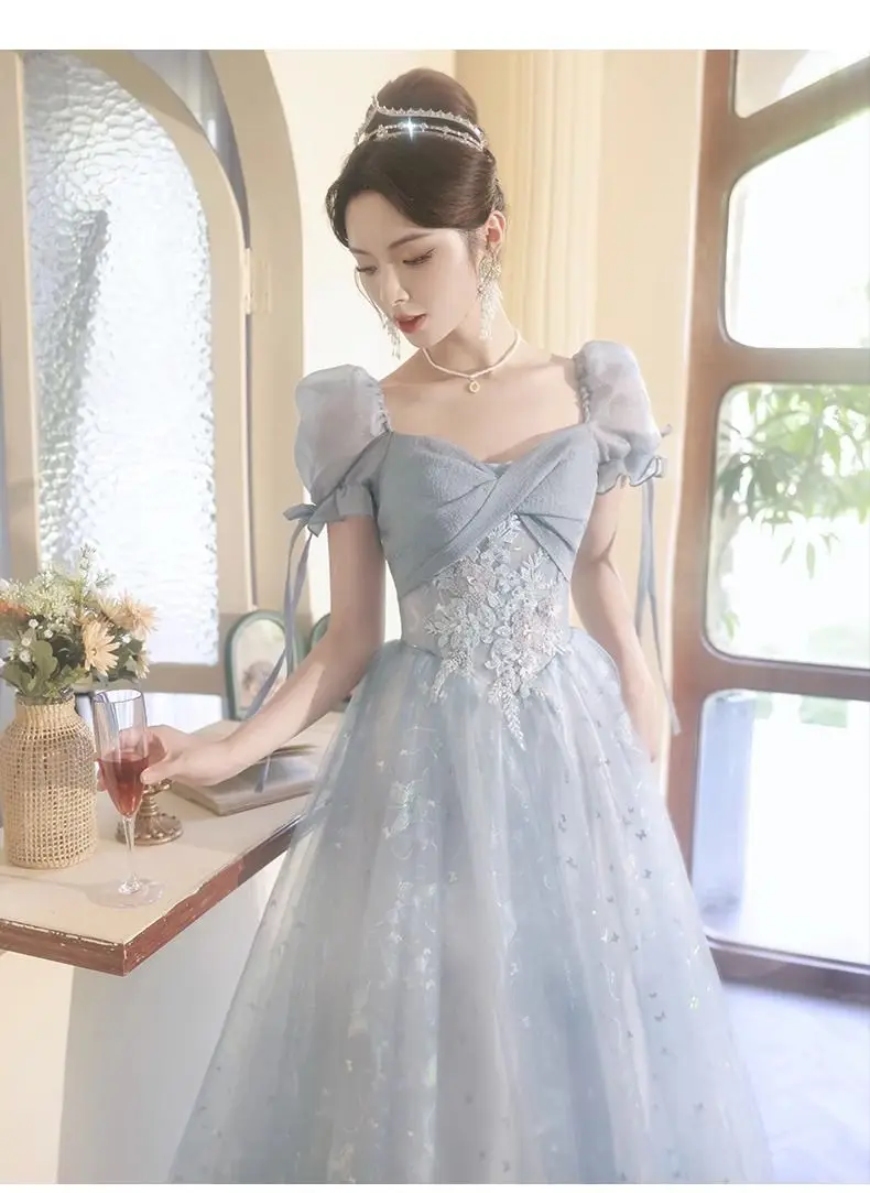 KYLETHOMASW - Blue Graduation Ceremony Senior High School Evening Dress French Adult Birthday Party Art Exam Host Performance Dress Female