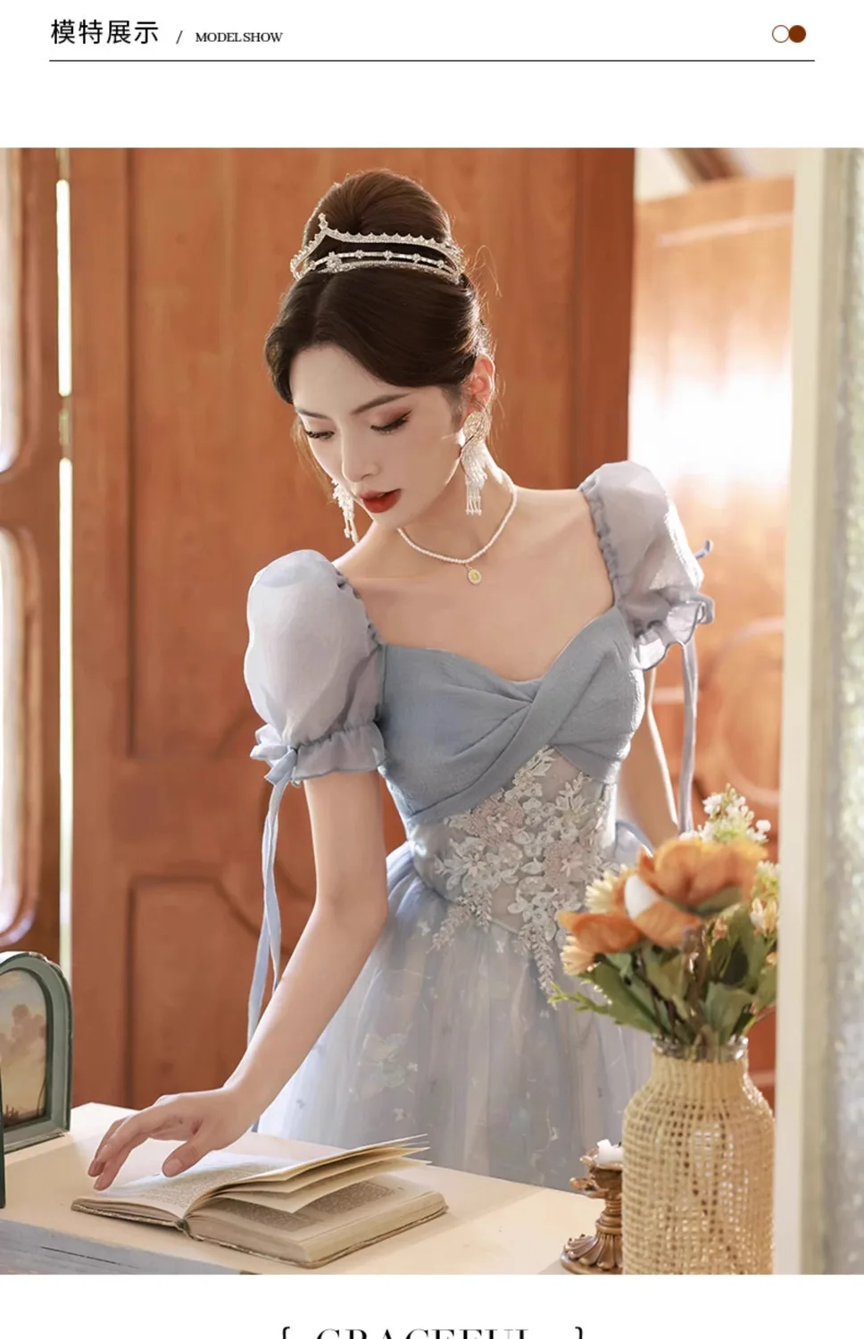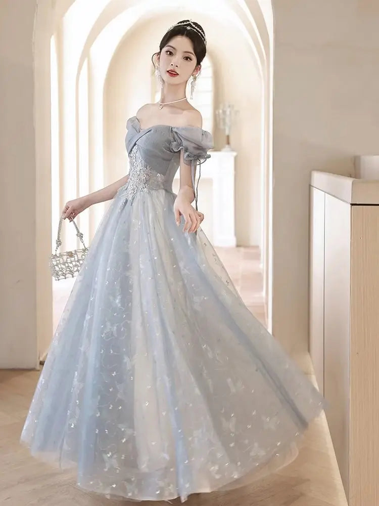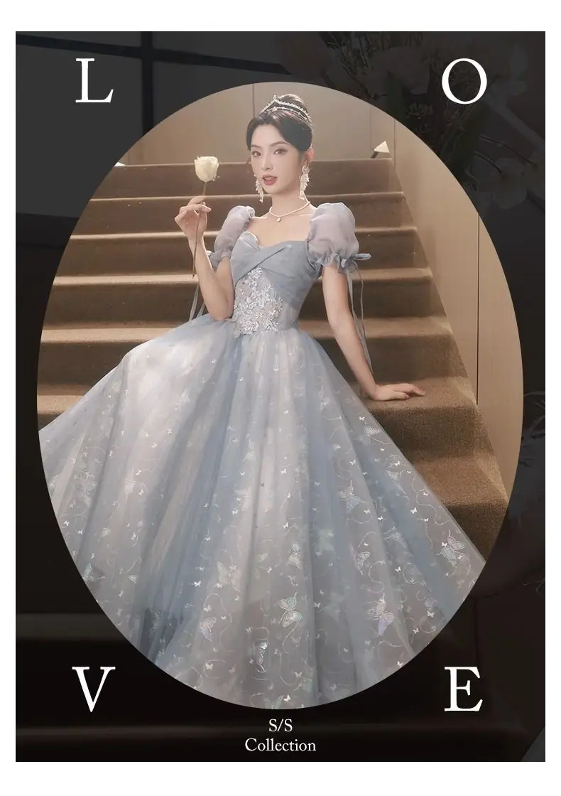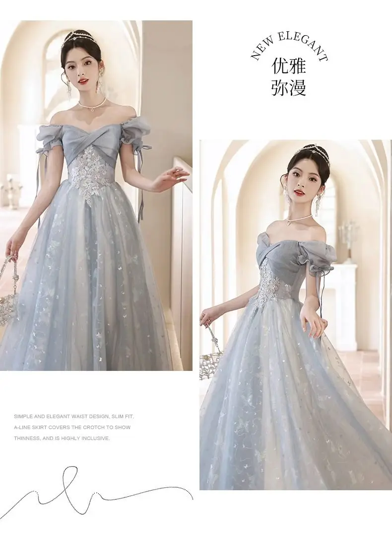 KYLETHOMASW - Blue Graduation Ceremony Senior High School Evening Dress French Adult Birthday Party Art Exam Host Performance Dress Female