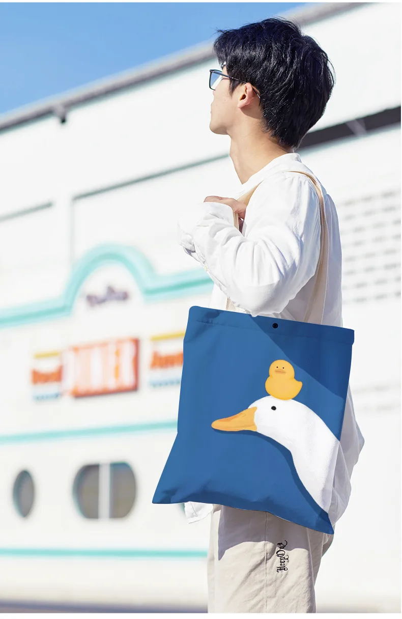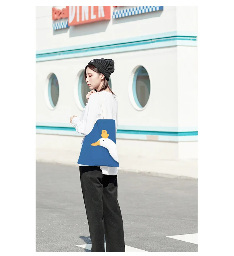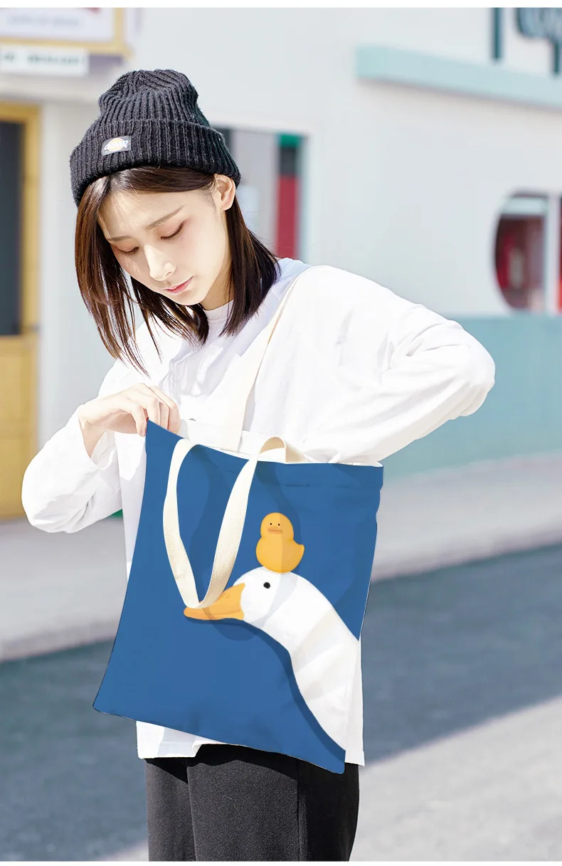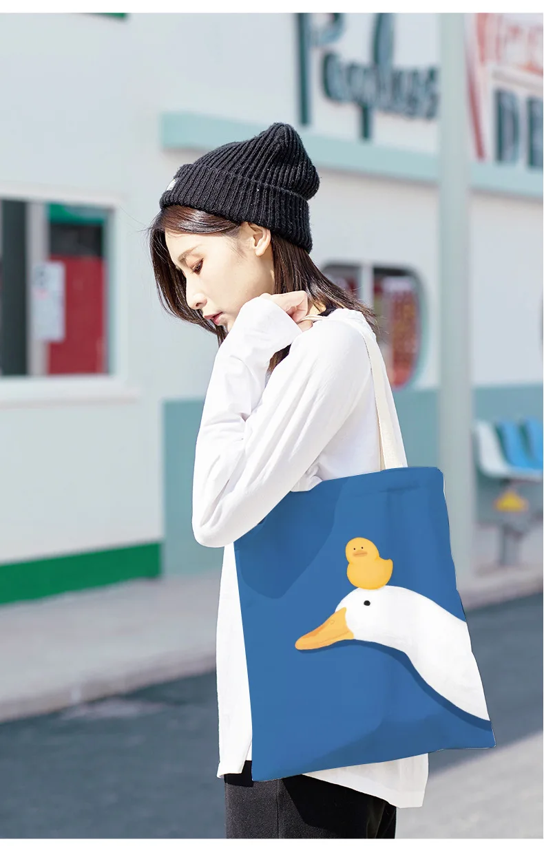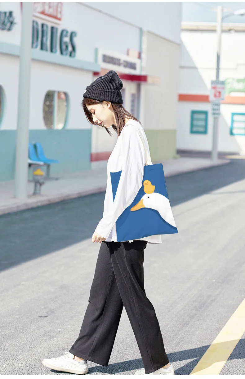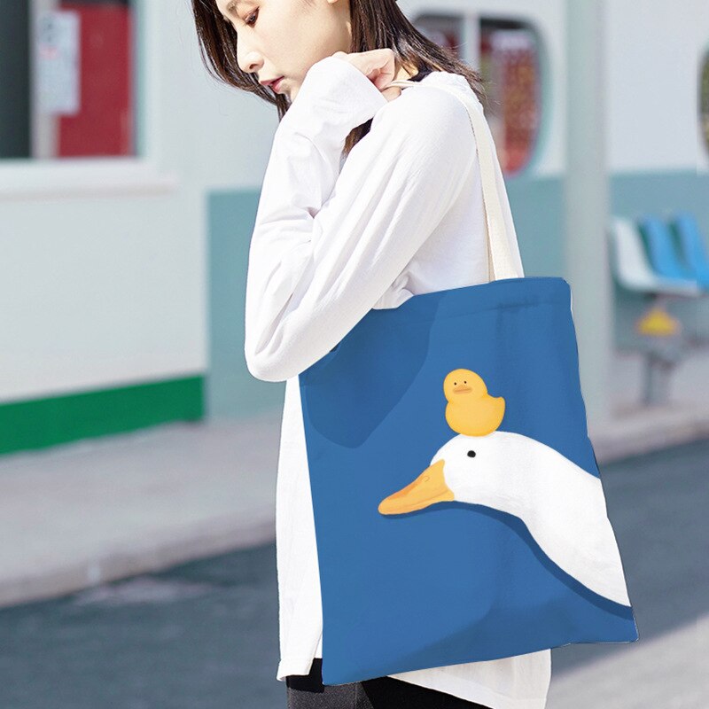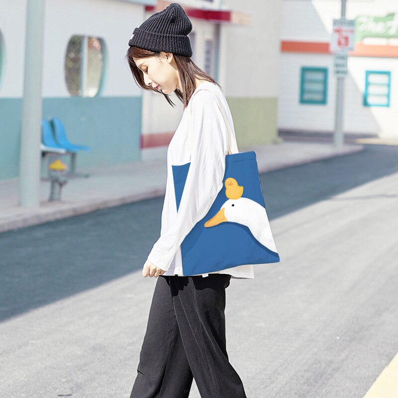 Kylethomasw Bolsa Feminina Hand-painted Cartoon Goose and Duck Print Shoulder Bag For Women Canvas Bag Shopper Bag Ladies Hand Bags Sac Main