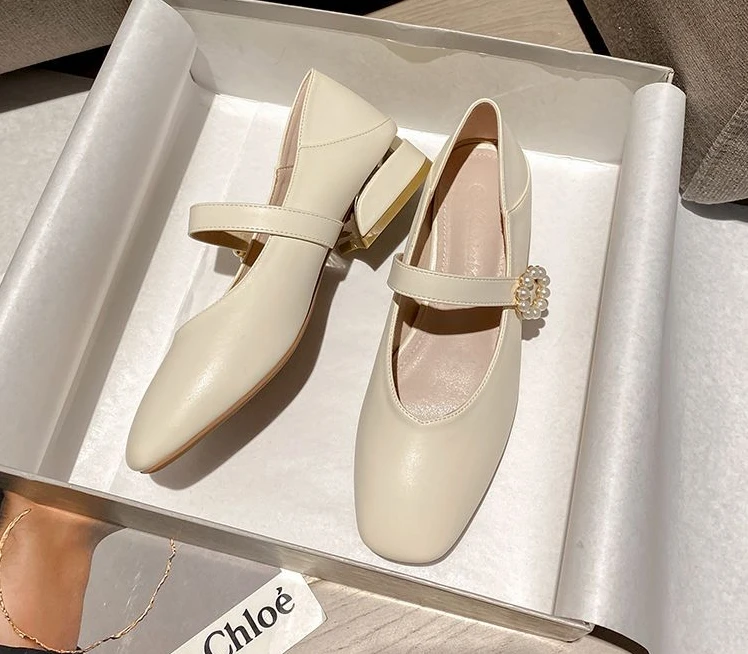 Kylethomasw Cute Kawaii Mary Jane Shoes for Women 2024 White Ladies Summer Footwear Gothic Square Heels Low Heel Elegant Popular E Young 39
