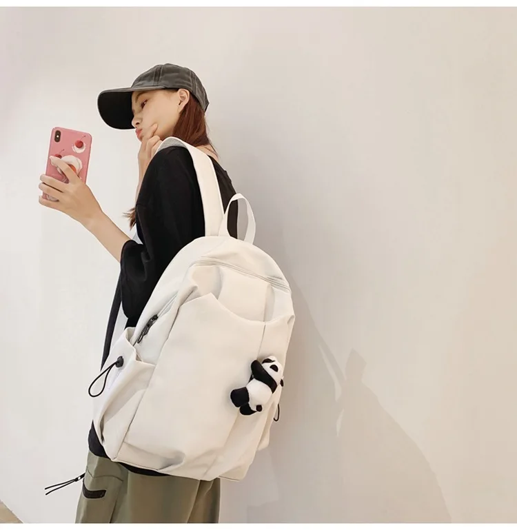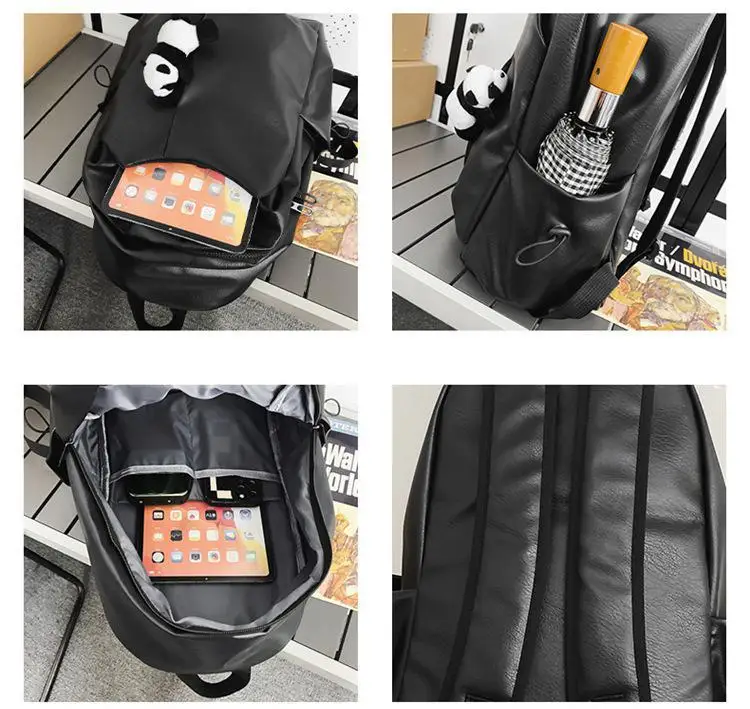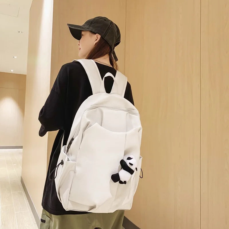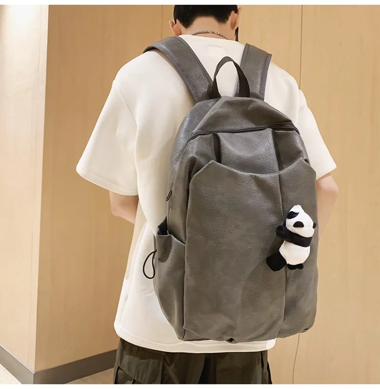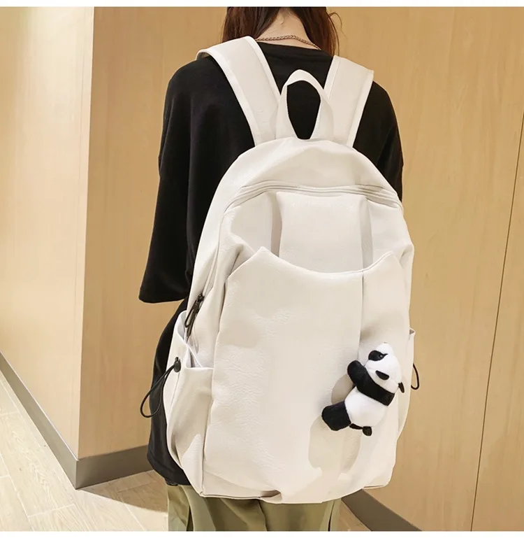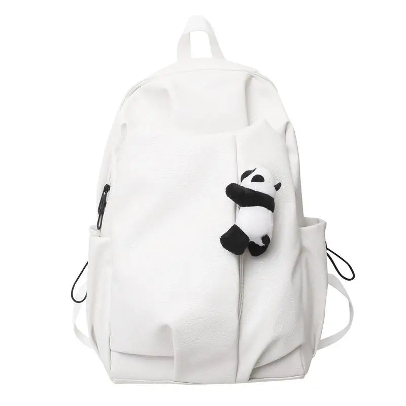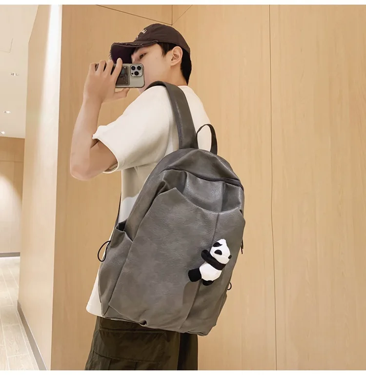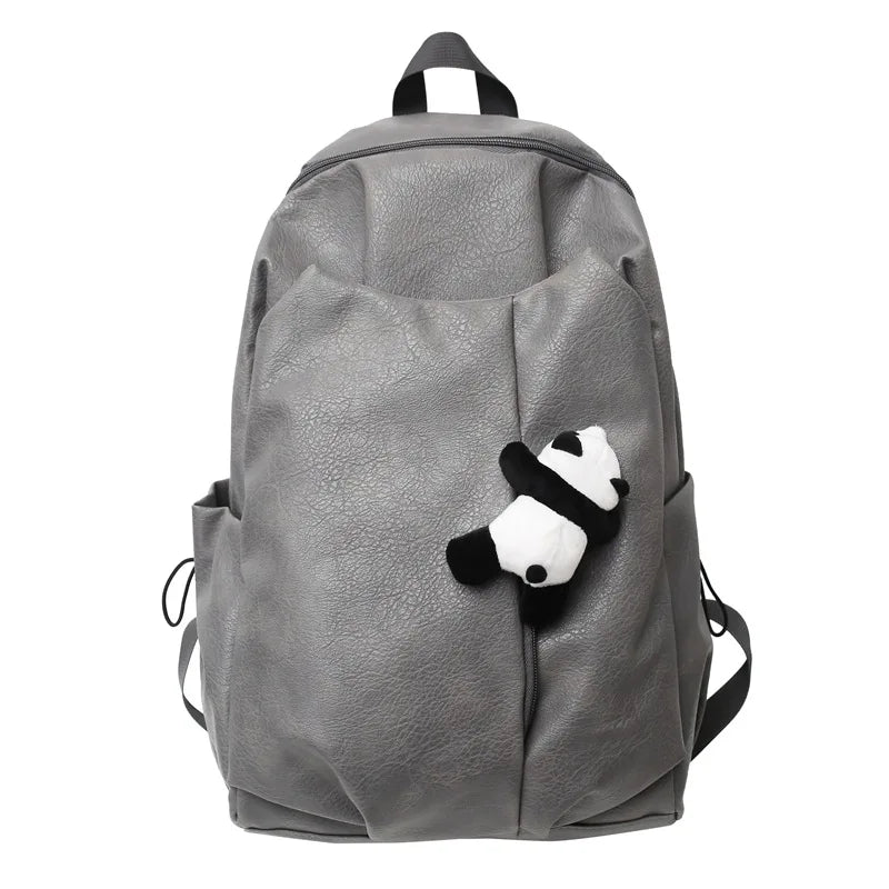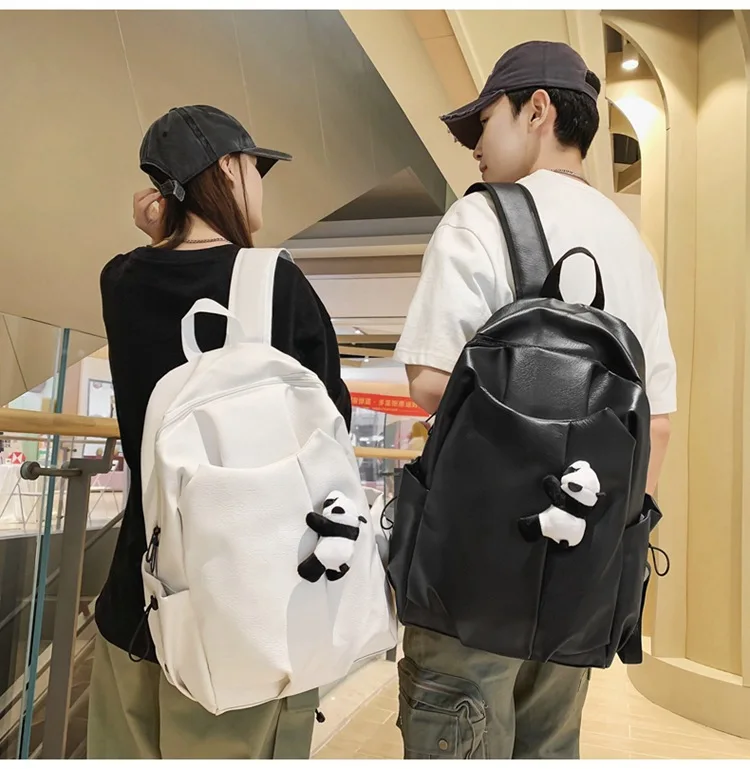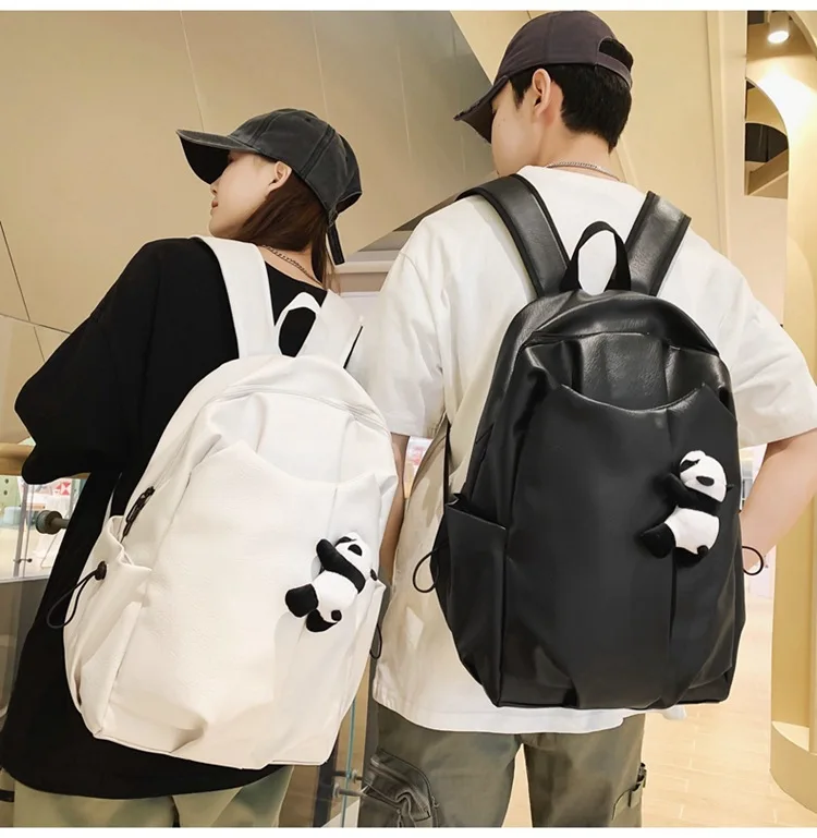 Kylethomasw Cute Panda Pendant Women Man Backpack Pu Leather Men's Backpacks Girl Black White Back Pack Laptop Bag Large Capacity Travel Bag