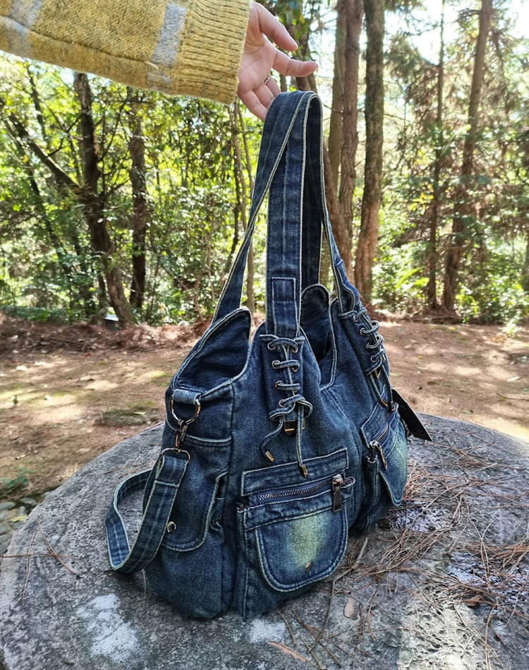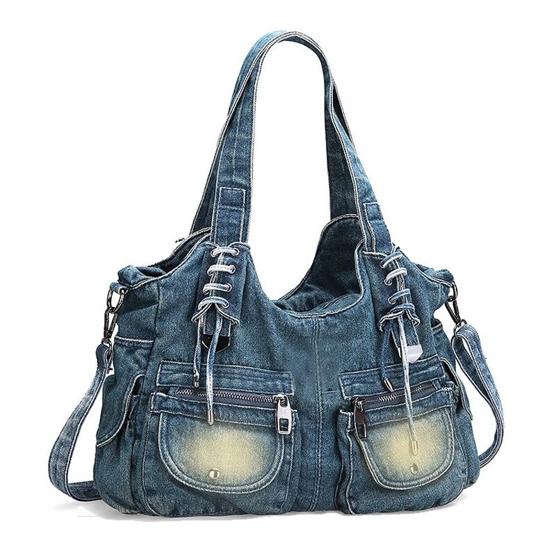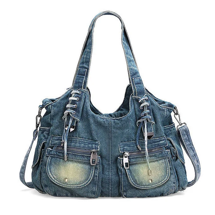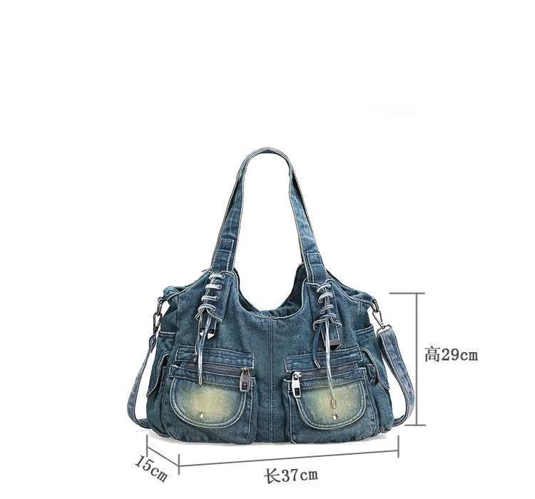Kylethomasw Denim Women's Shoulder Bag Harajuku High Capacity Ladies Handbags Canvas Shopping Travel Female Tote Bag Jeans Crossbody Bag