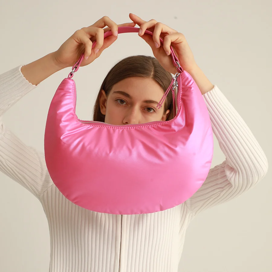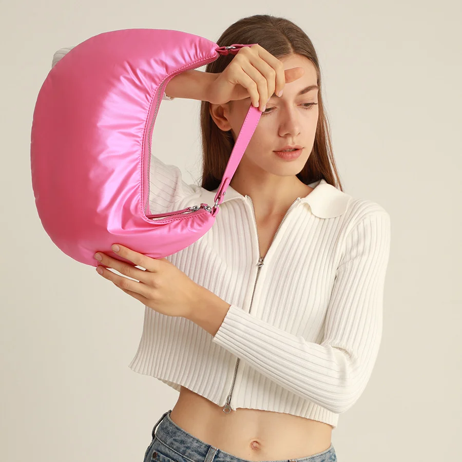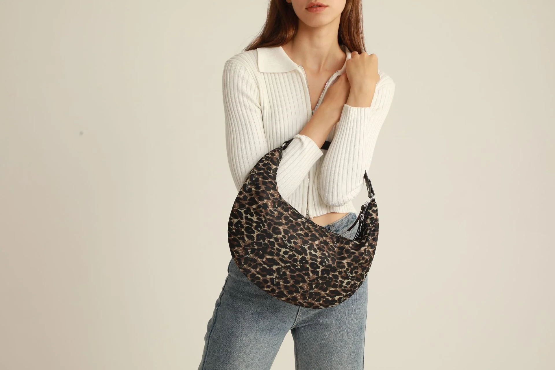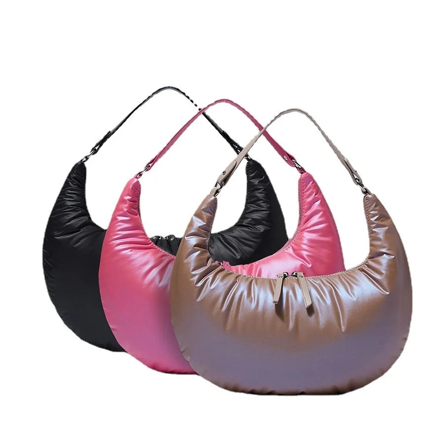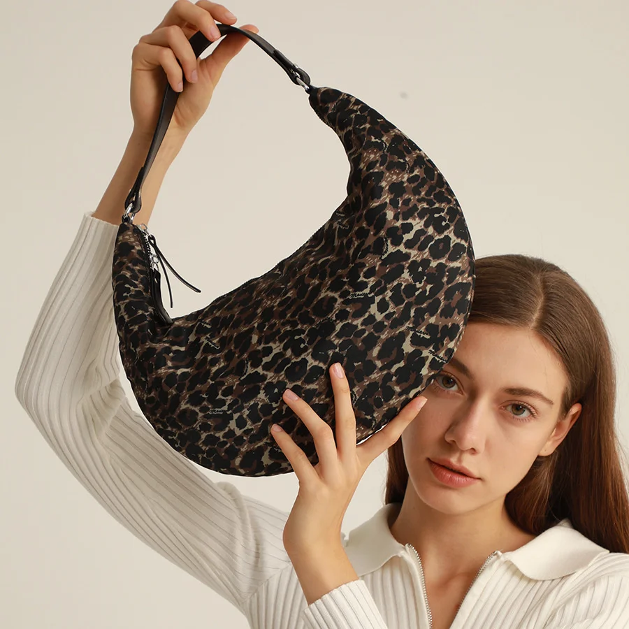 Down Underarm Women's Leopard Print Candy Color Crescent Air Cushion Autumn And Winter New Single Shoulder Fast Bag