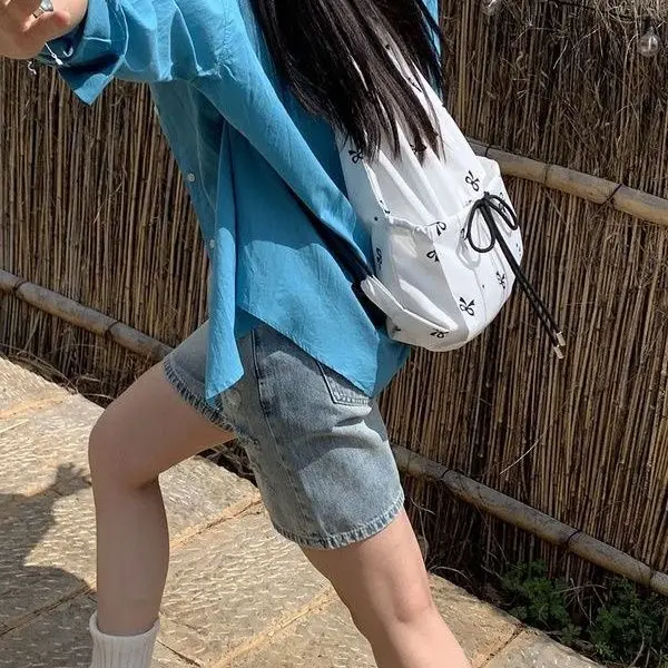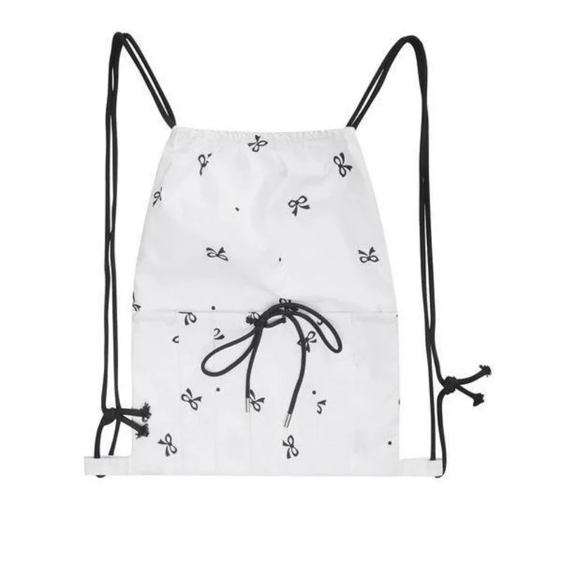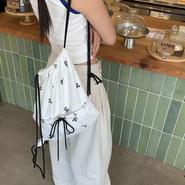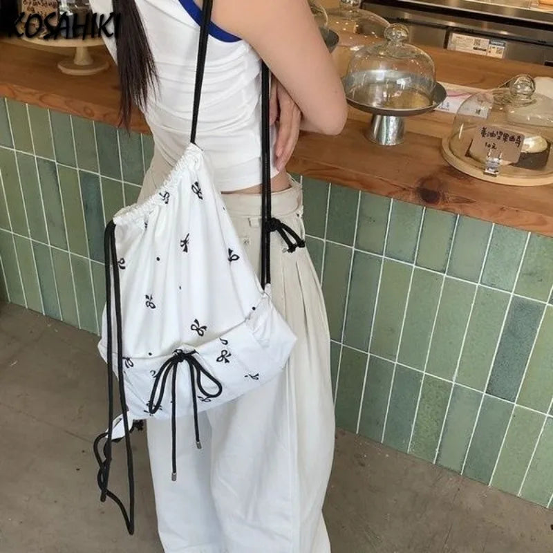 Kylethomasw Drawstring Korean Sweet Bow Print Backpacks Fashion All Match Chic Preppy Schoolbags Casual Streetwear Women Bags Y2k Aesthetic