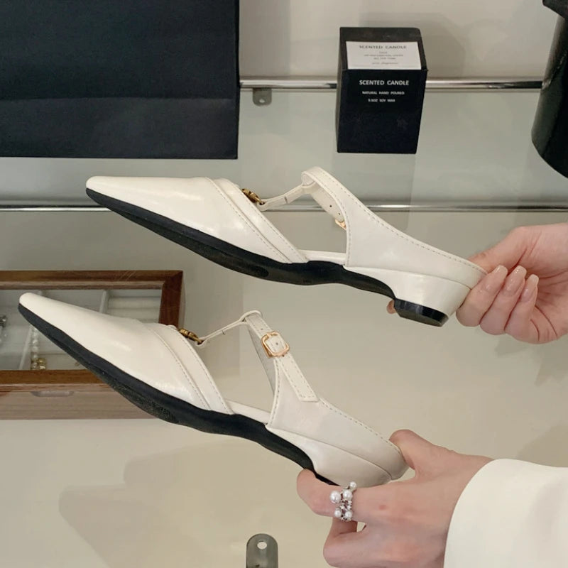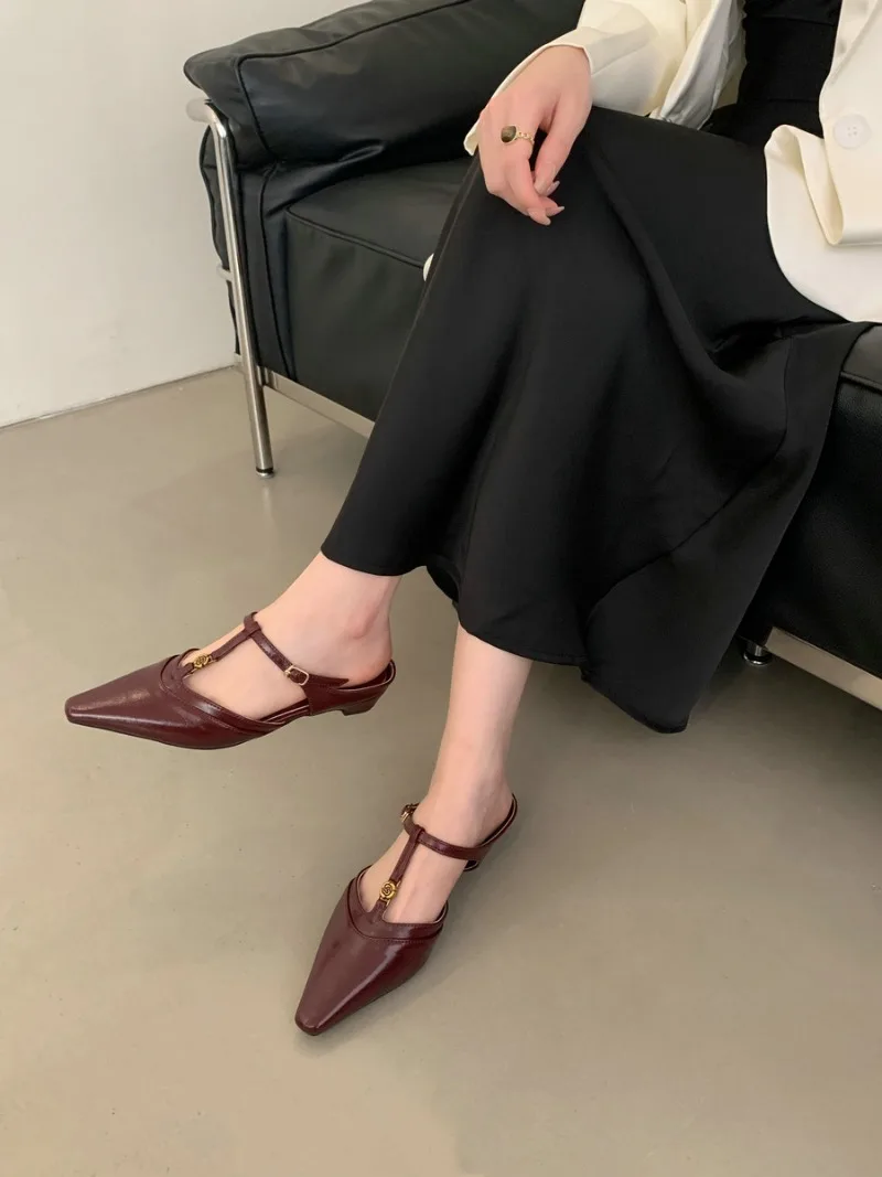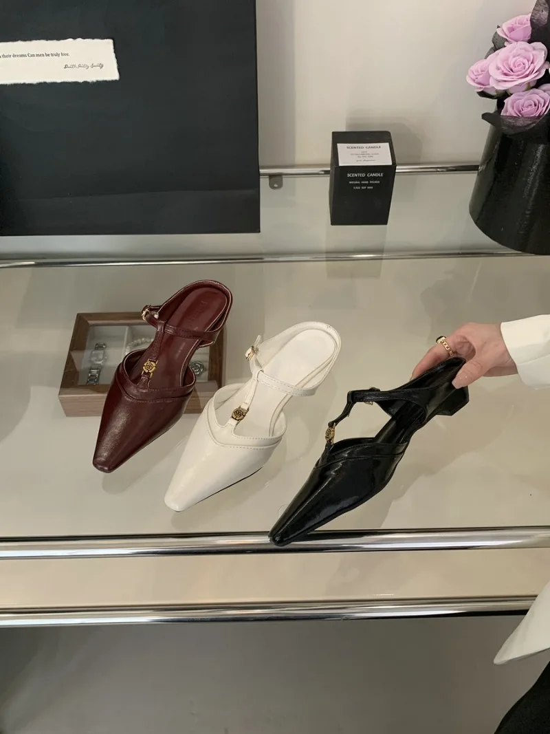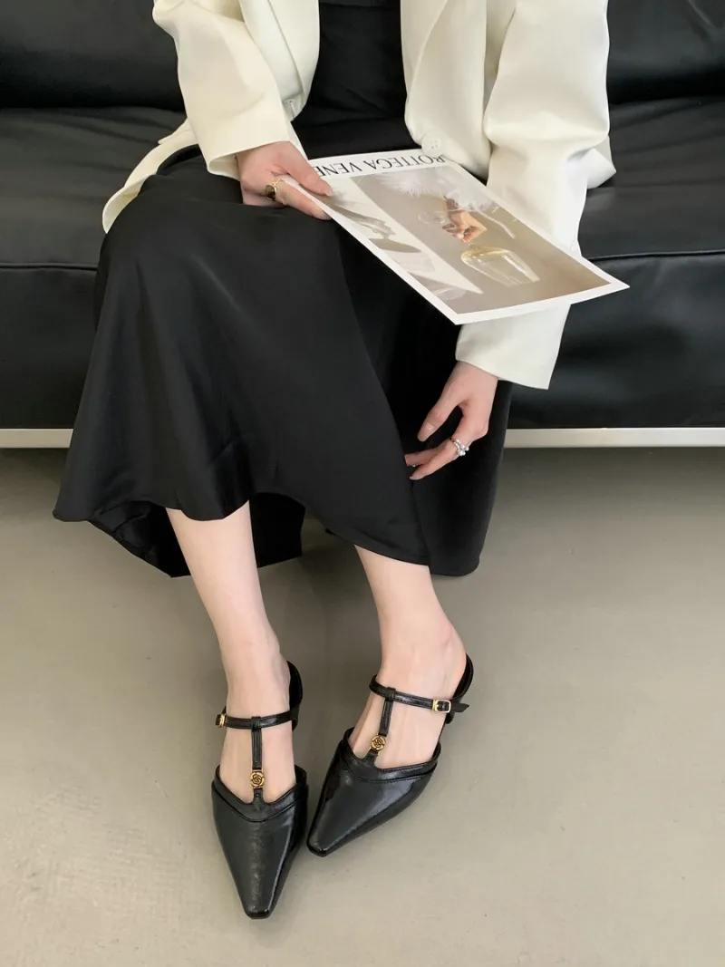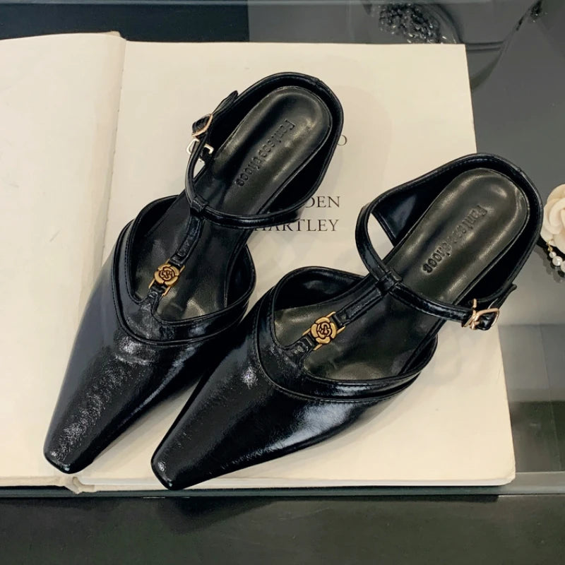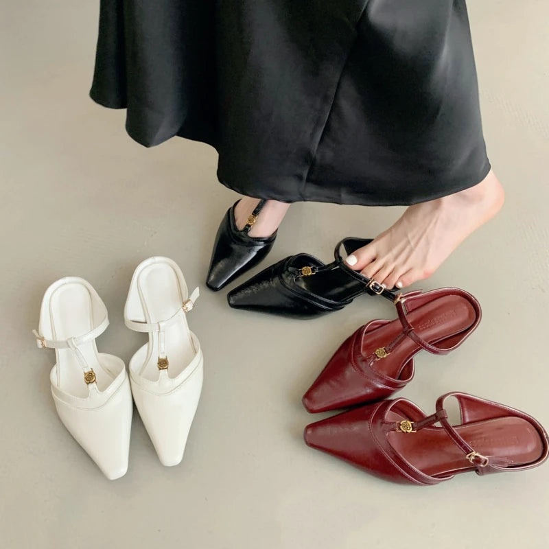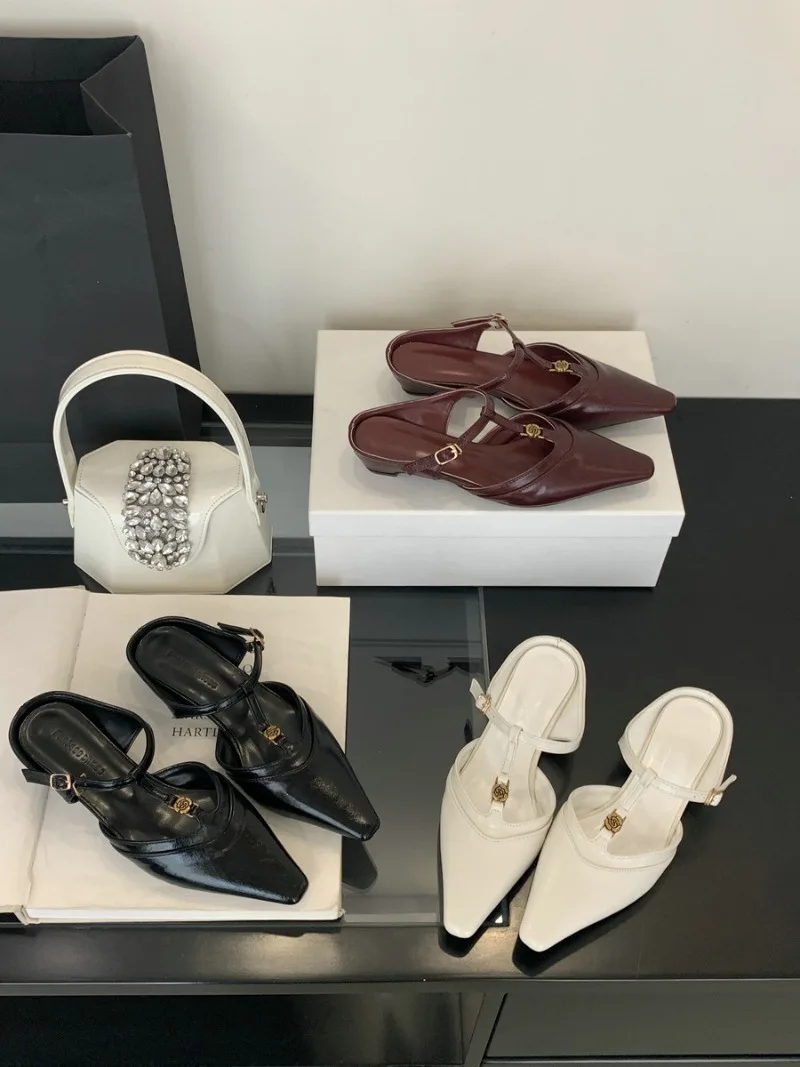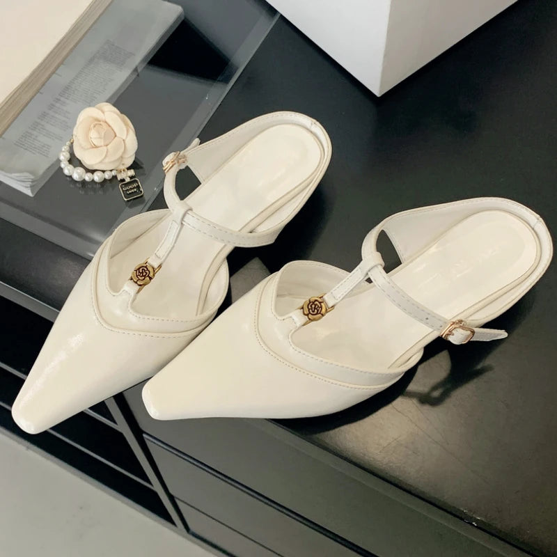 KYLETHOMASW - Elegant T Strap Designer Slide Slipper Women Summer Fashion Metal Decoration Office Sandal Party Backless Dress Pumps for ladies
