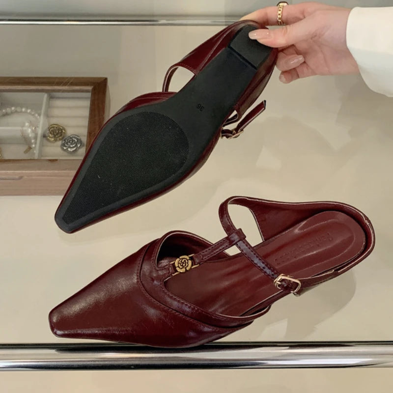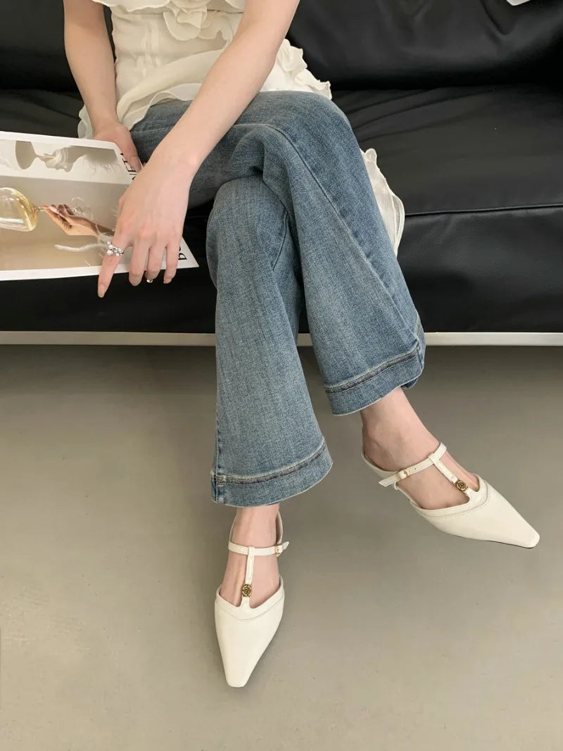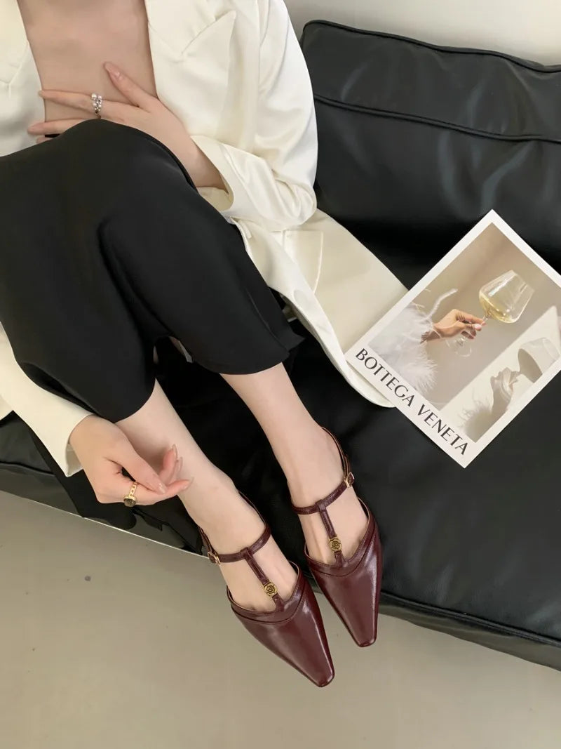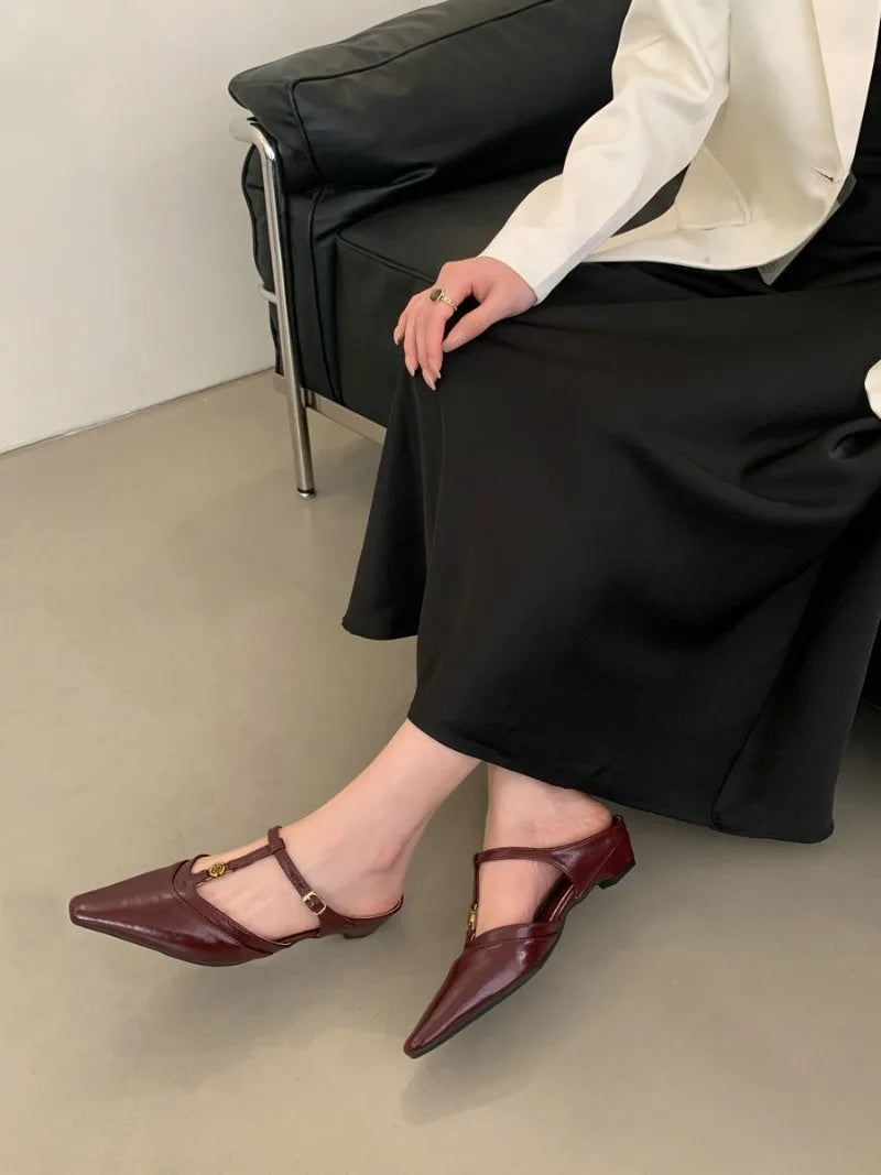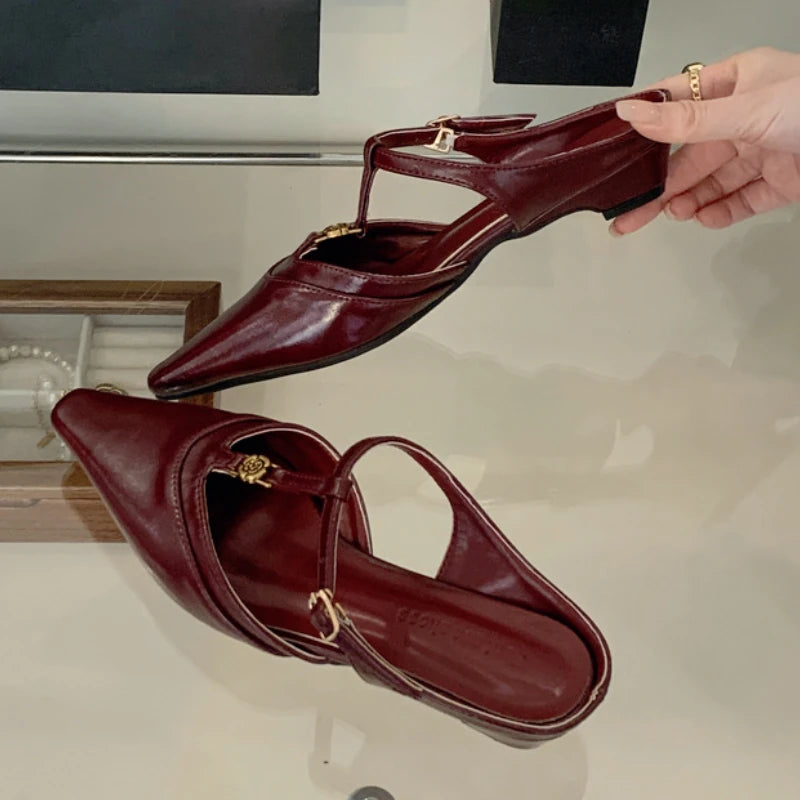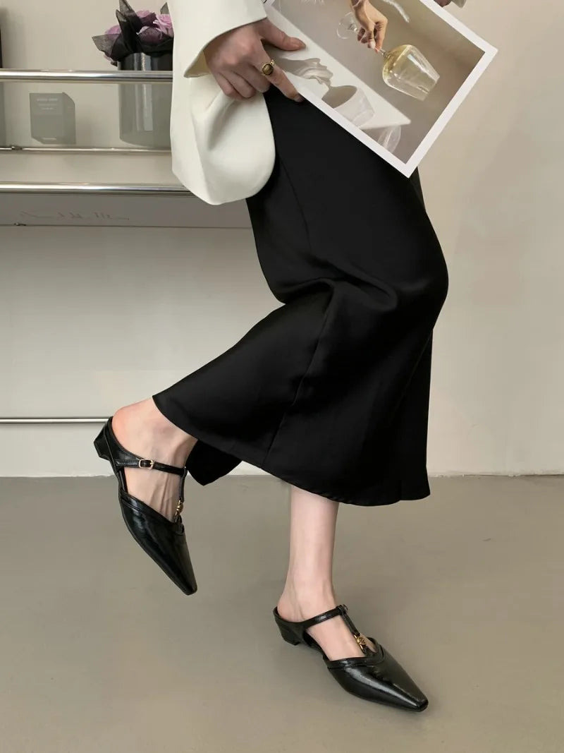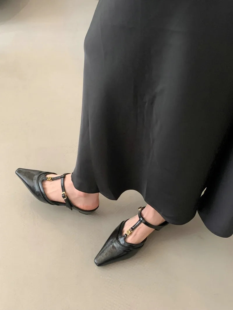 KYLETHOMASW - Elegant T Strap Designer Slide Slipper Women Summer Fashion Metal Decoration Office Sandal Party Backless Dress Pumps for ladies