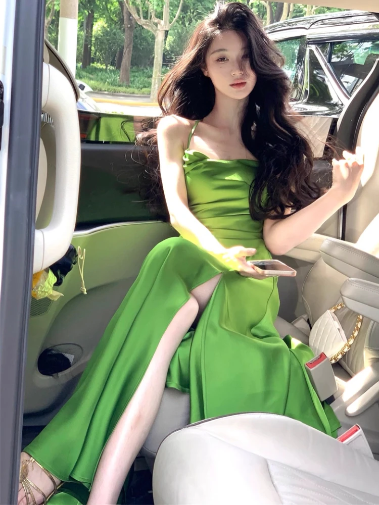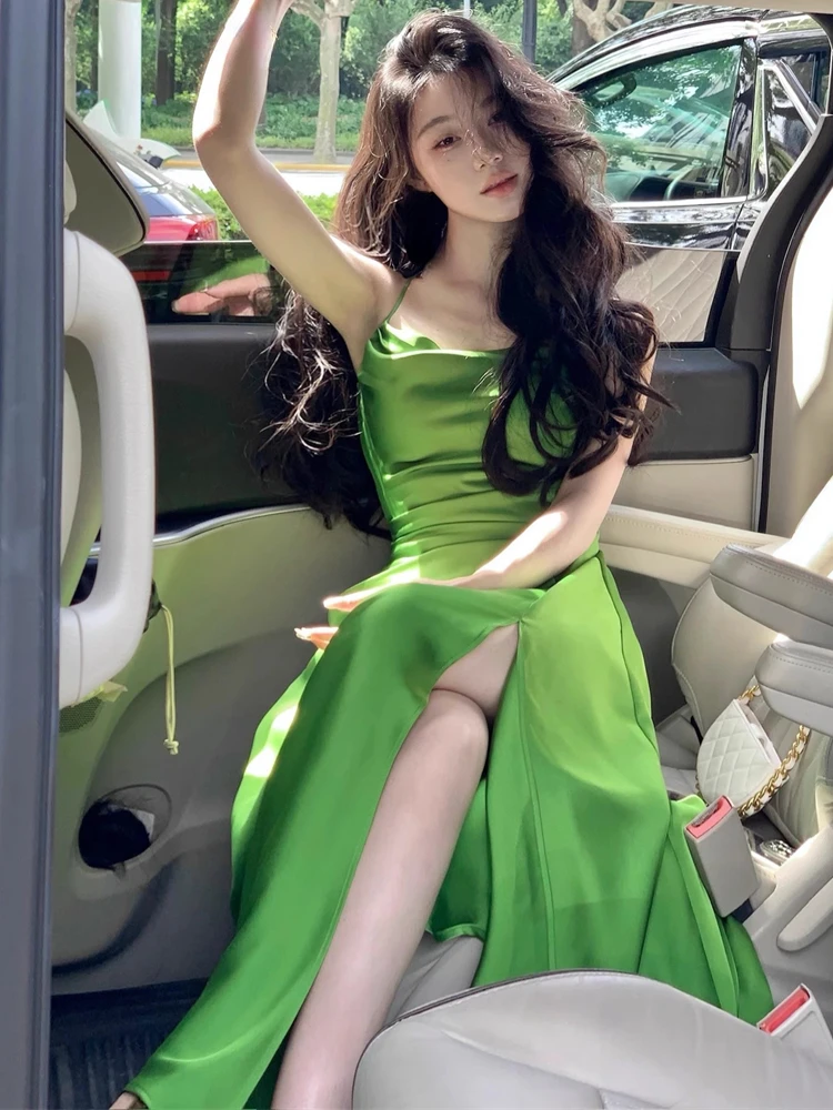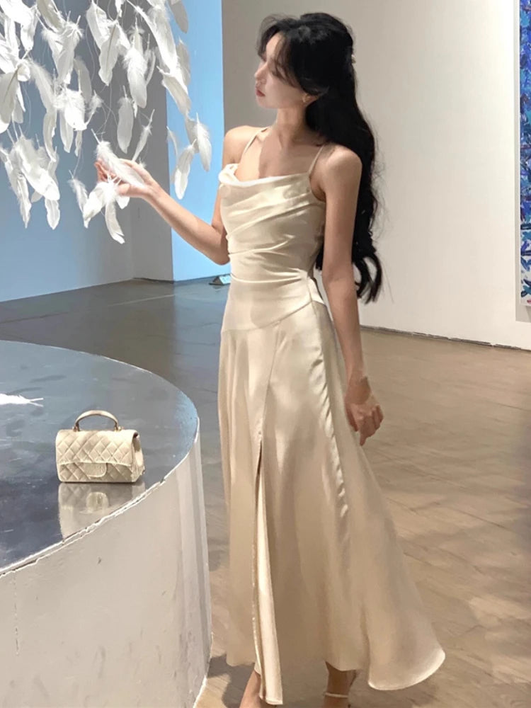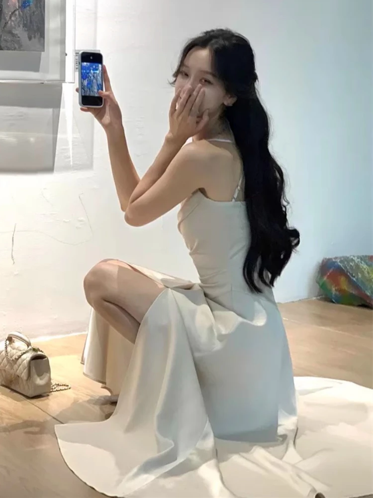 KYLETHOMASW - Evening Midi Dress Women Casual Sleeveless Bodycon Slim Party Strap Dress Elegant Vintage Office Lady Korean Clothing Y2k Chic