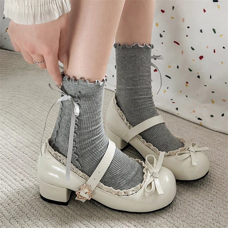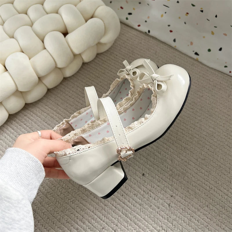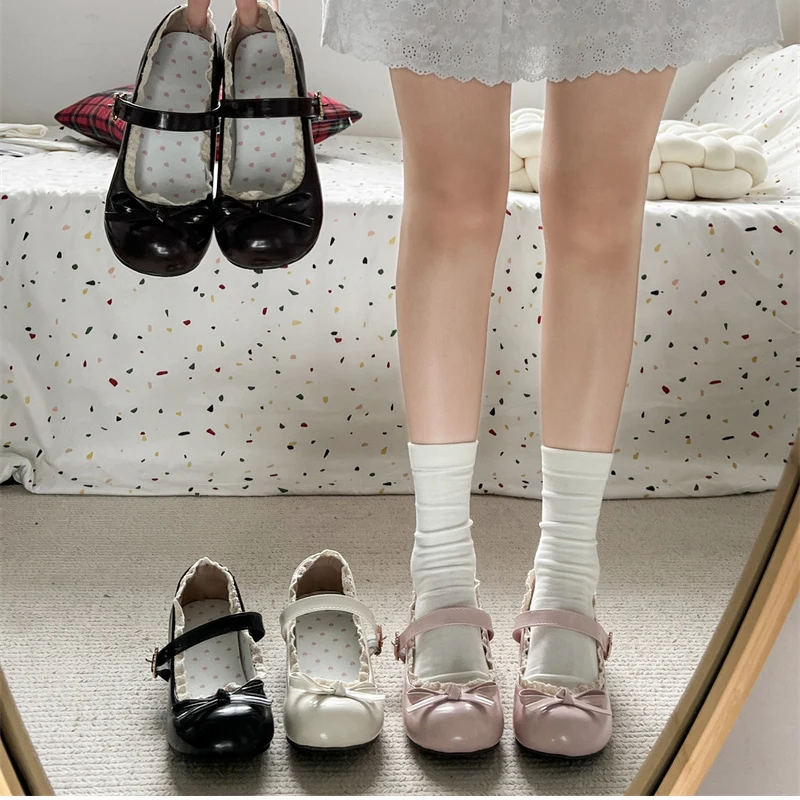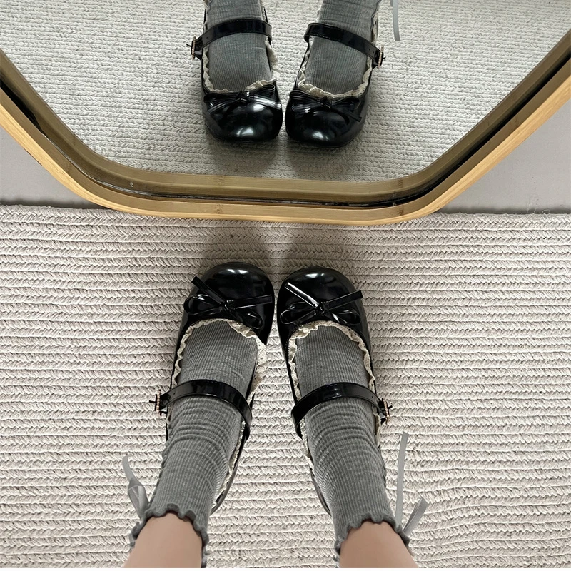 KYLETHOMASW - Fashion JK Women Mary Jane Shoes Ladies Causal Shallow Butterfly-knot Shoes Spring Autumn Female Leather Shoes