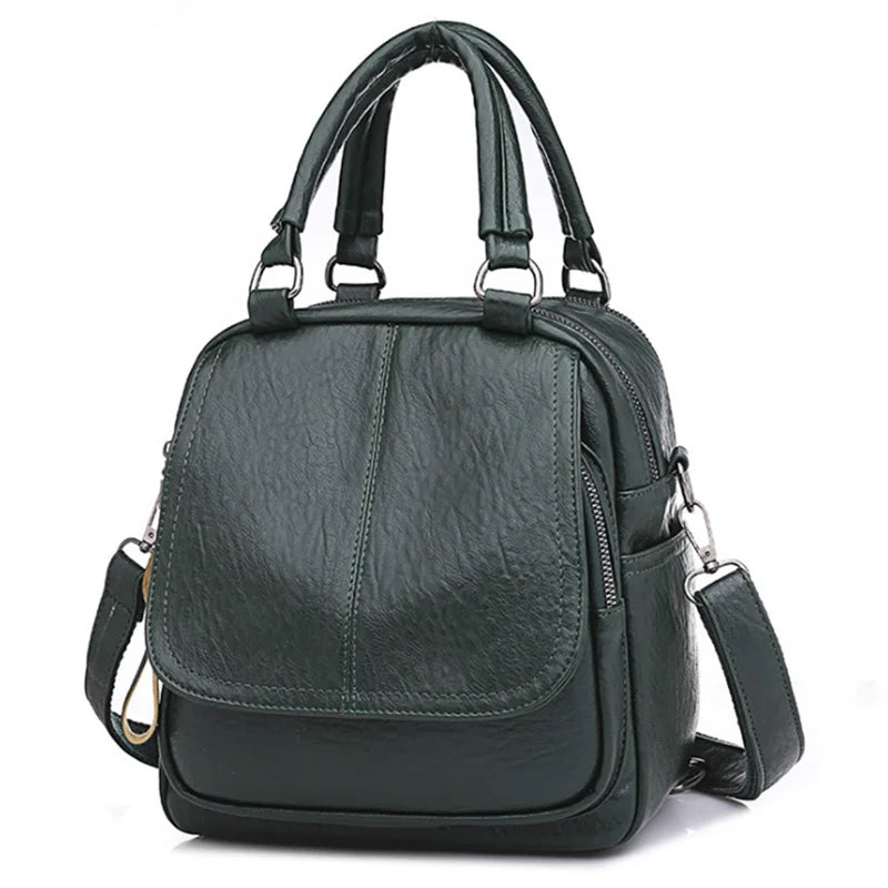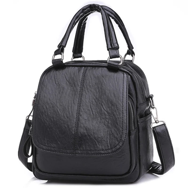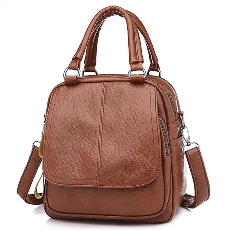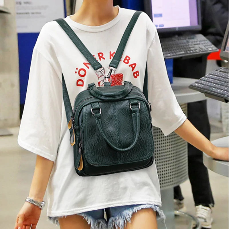 Kylethomasw Fashion Small Backpack Women PU Leather Retro Shoulder Bag Multi-pockets Ladies Bagpack Crossbody School Handbags Bolso Mujer