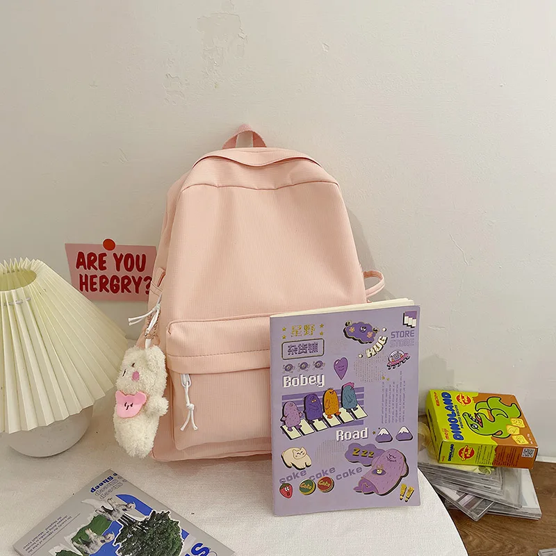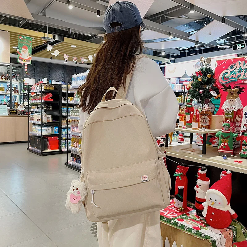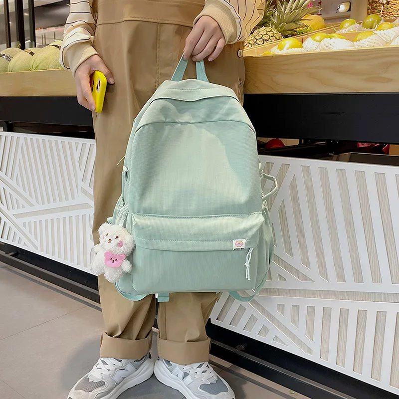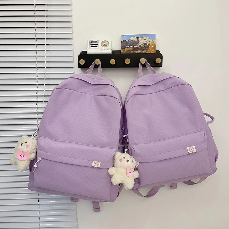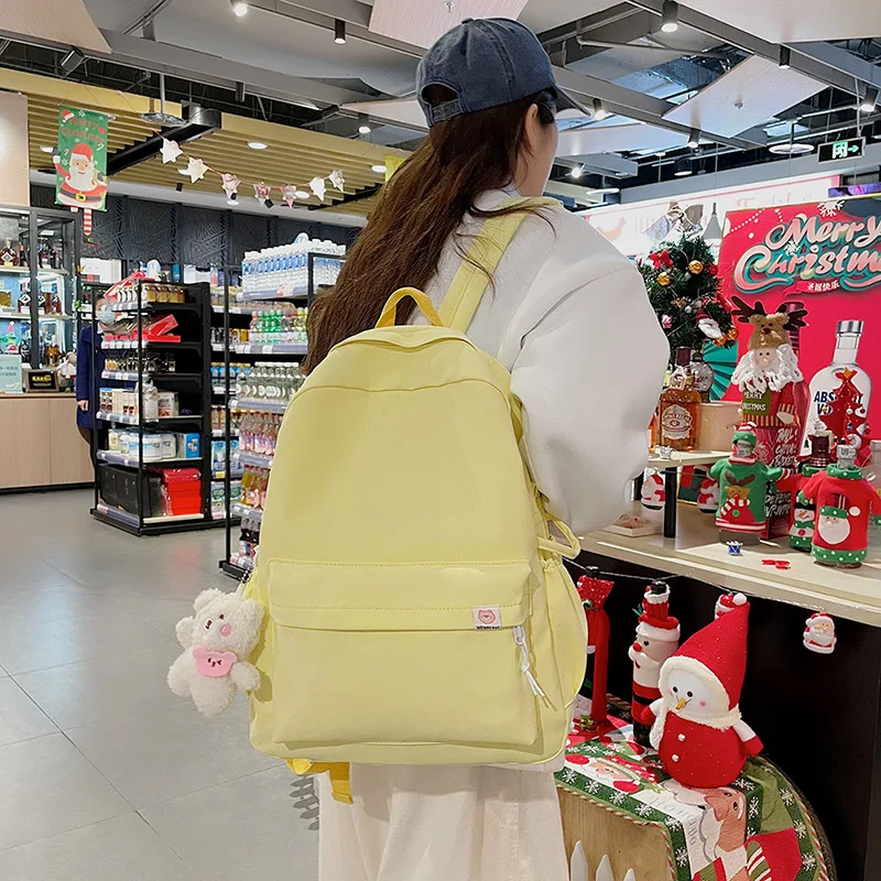 Kylethomasw Female Small Fresh Nylon Backpack Women Solid Color School Backpack for Teenanger Girls Schoolbag Two Sizes Travel Shoulder Bags