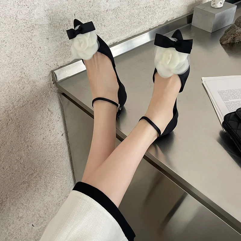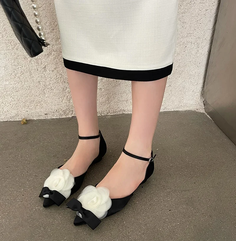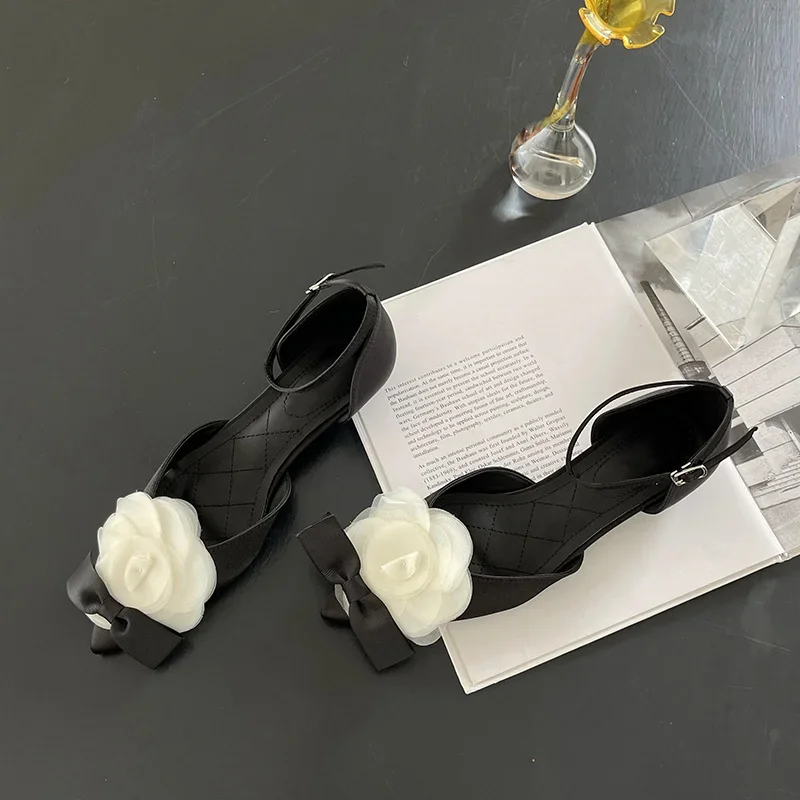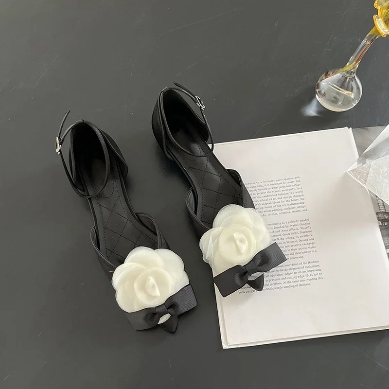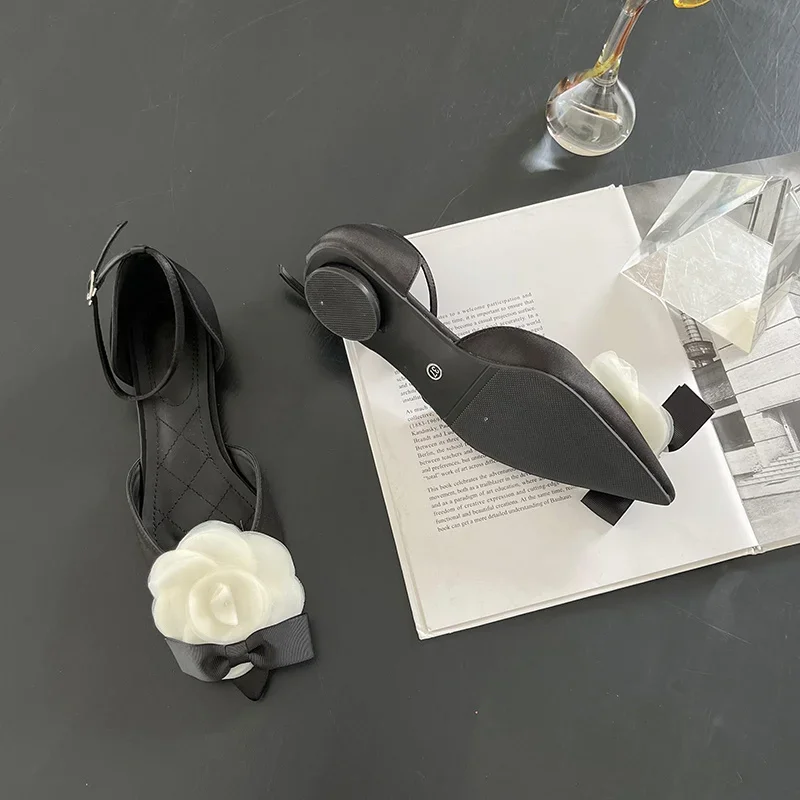 Kylethomasw Flowers Mary Jane Sandals Women Summer Pointed Toe Slingback Flats Elegant Mules Sandals for Girls Sandalias De Mujer