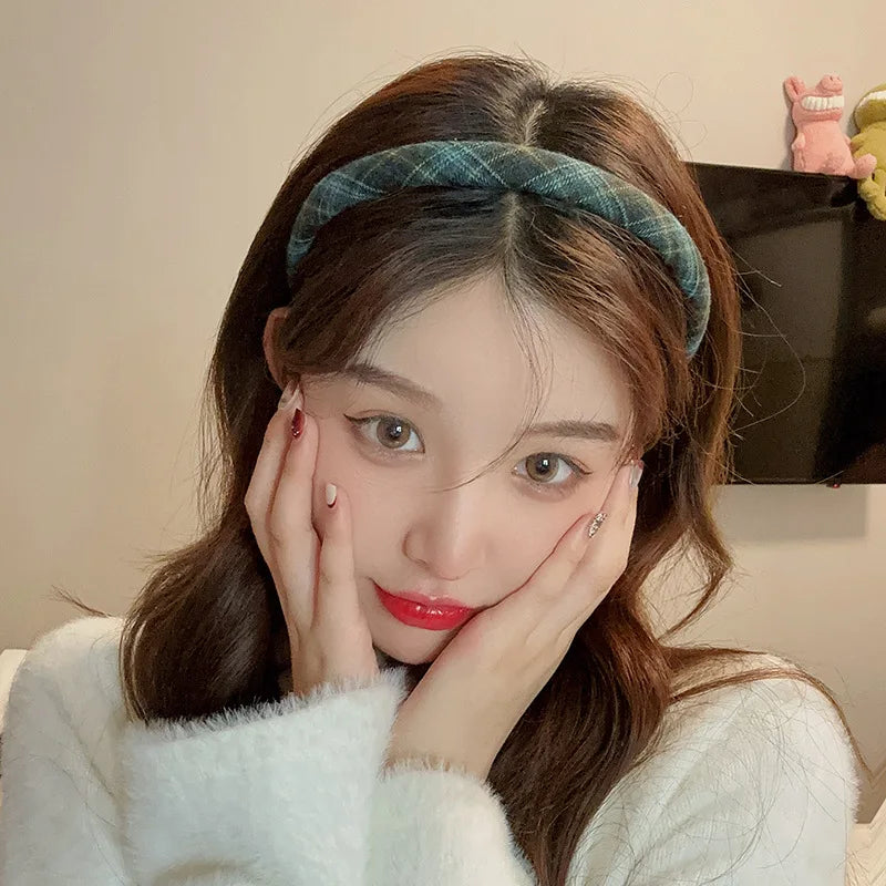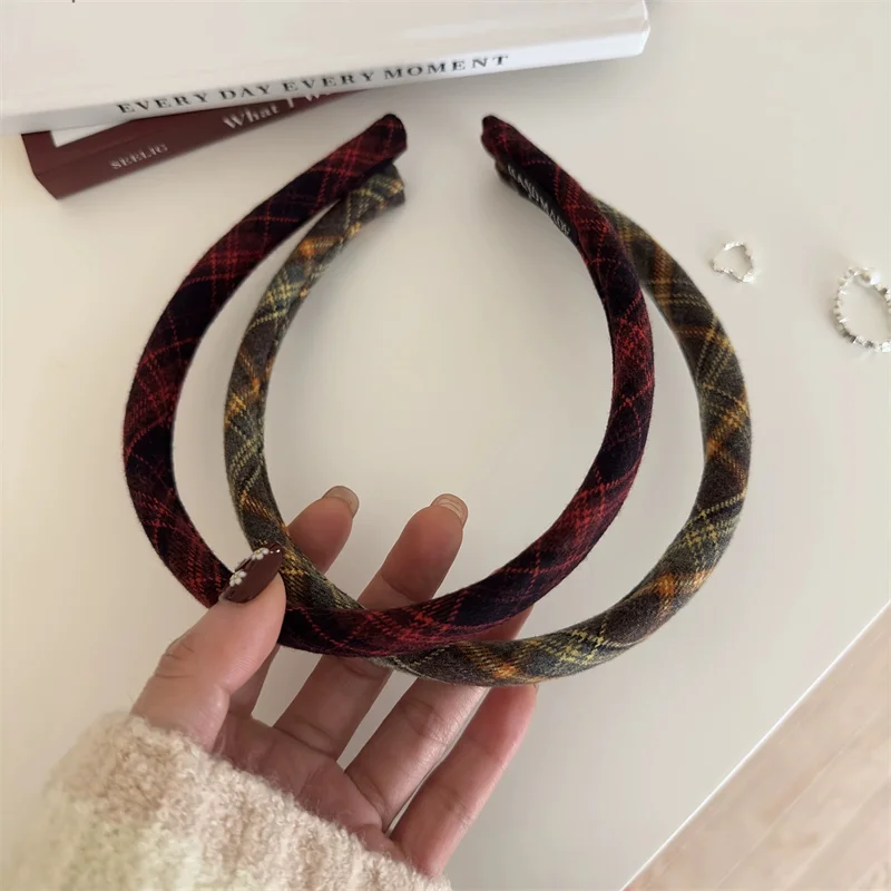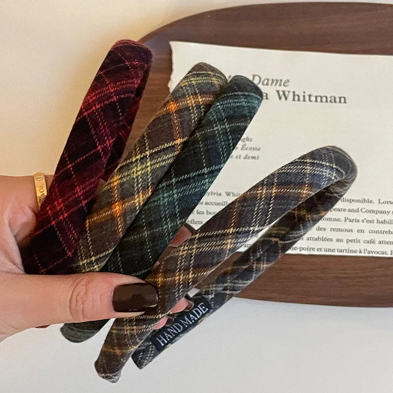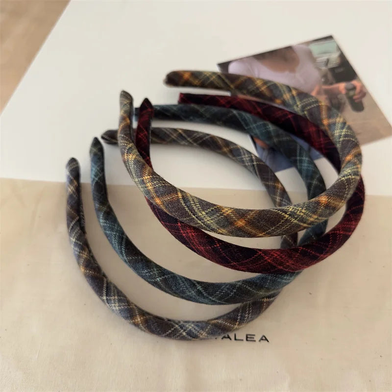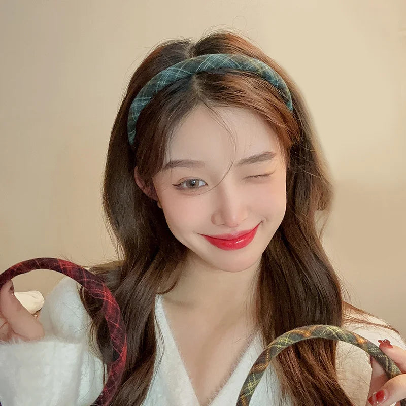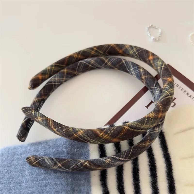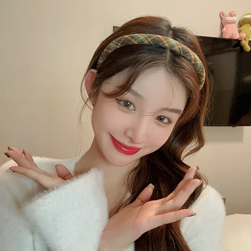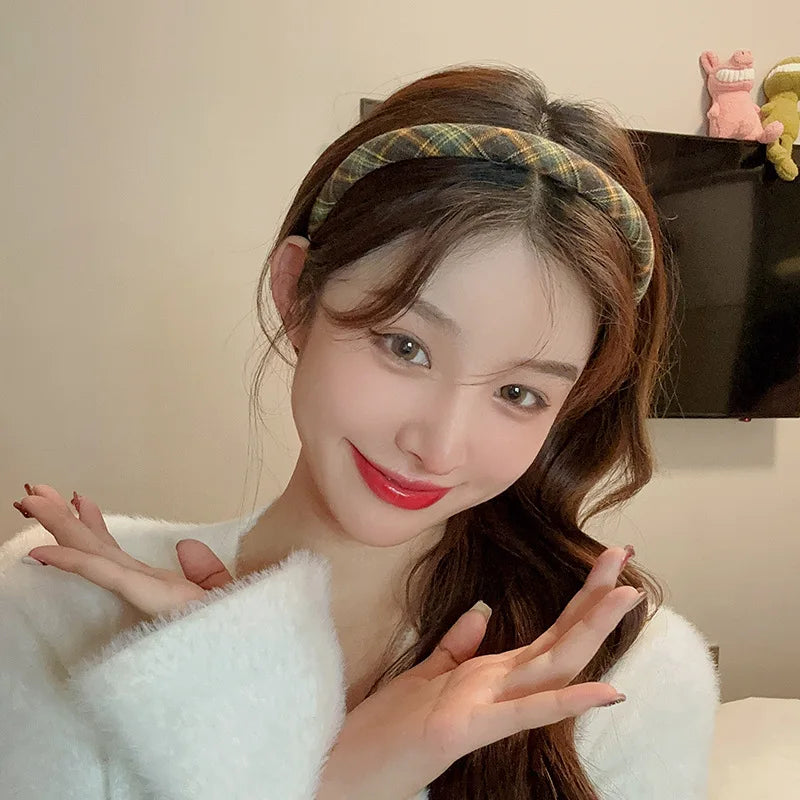 Kylethomasw French Retro Sponge Headband Women College Style Plaid Hair Band Elegant Temperament Hoop Hairband Girls Hair Accessories