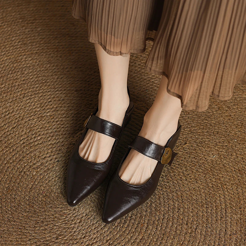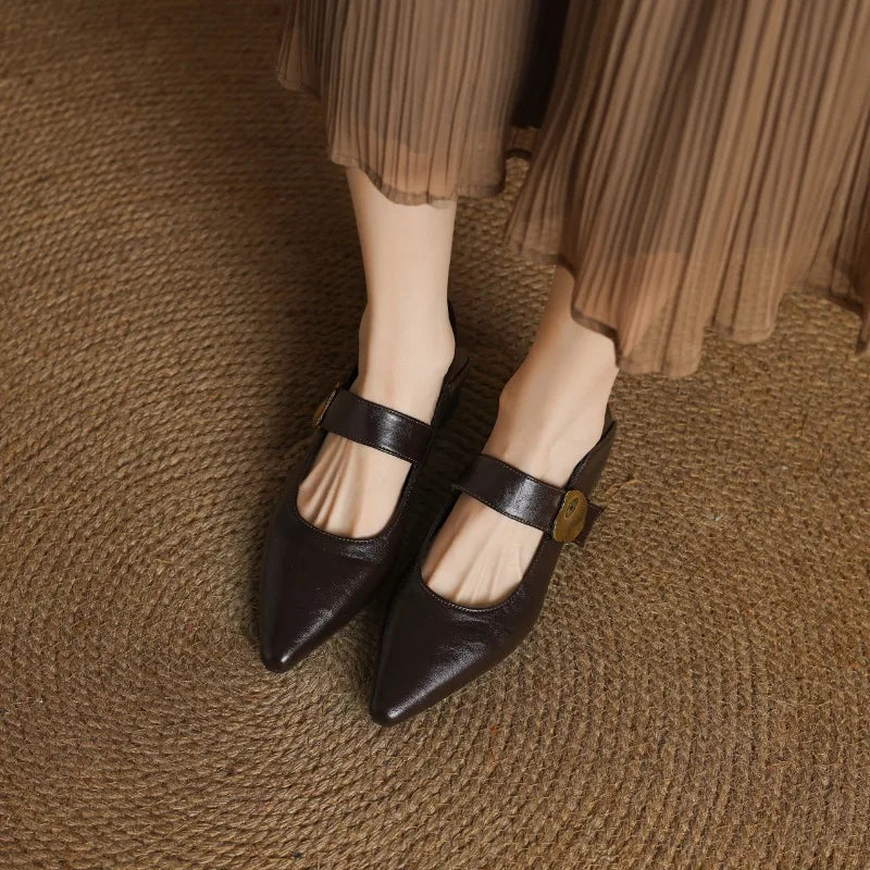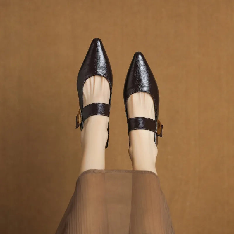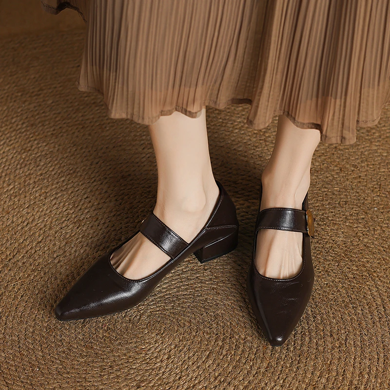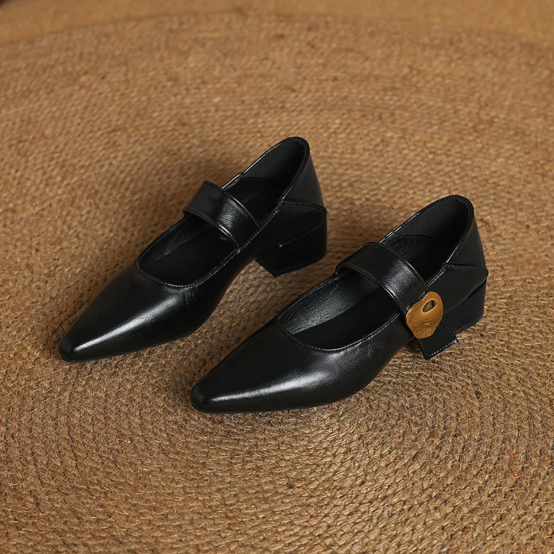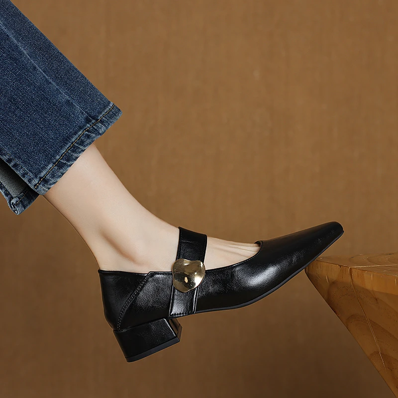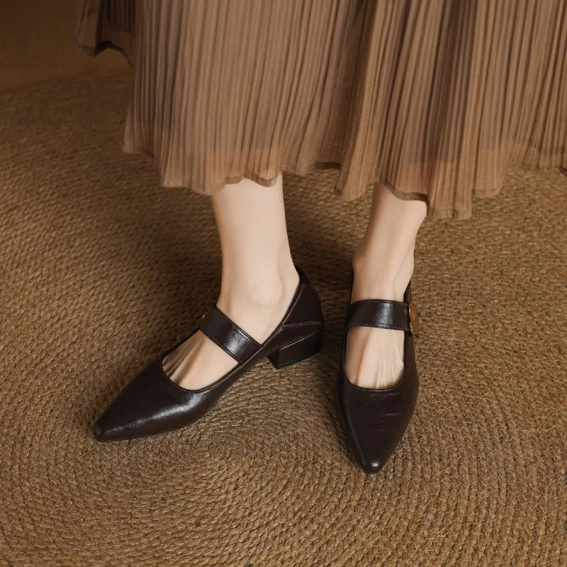 KYLETHOMASW - French thick-heeled magic sticker shallow shoes 2025 spring new pointed and fashionable versatile non-slip small leather shoes