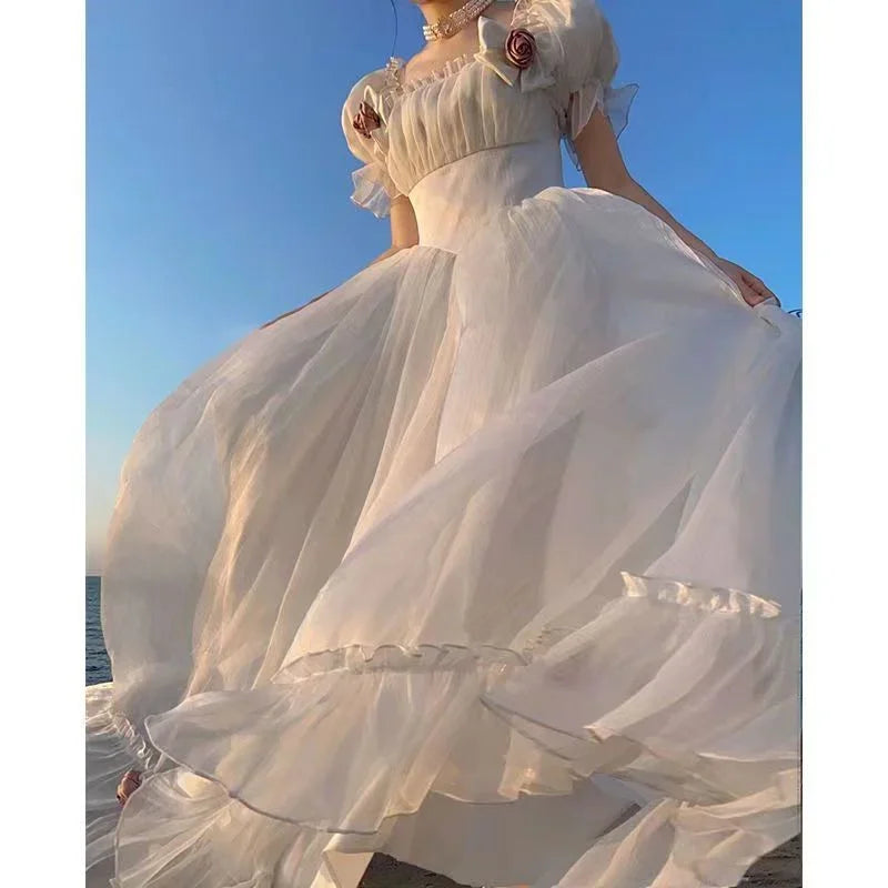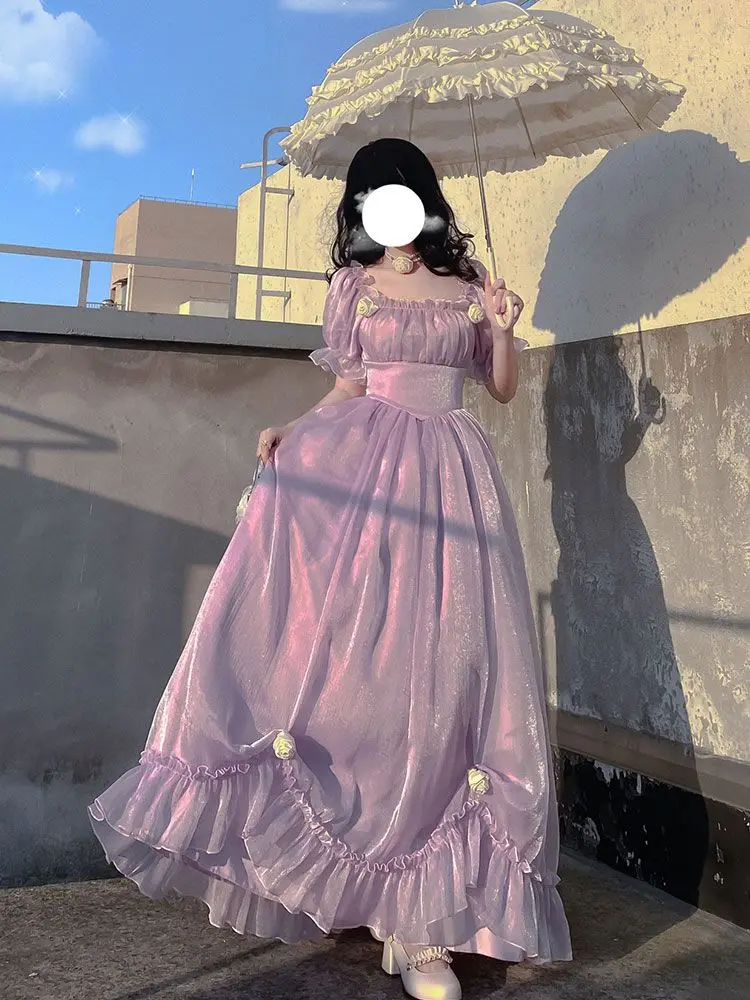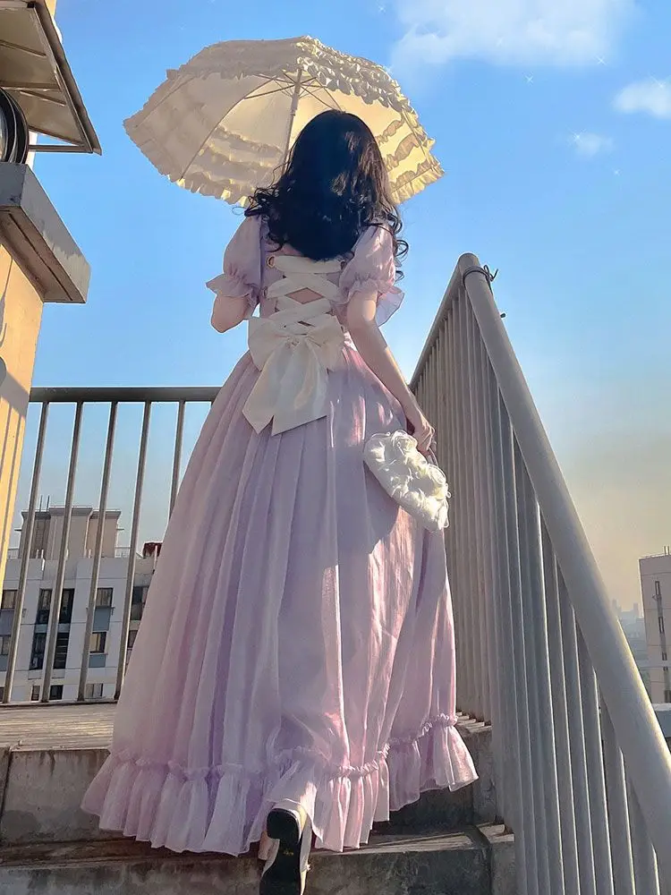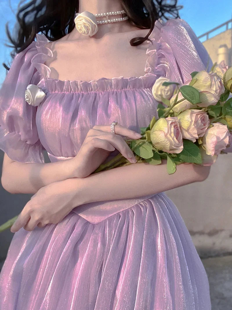 KYLETHOMASW - French Vintage Purple Dress Summer Puff Sleeve Backless Bow A-Line Midi Dress Fashion Party Evening Palace Princess Dress