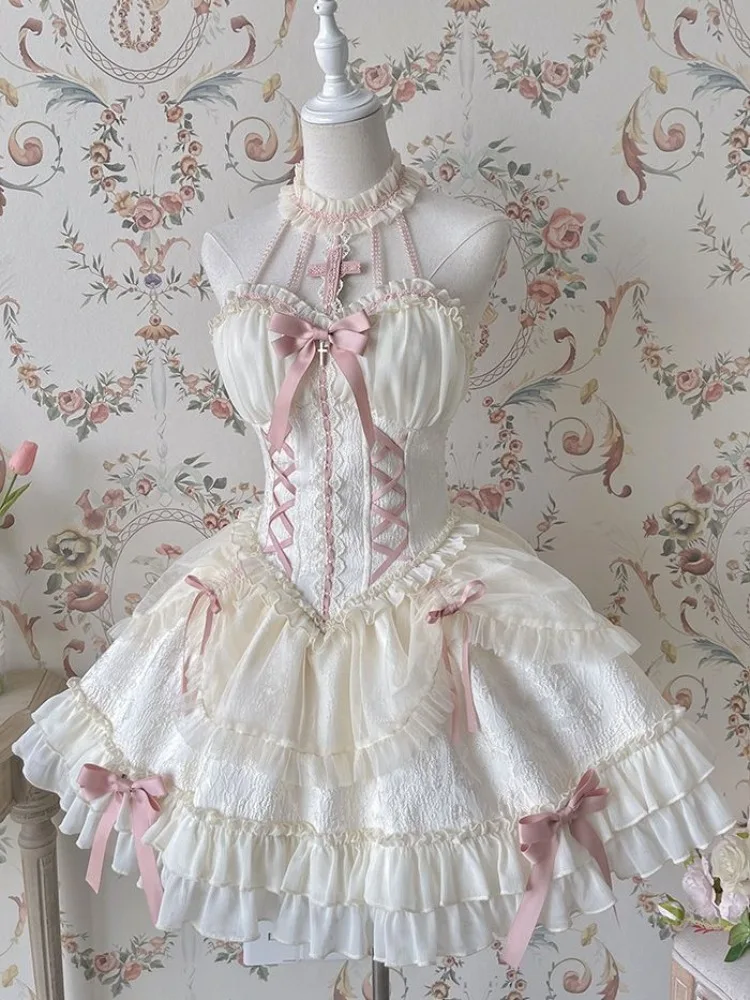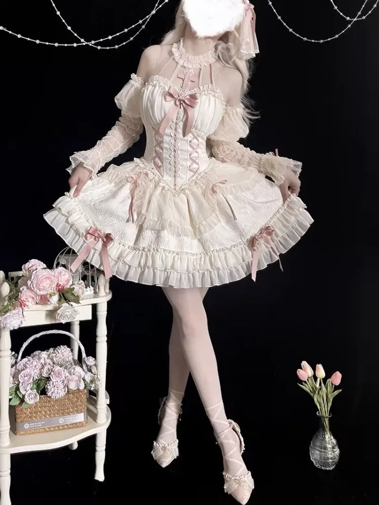 KYLETHOMASW - Harajuku Lolita Gothic Halter Dresses Sexy Off Shoulder Long Sleeve Vestidos Mujer 2024 New Slim Waist Bow Dress for Women