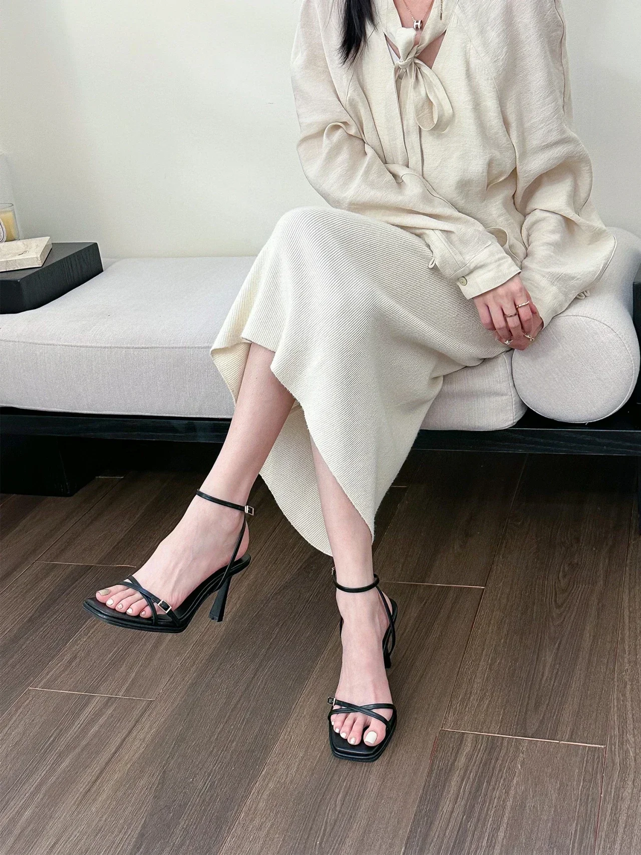 KYLETHOMASW - High-quality beige ankle strap designer sandals 2025 summer fashion open-toe stiletto heels elegant wedding shoes women's shoes